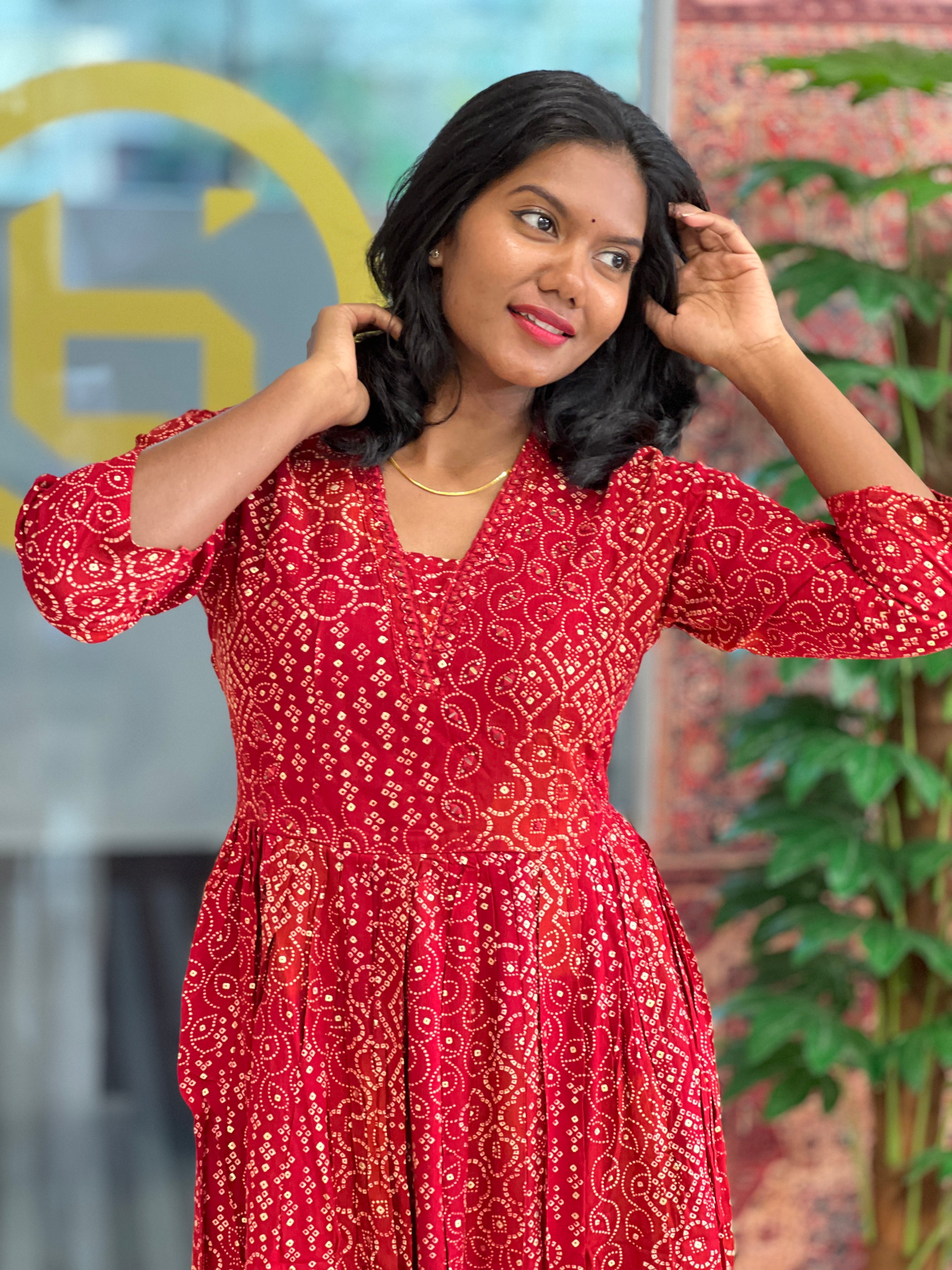 - Style: Bandhani Printed, Padi Detailing, Mirror Detailing