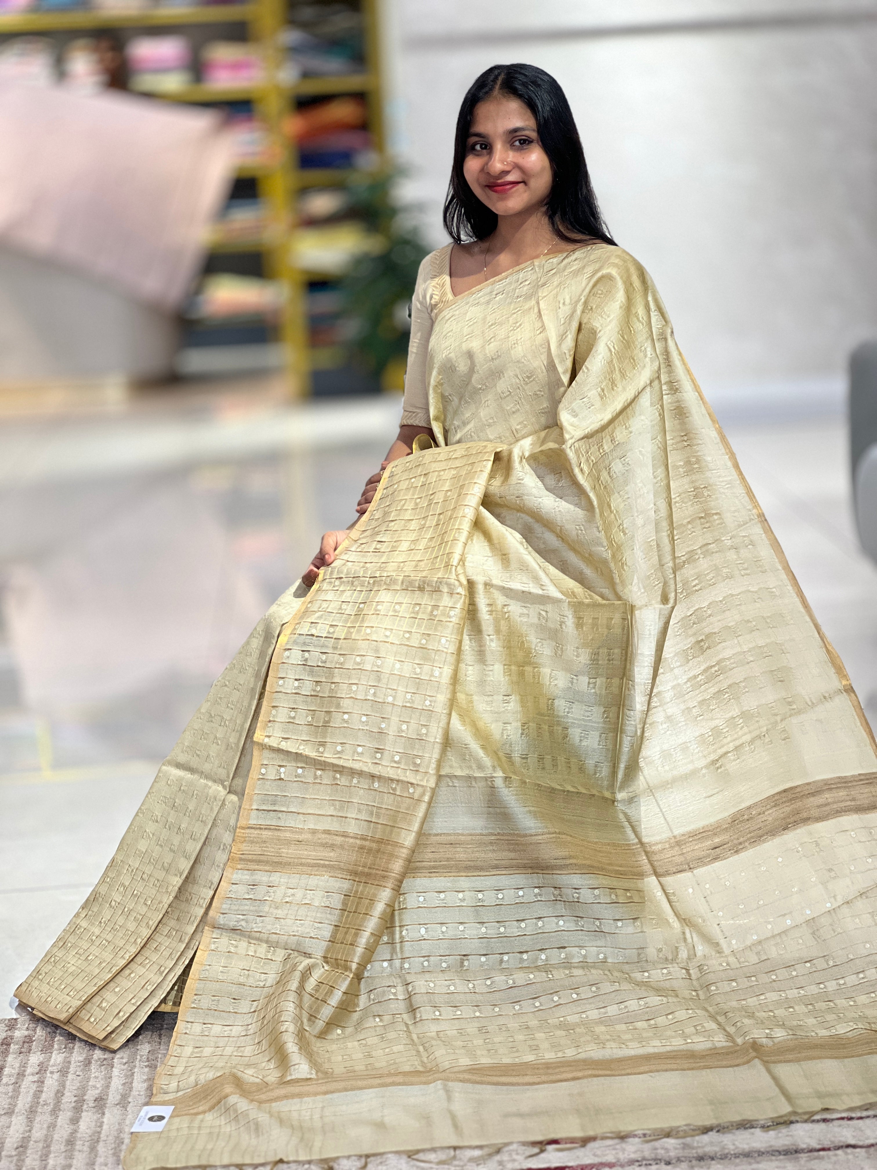• Basket Weaved With Sequence Detailed Soft Tussar Saree | ACT1387