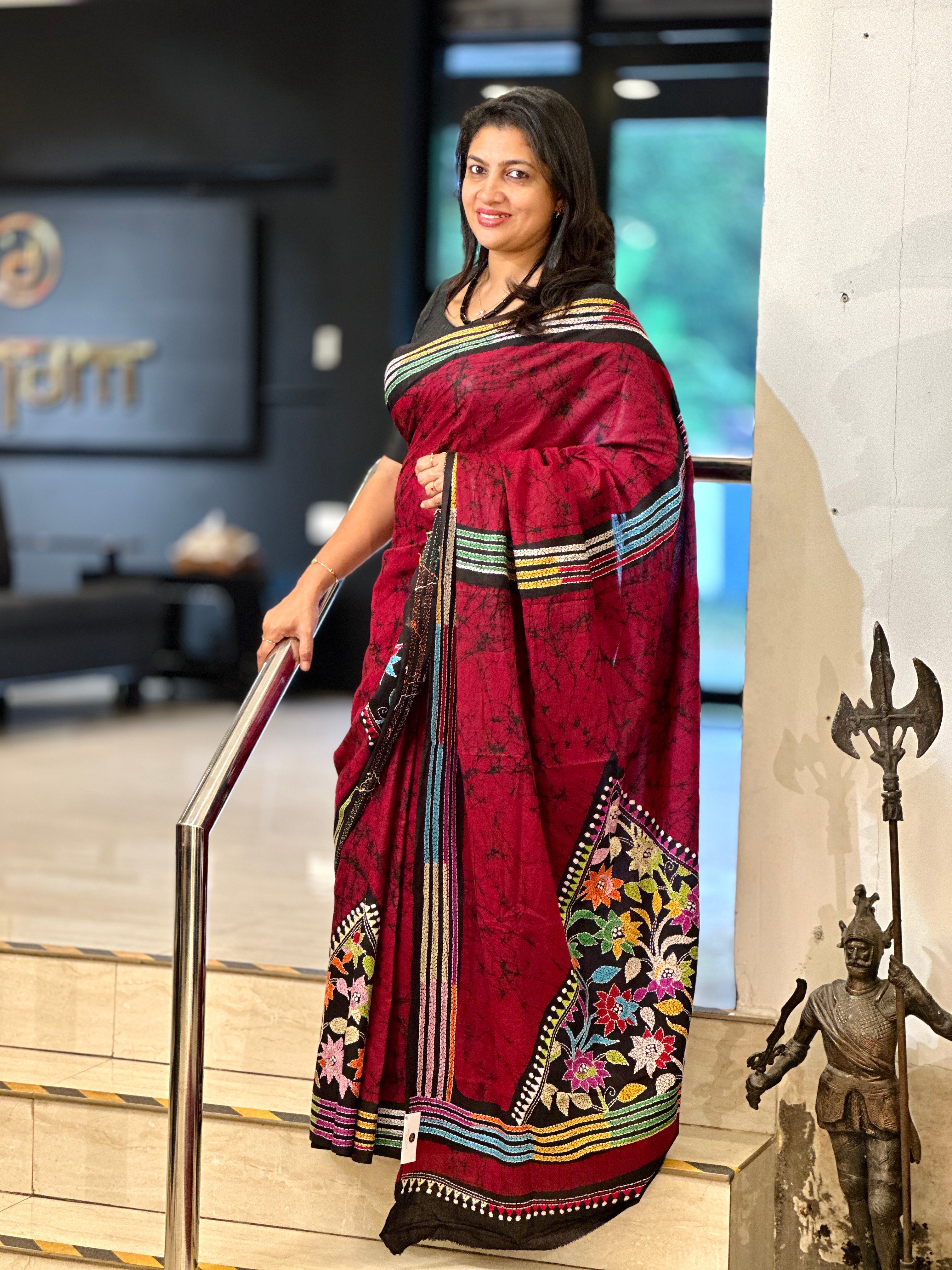 - Style: Tie & Dye Patterned Batik Print Detailing, Kantha Embroidery Detailing, Temple Border Pattern