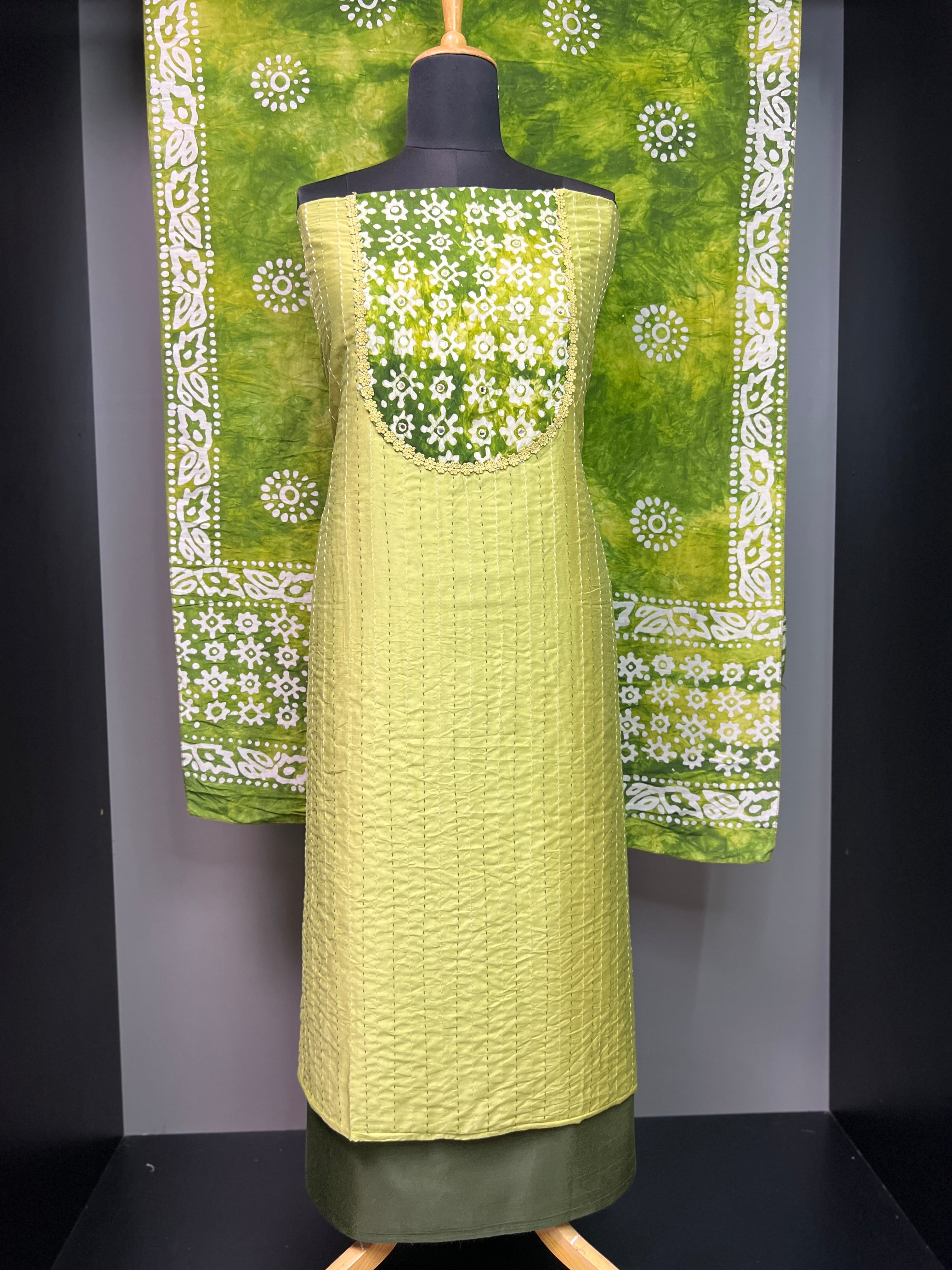 - Style: Batik Printed Yoke Pattern, Mirror and Lace Detailing, Kantha Weaving Patterned Body