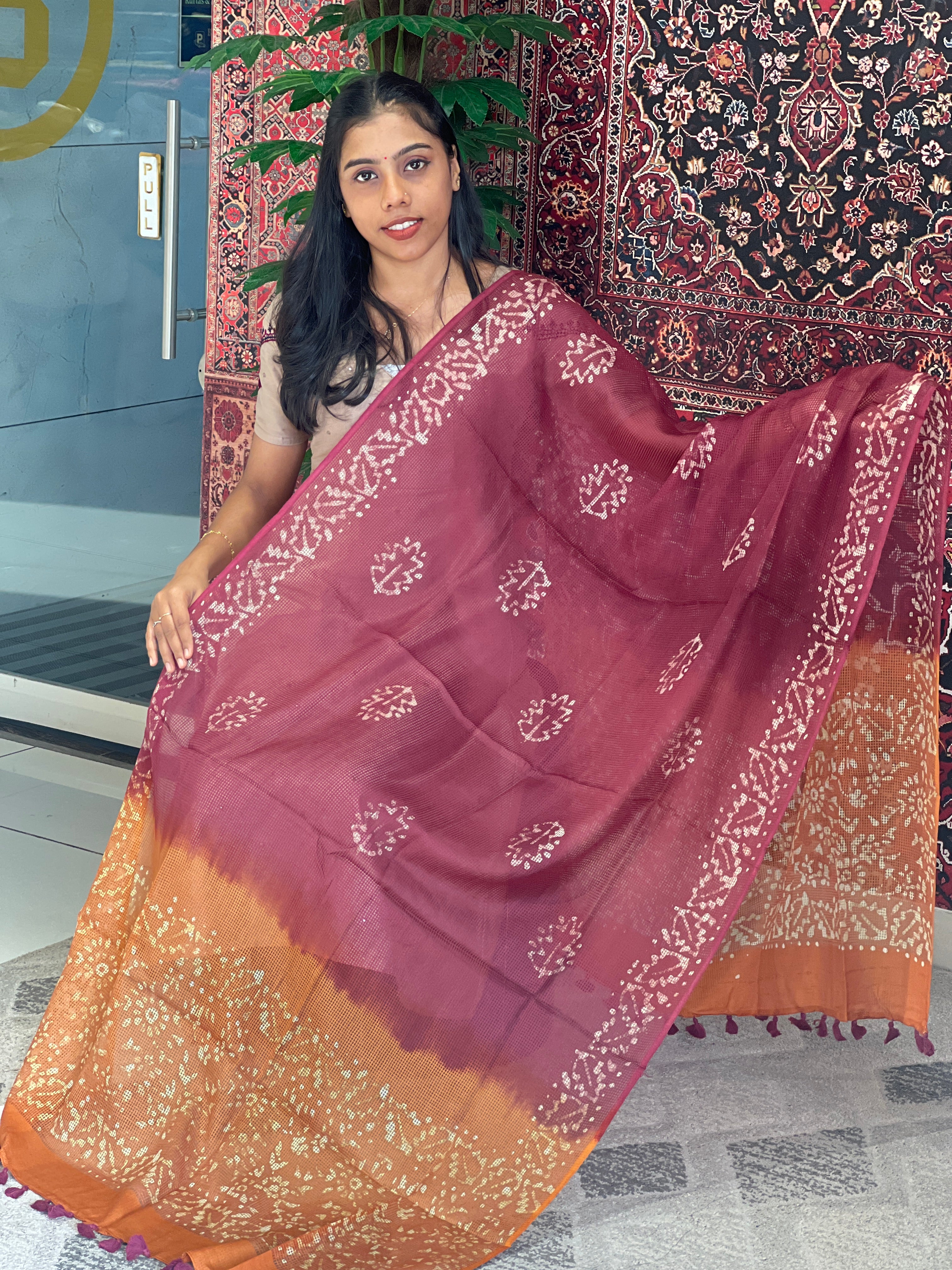 - Style: Batik Printed, Check Weaving Pattern, Tassels Attached, Leaf Pattern