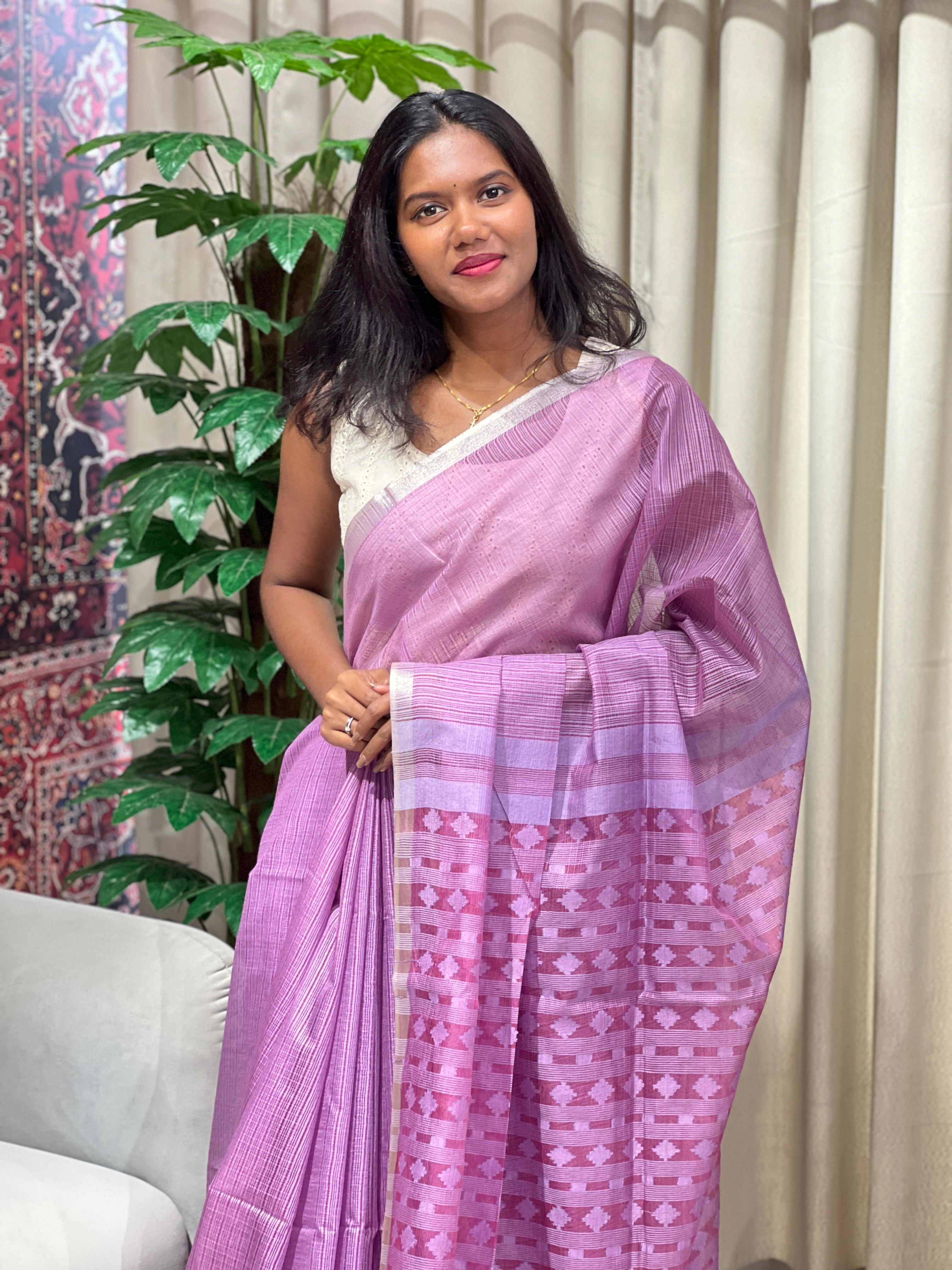 - Style: Bhagalpuri Woven, Jamdani Weaved Pallu, Zari Border Detailing, Tassels Attached