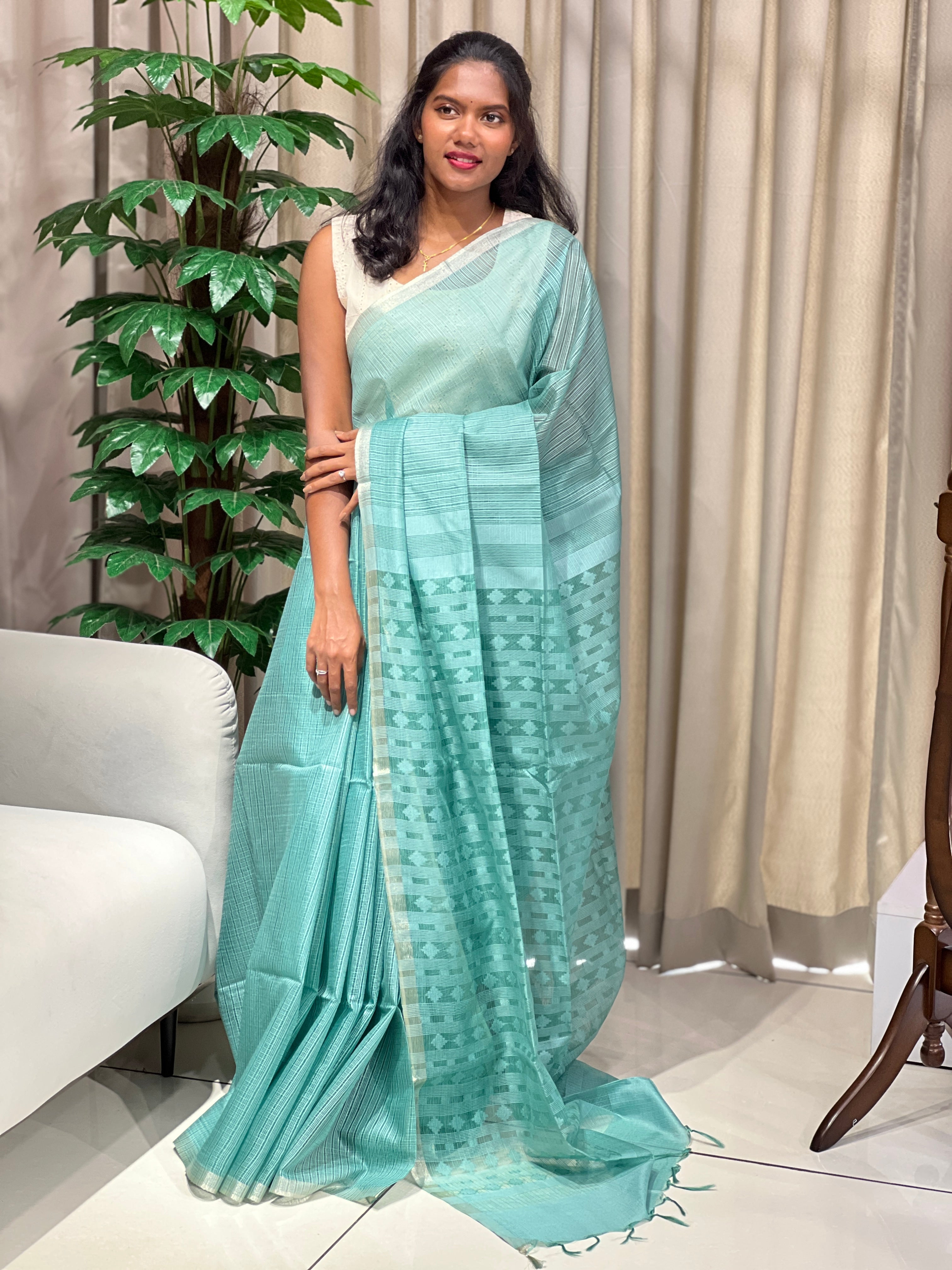 • Style: Bhagalpuri Woven, Jamdani Weaved Pallu, Zari Weaved Border