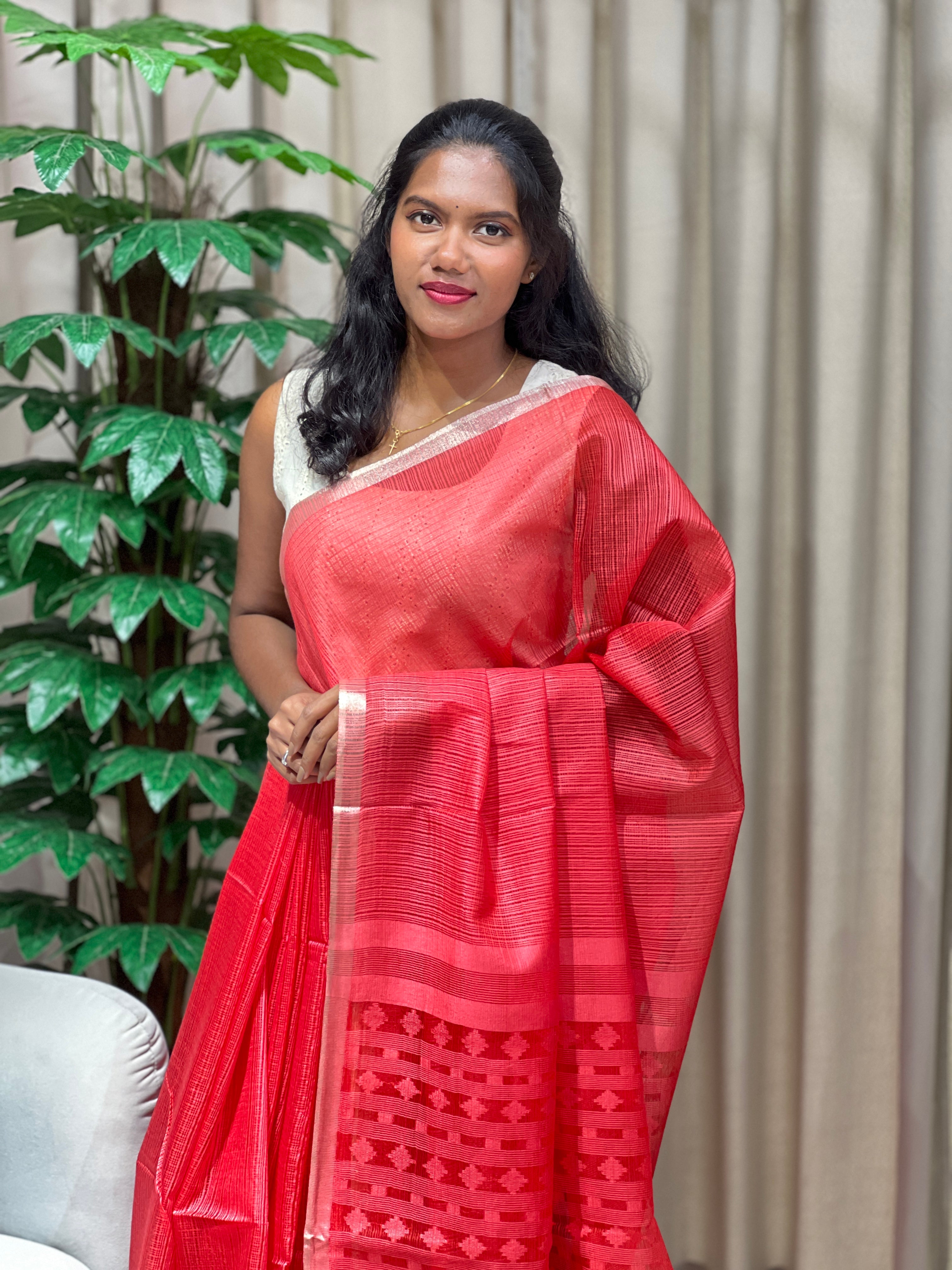 - Style: Bhagalpuri Woven, Jamdani Weaved Pallu, Zari Weaved Border