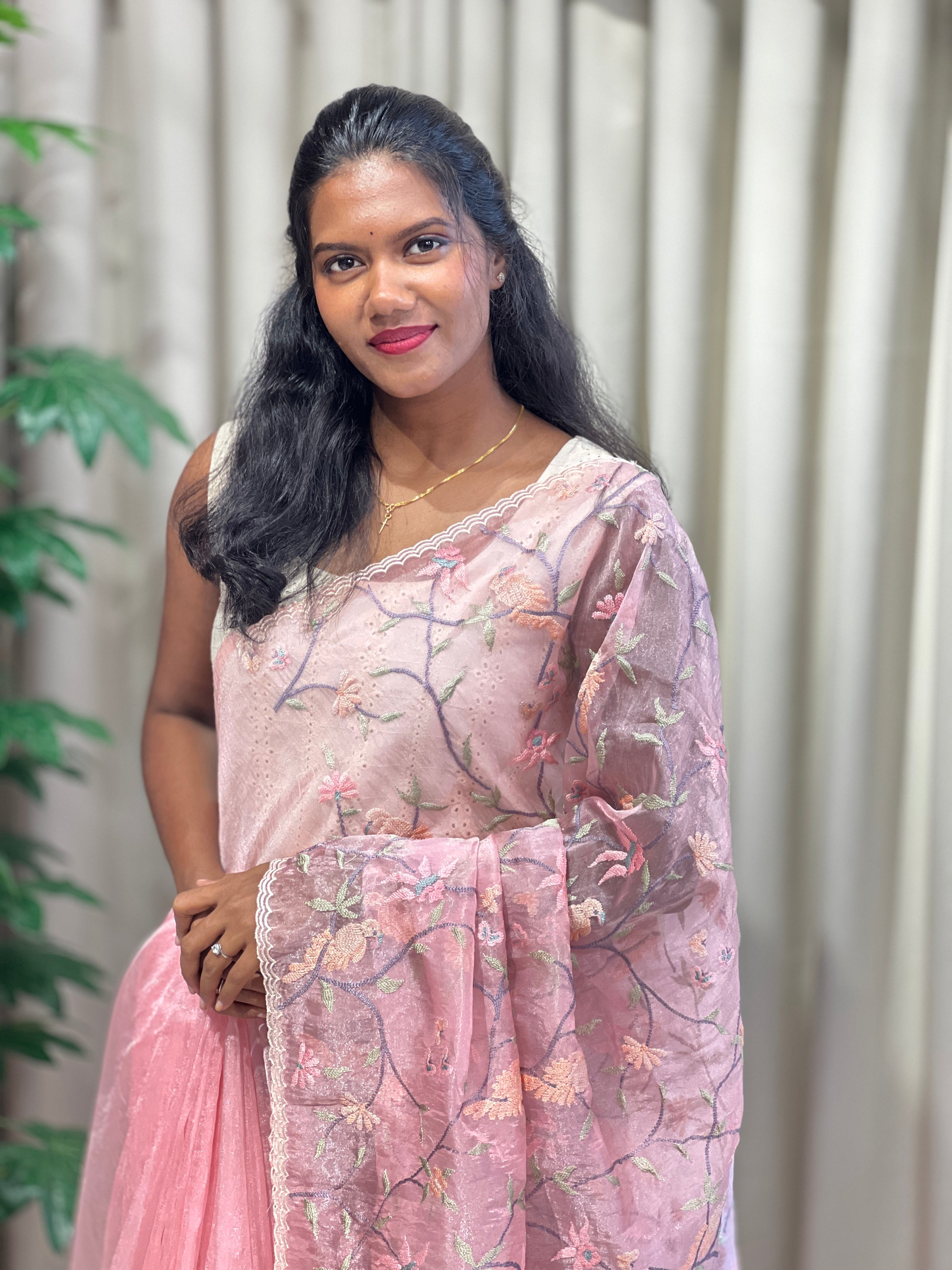 • Birds And Floral Patterned Organza Saree | BLD2107