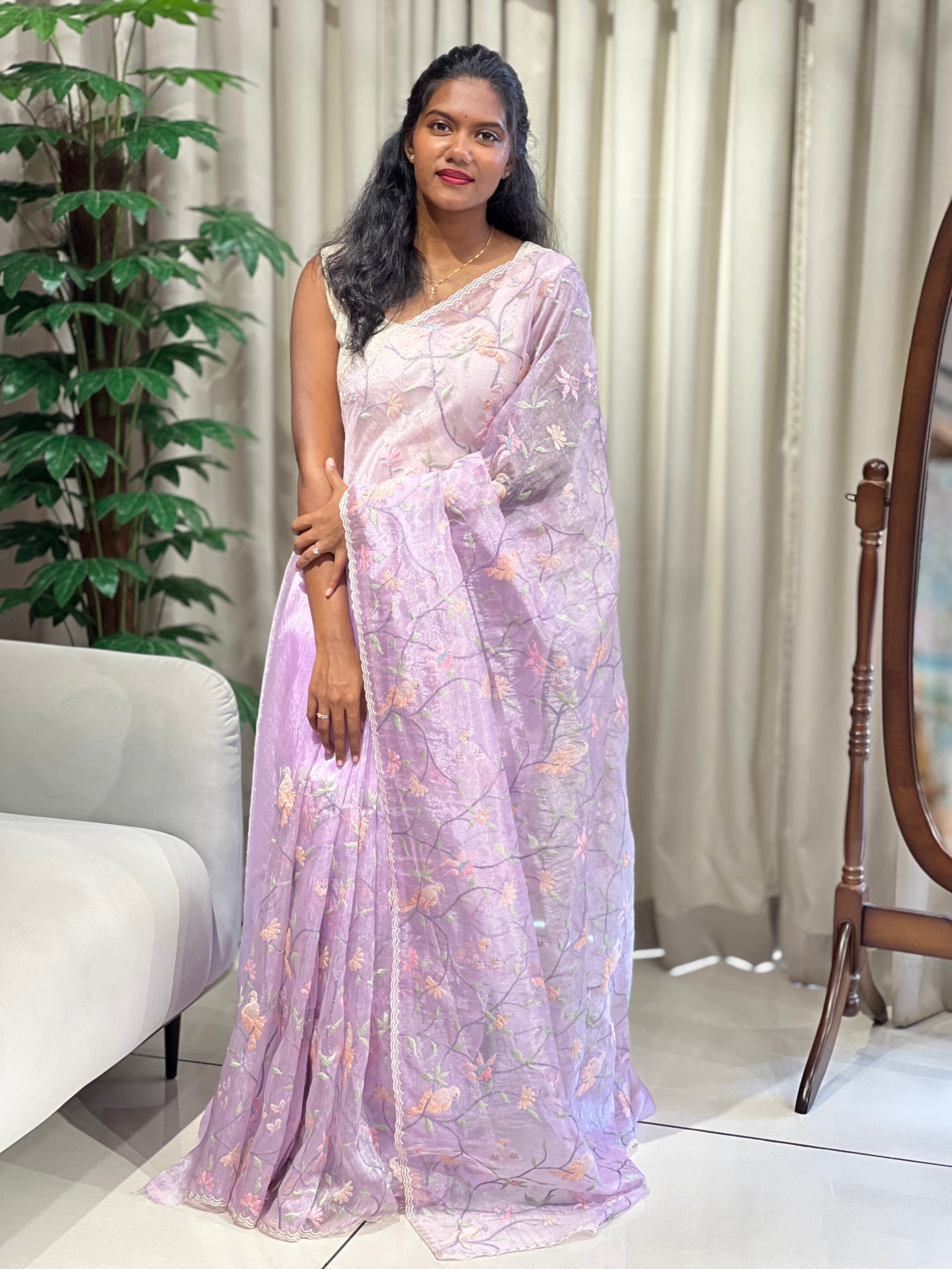 Birds And Floral Patterned Organza Saree | BLD2110 Birds And Floral Patterned Organza Saree | BLD2110 Birds And Floral Patterned Organza Saree | BLD2110