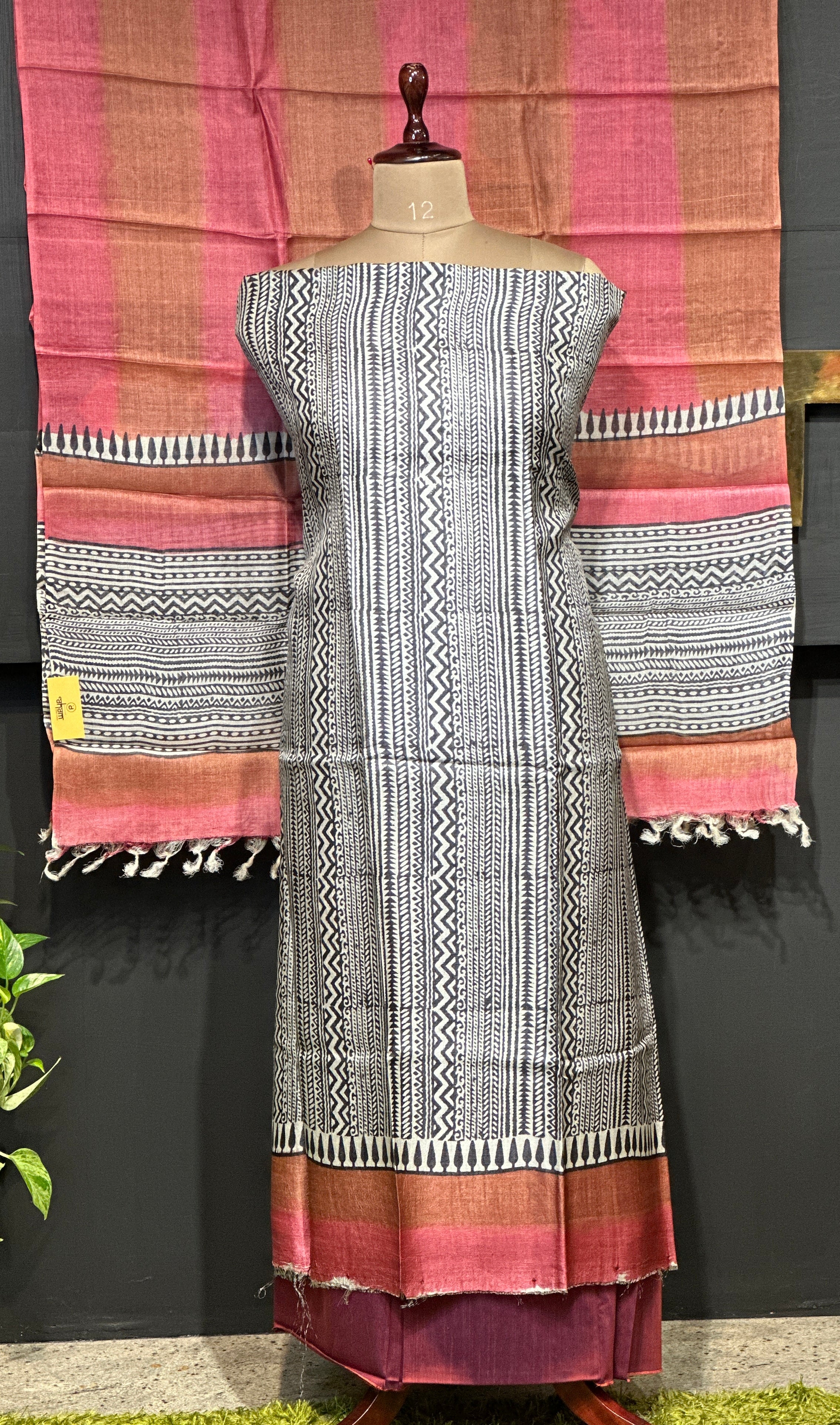 • Block Print Detailed Pure Tussar Salwar Set | MNH519