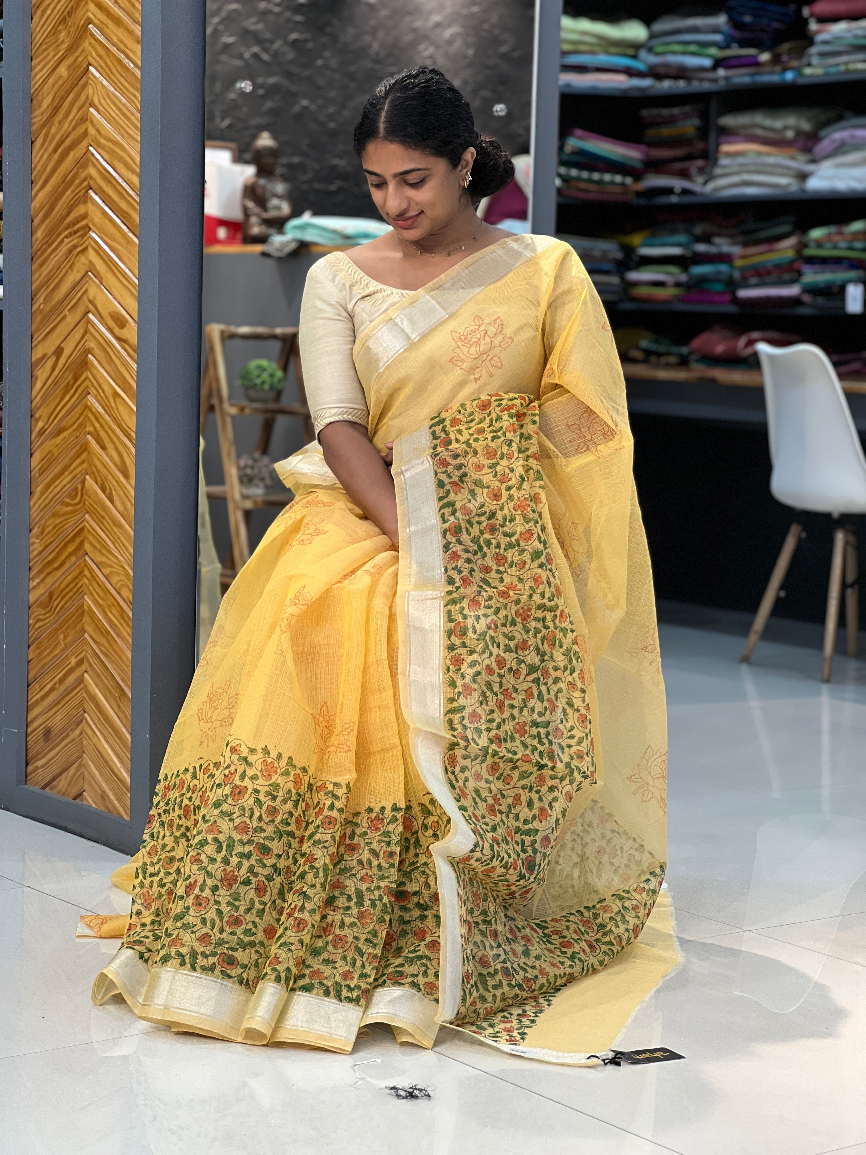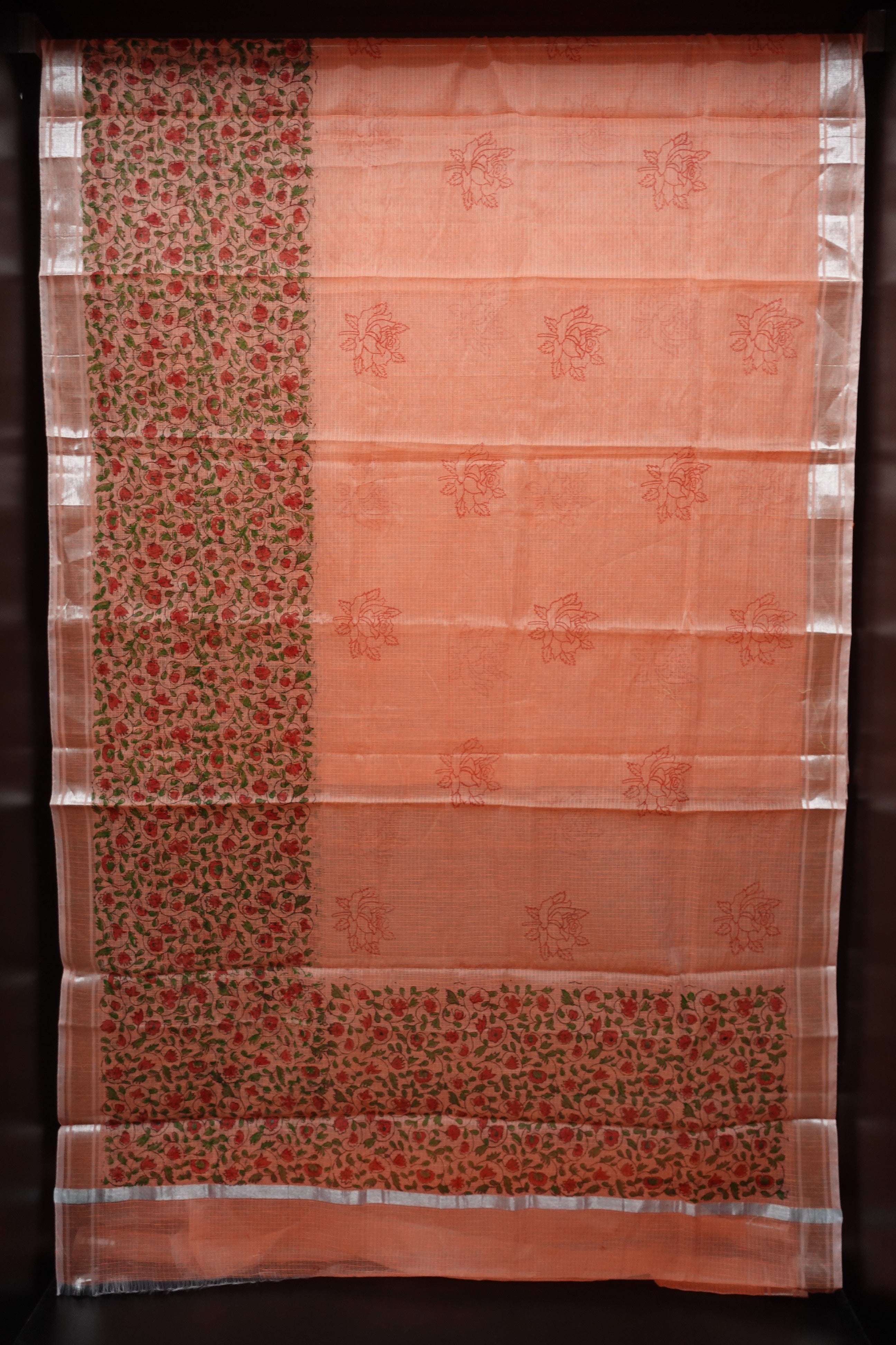 - Style: Hand Block Printed, Zari Border