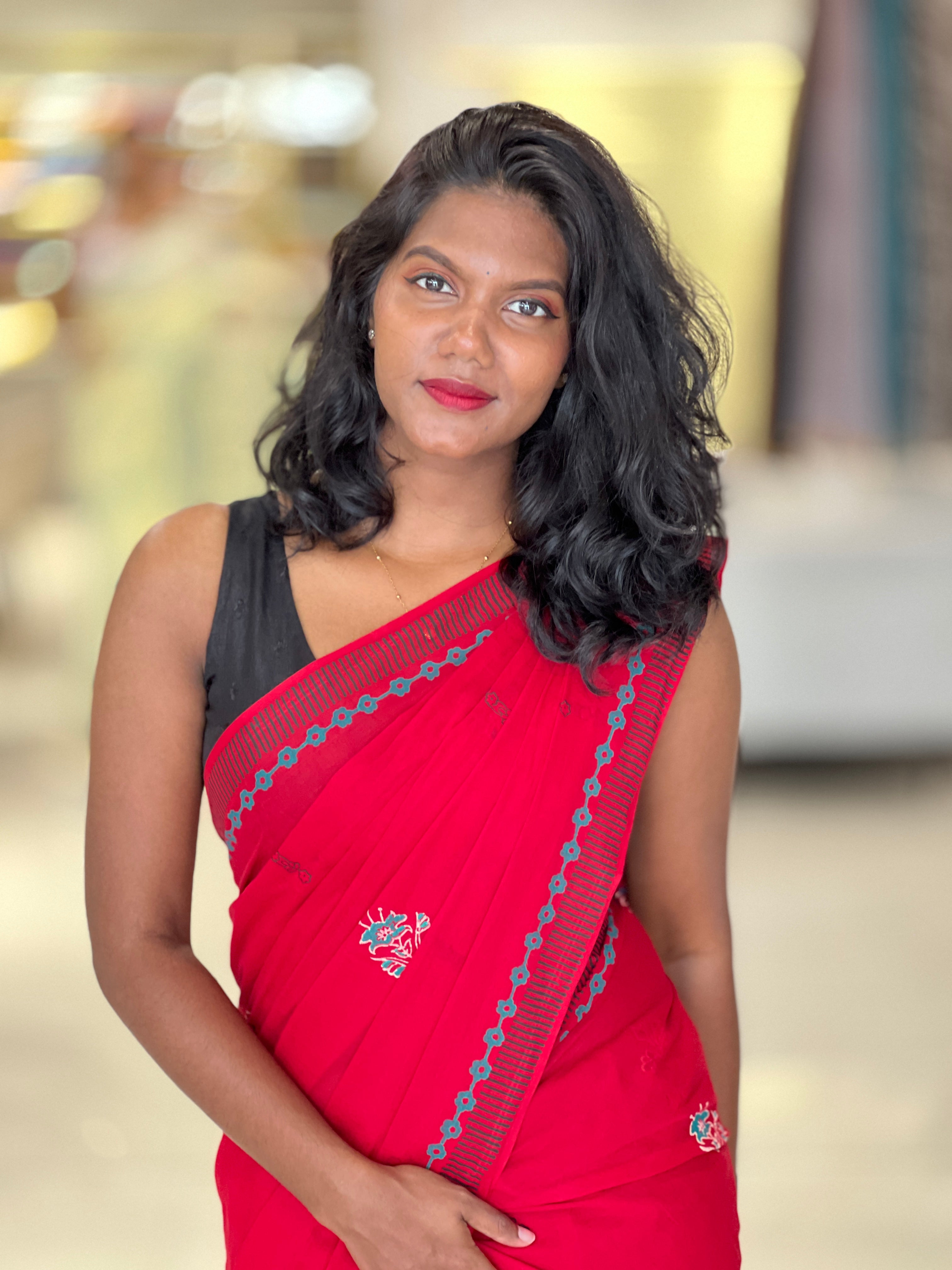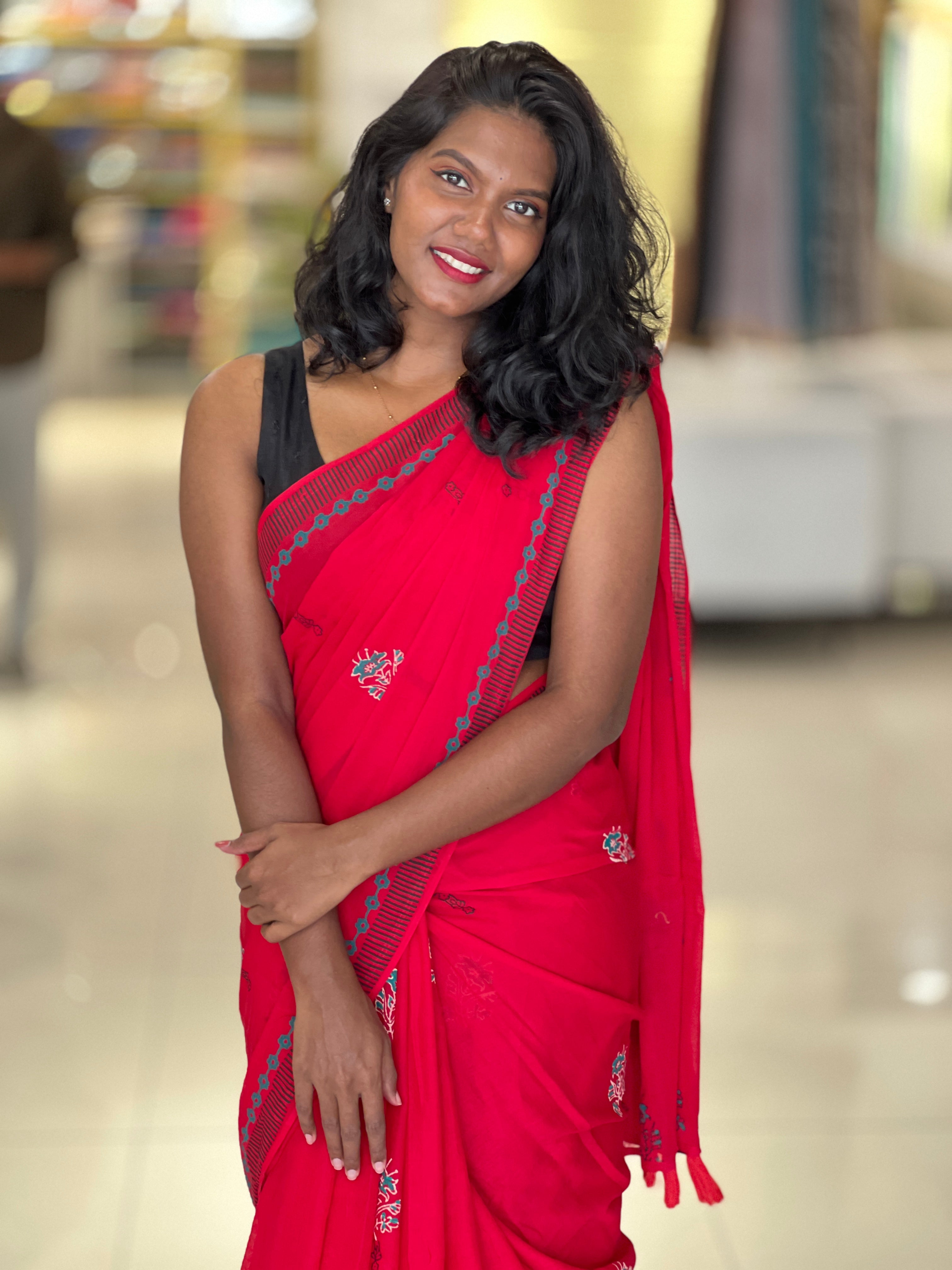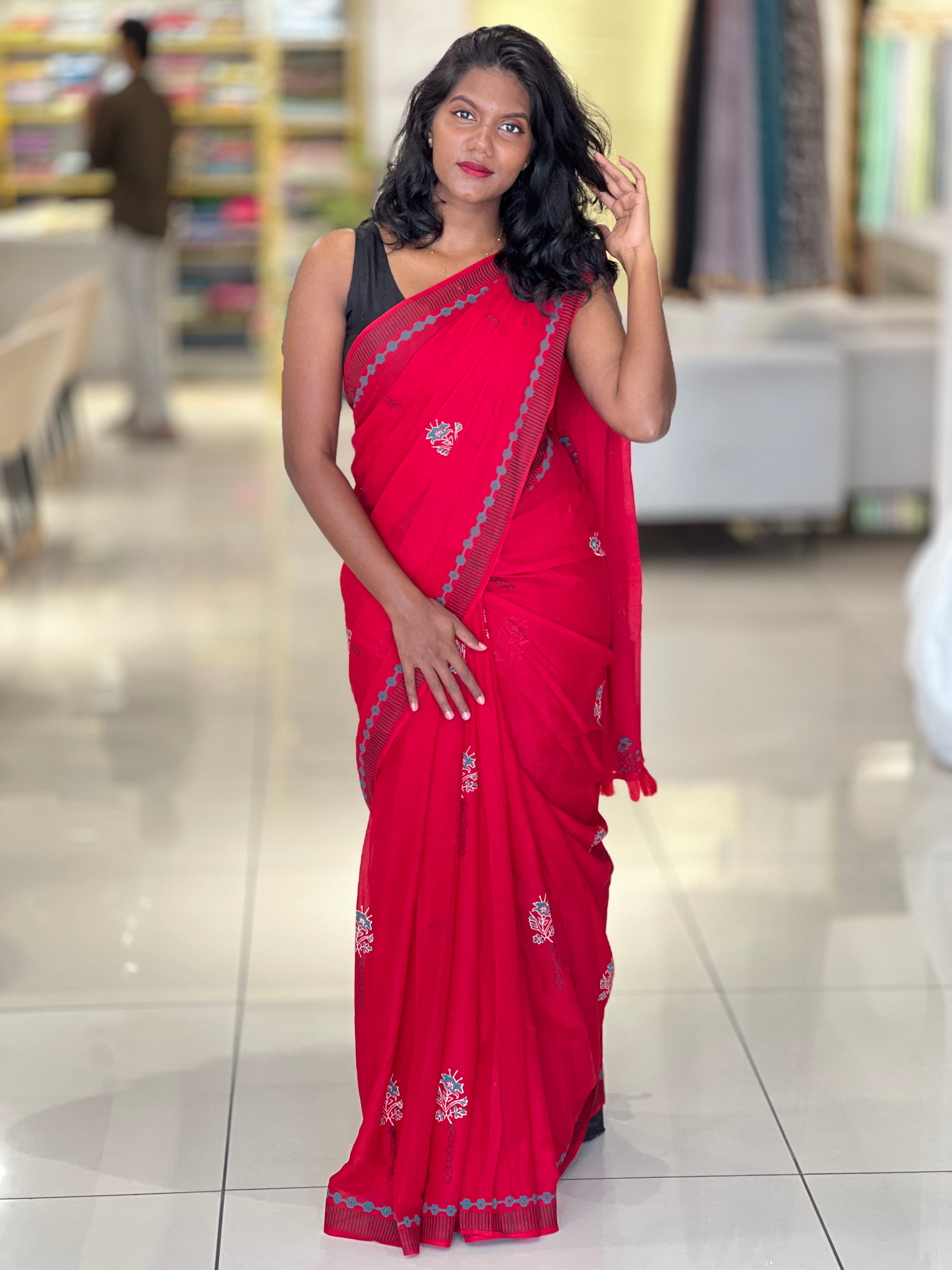 - Style: Block Printed, Scattered Floral Detailing, Border Detailing