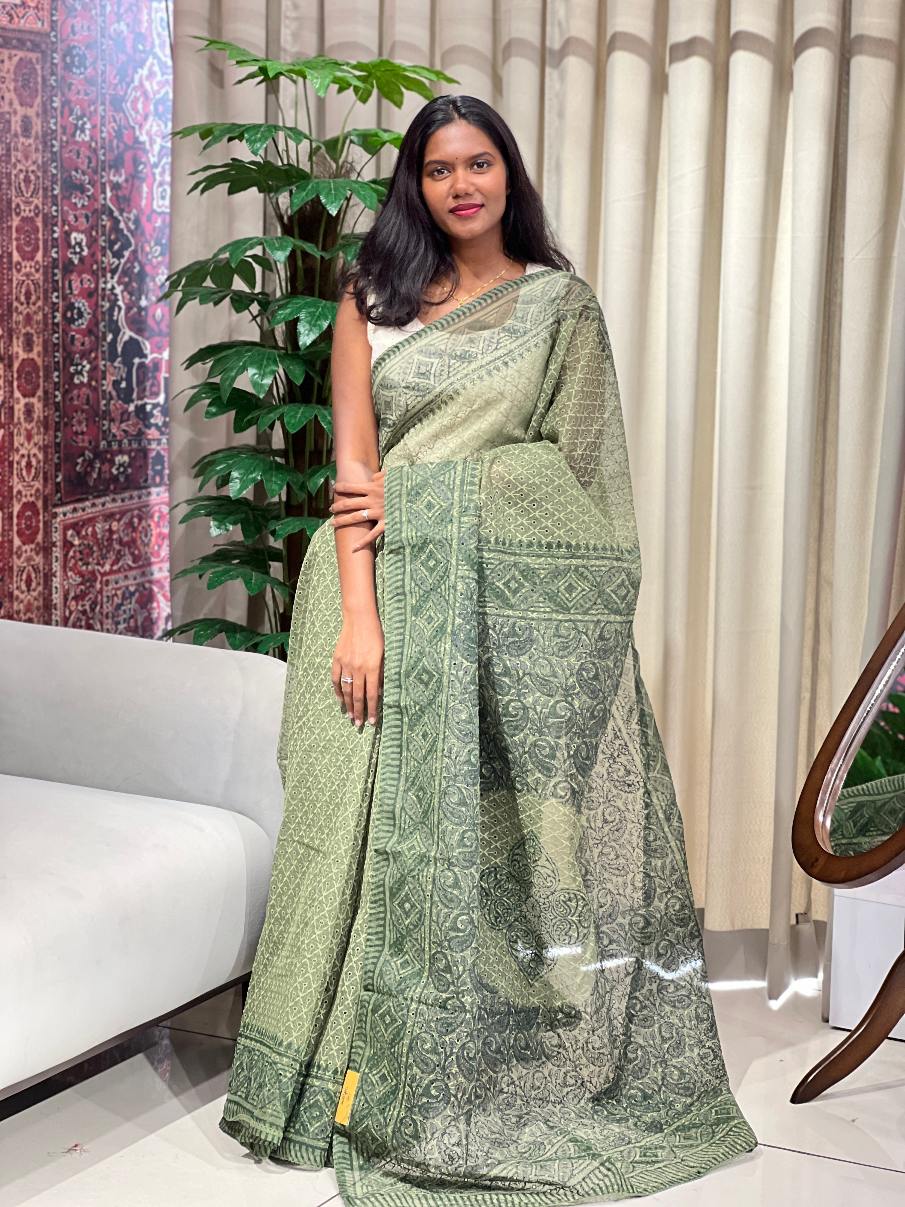 Block Printed Muga Check Organza Saree | PF1192 Block Printed Muga Check Organza Saree | PF1192