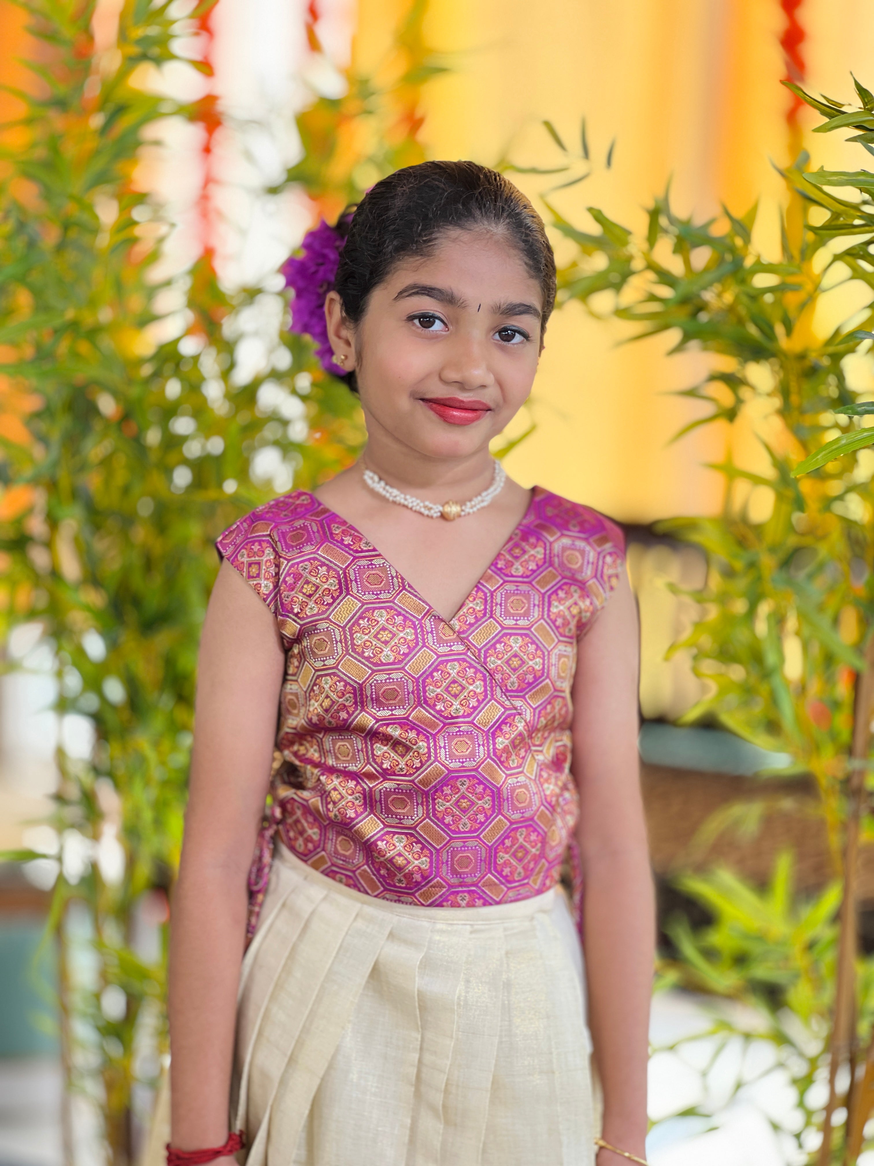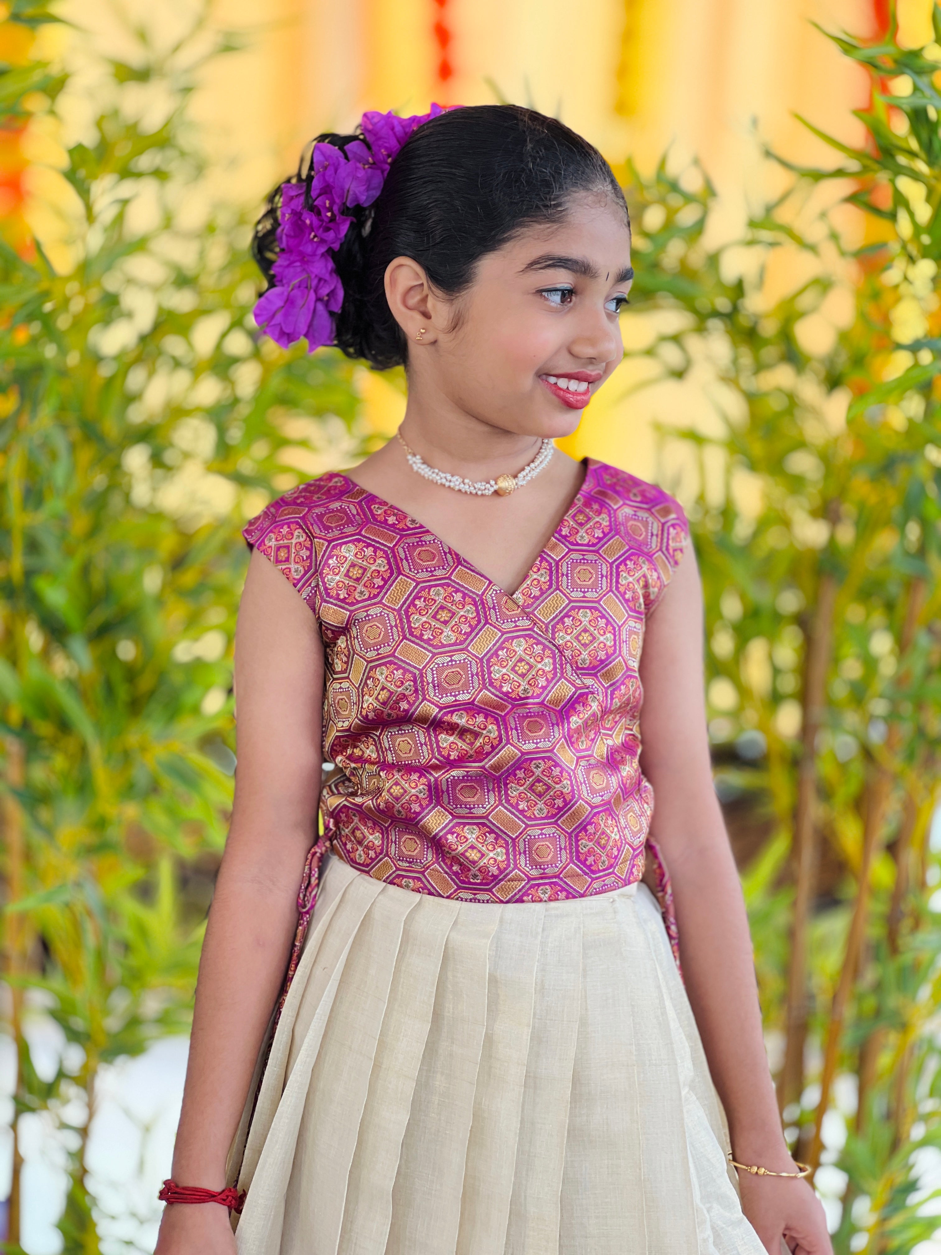 Brocade Patterned Banarasi Katan Handloom Unstitched Top & Skirt | ONK103