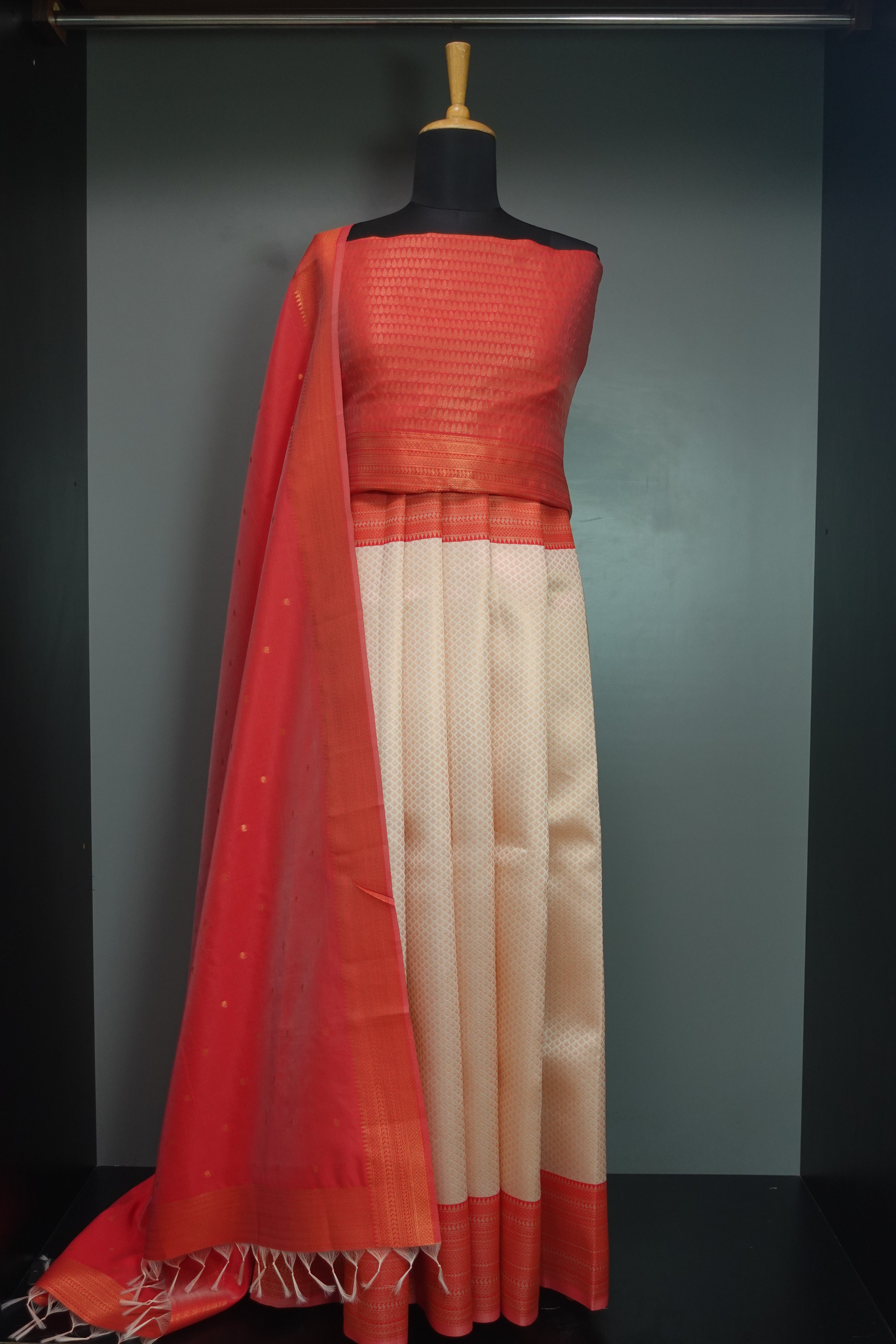 - Style: Brocade Pattern, Zari Woven ( Without Lining )