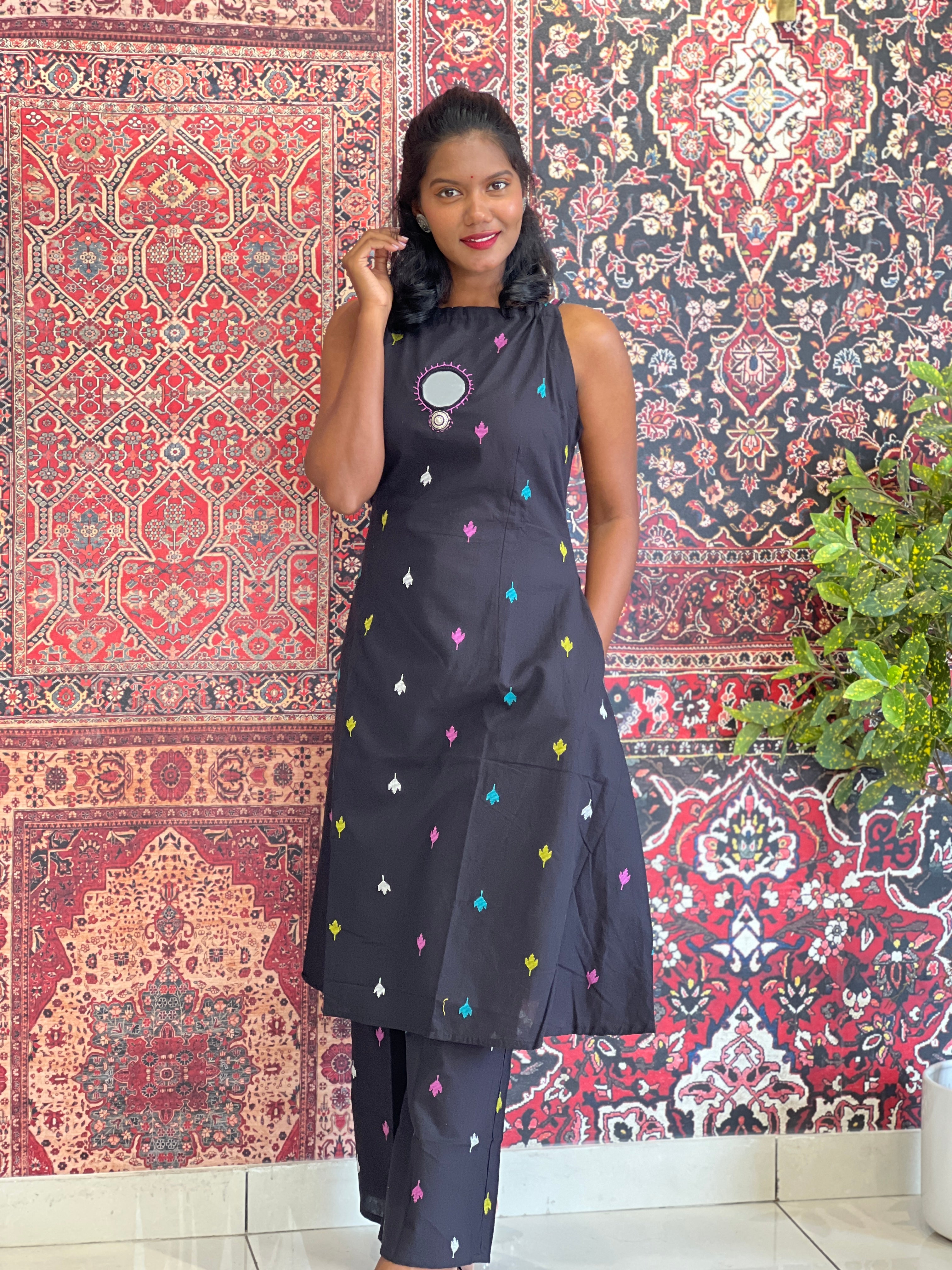 - Style: Scattered Thread Woven Butas, Mirror Detailed Yoke, With Pockets