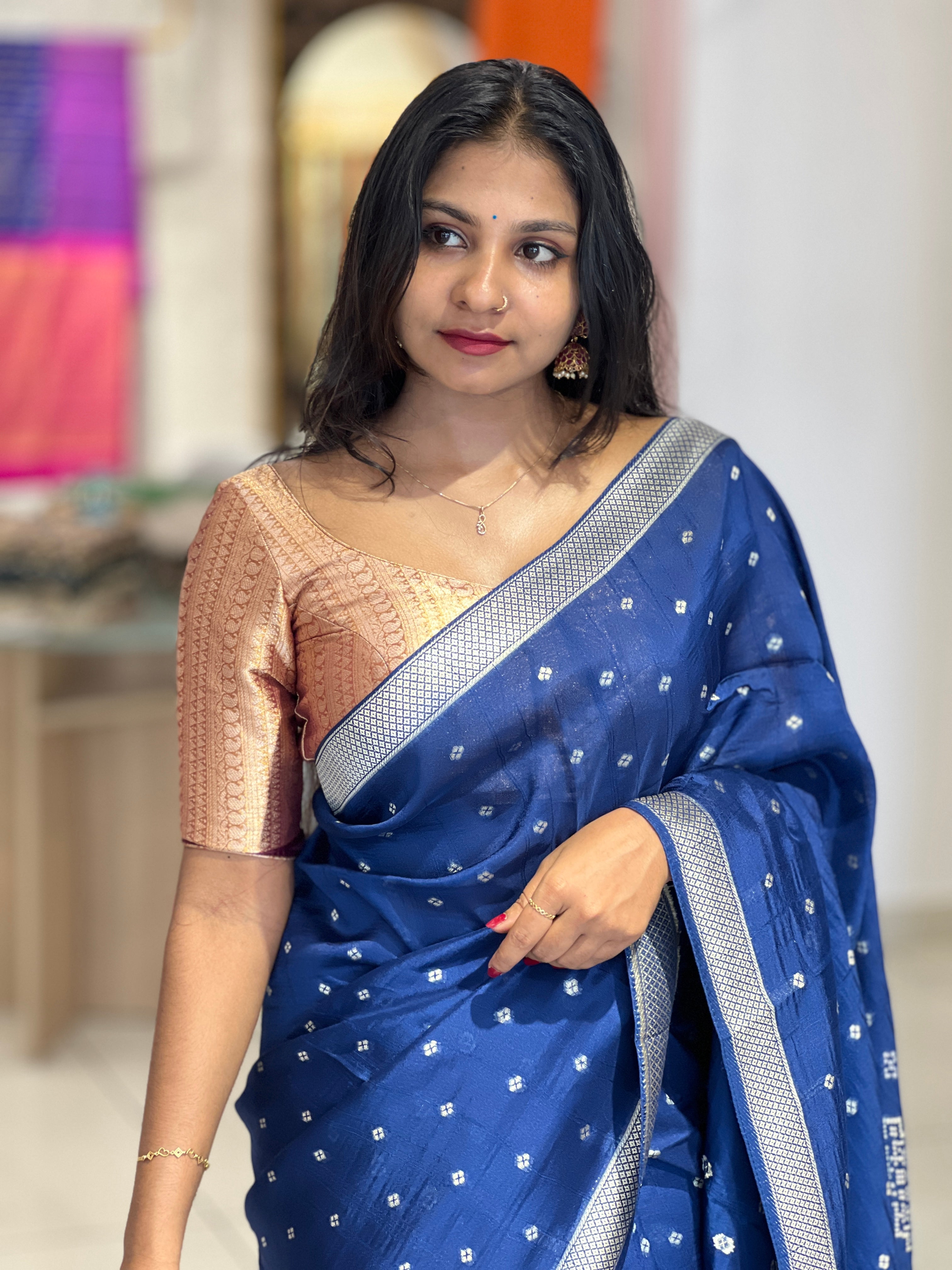 • Style: Geometric Buta Pattern, Border zeri Weaving Pattern,Zilver and Copper Pattern pallu,Tassels Attaching,