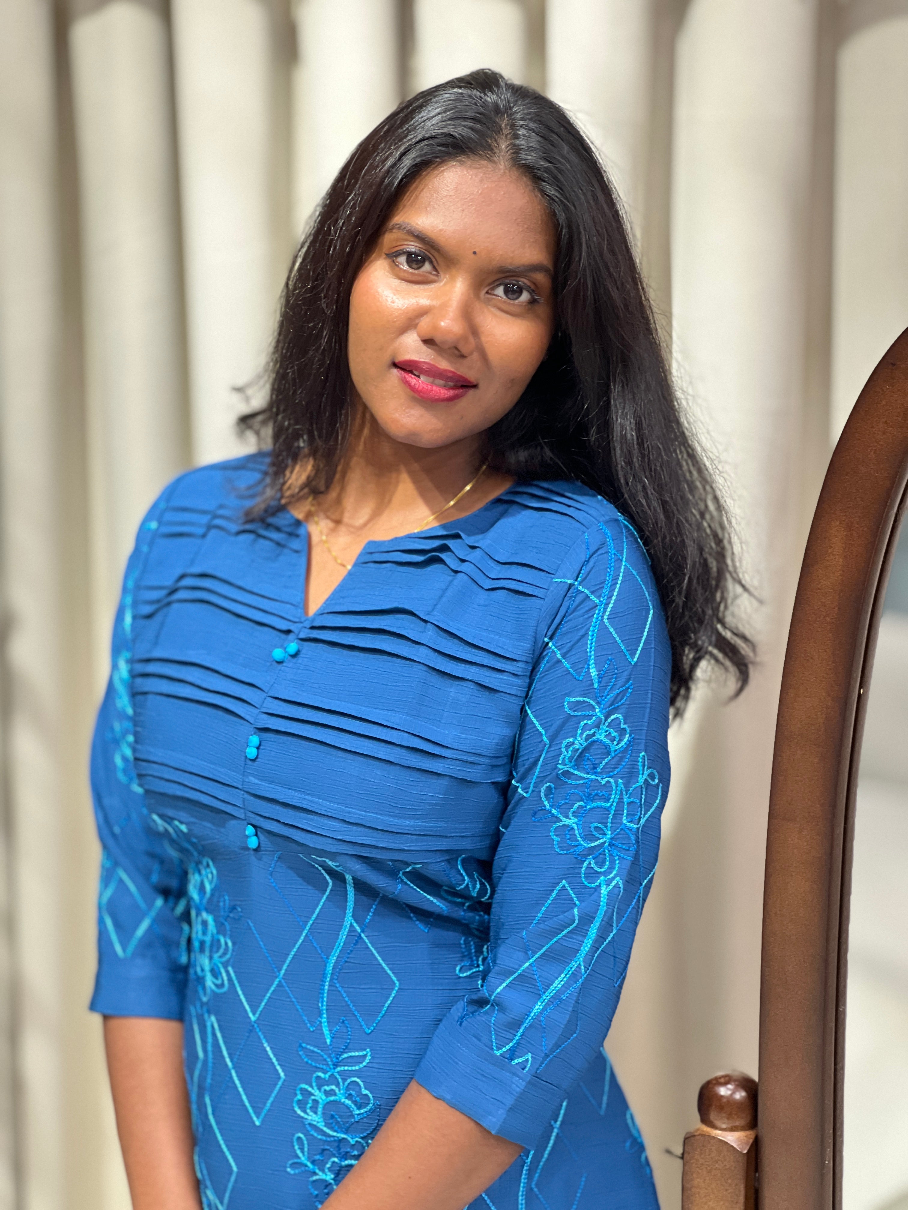 - Style: Chain Stitch Embroidery, Potli Detailing, Knife Pleat Detailing