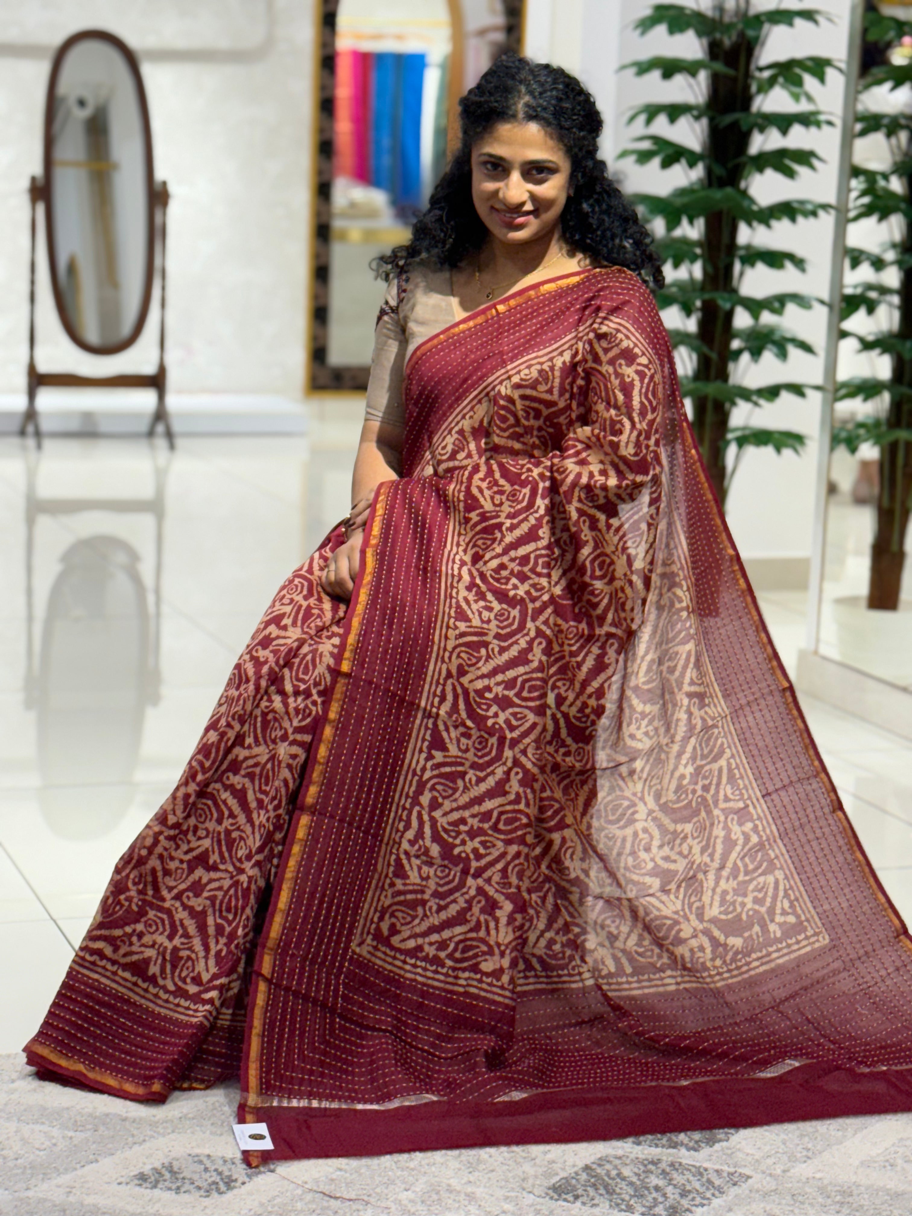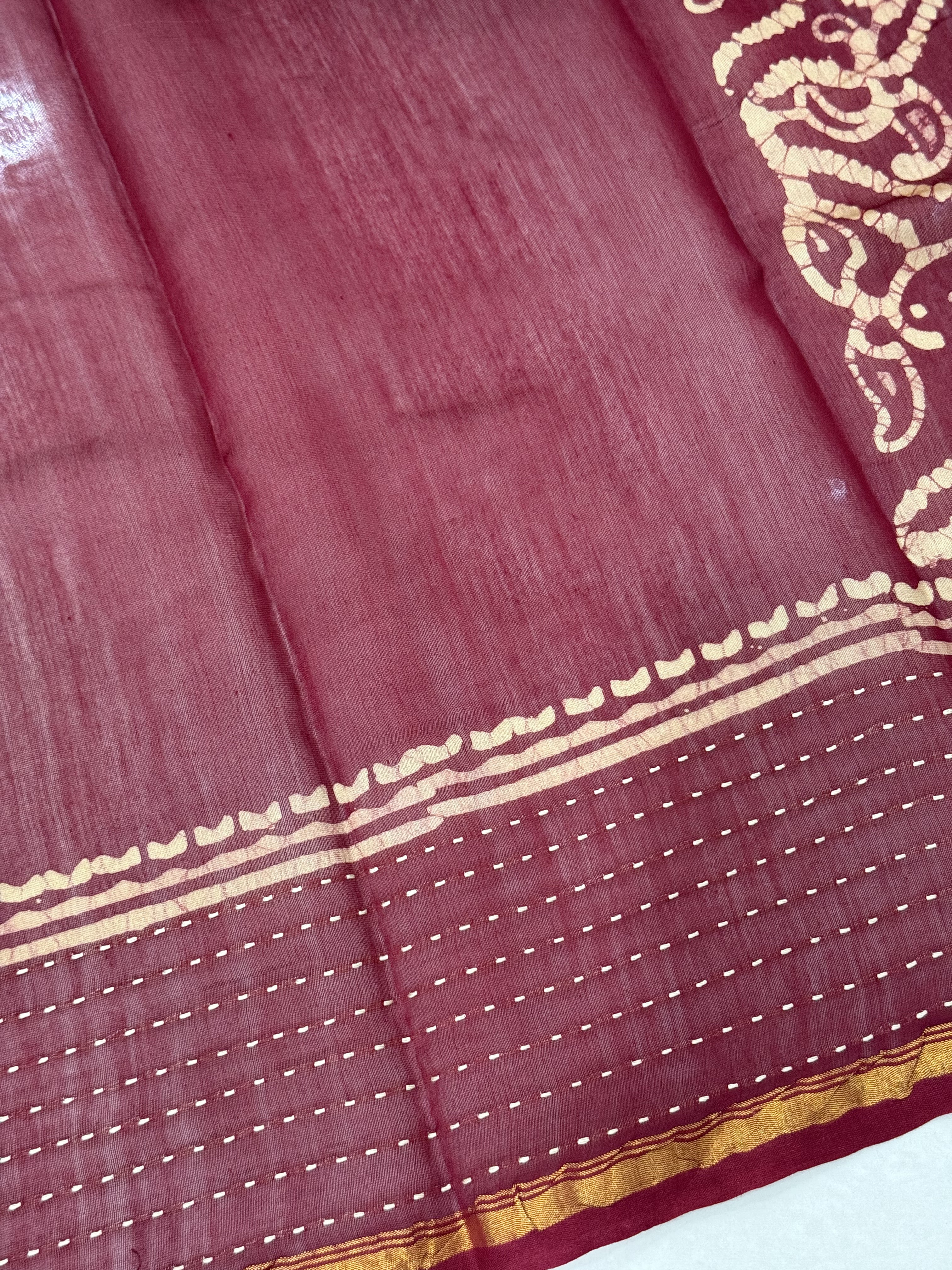 - Style: Batik Printed, Machine Kantha Embroidered Borders & Pallu