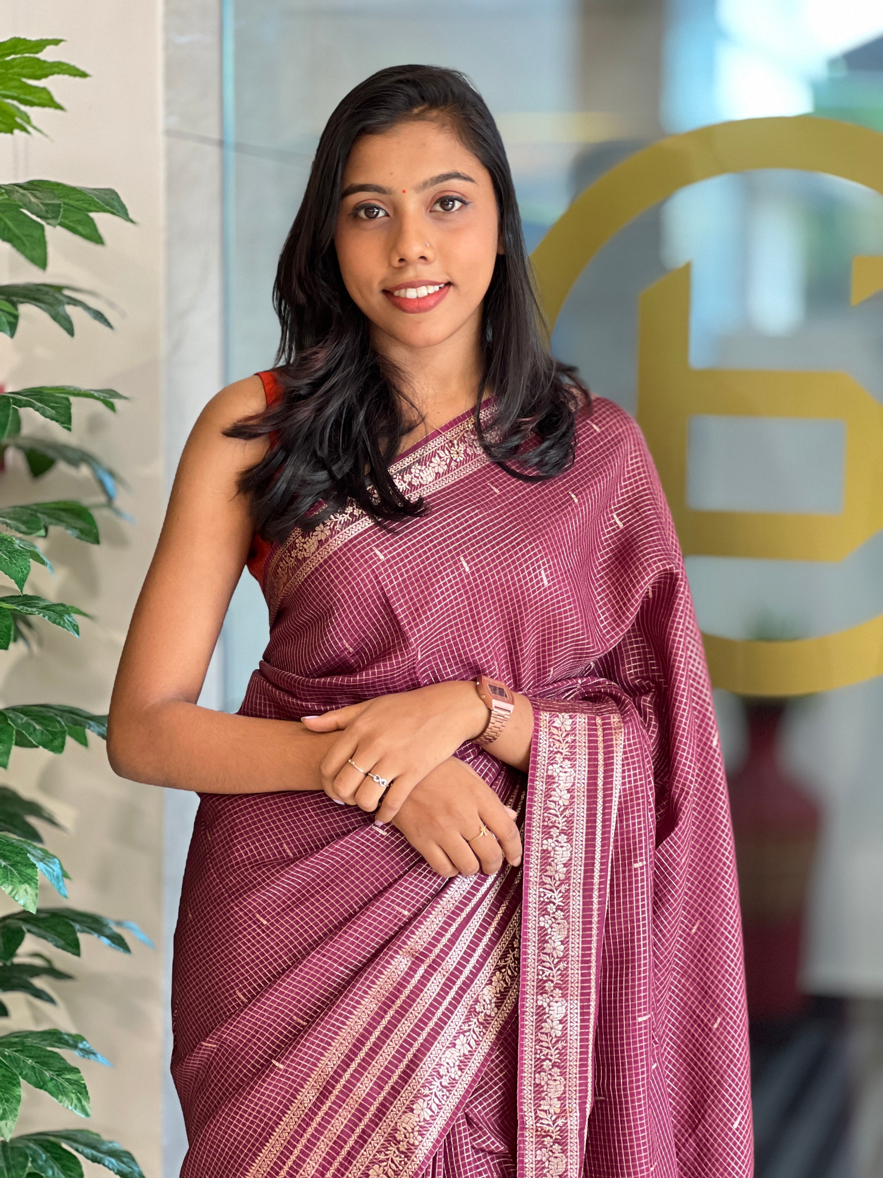 • Check Pattern Banarasi Silk Saree | NN279