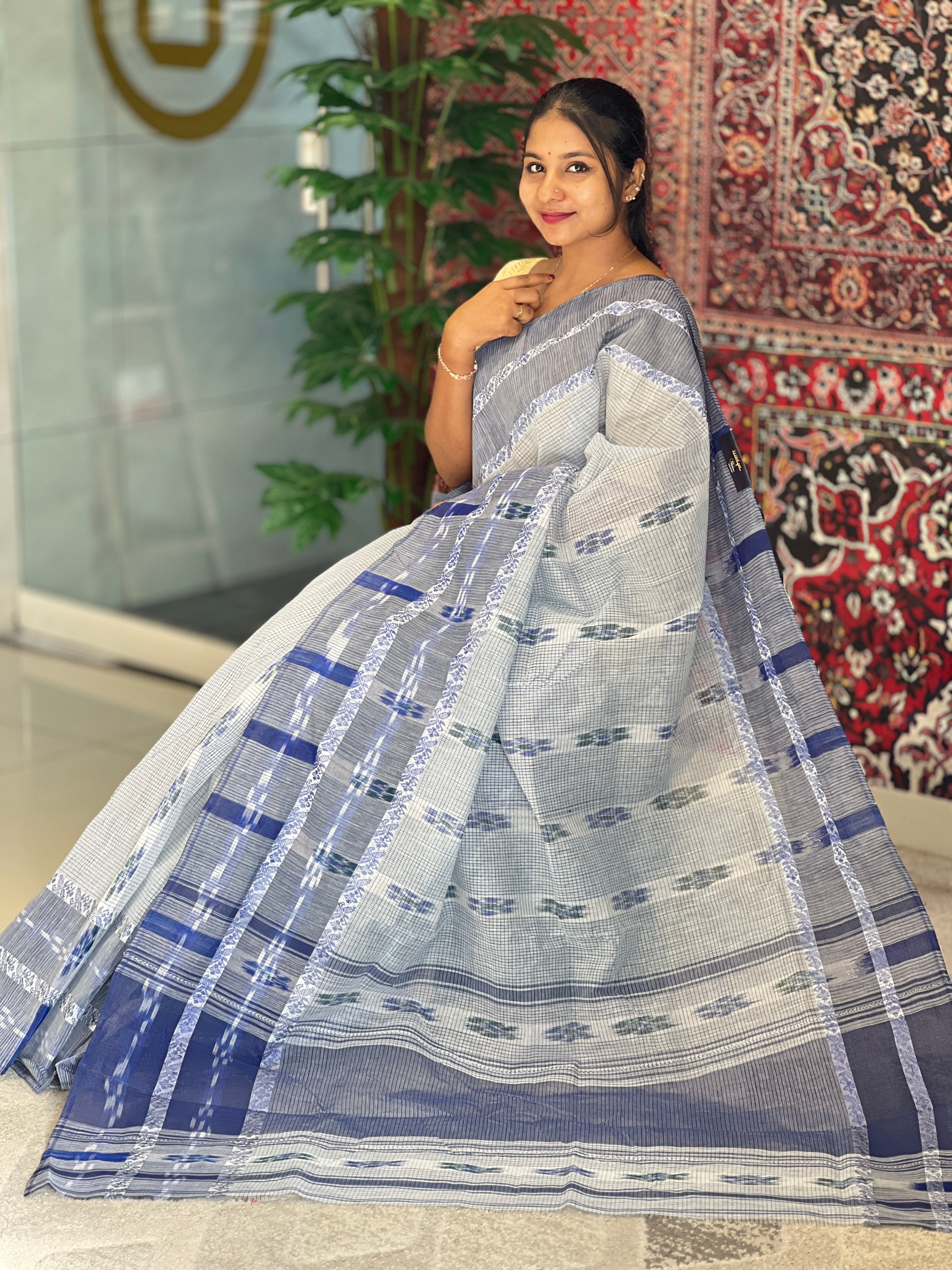 - Style: Check Patterned Body, Thread Woven Zig Zag Patterned Borders