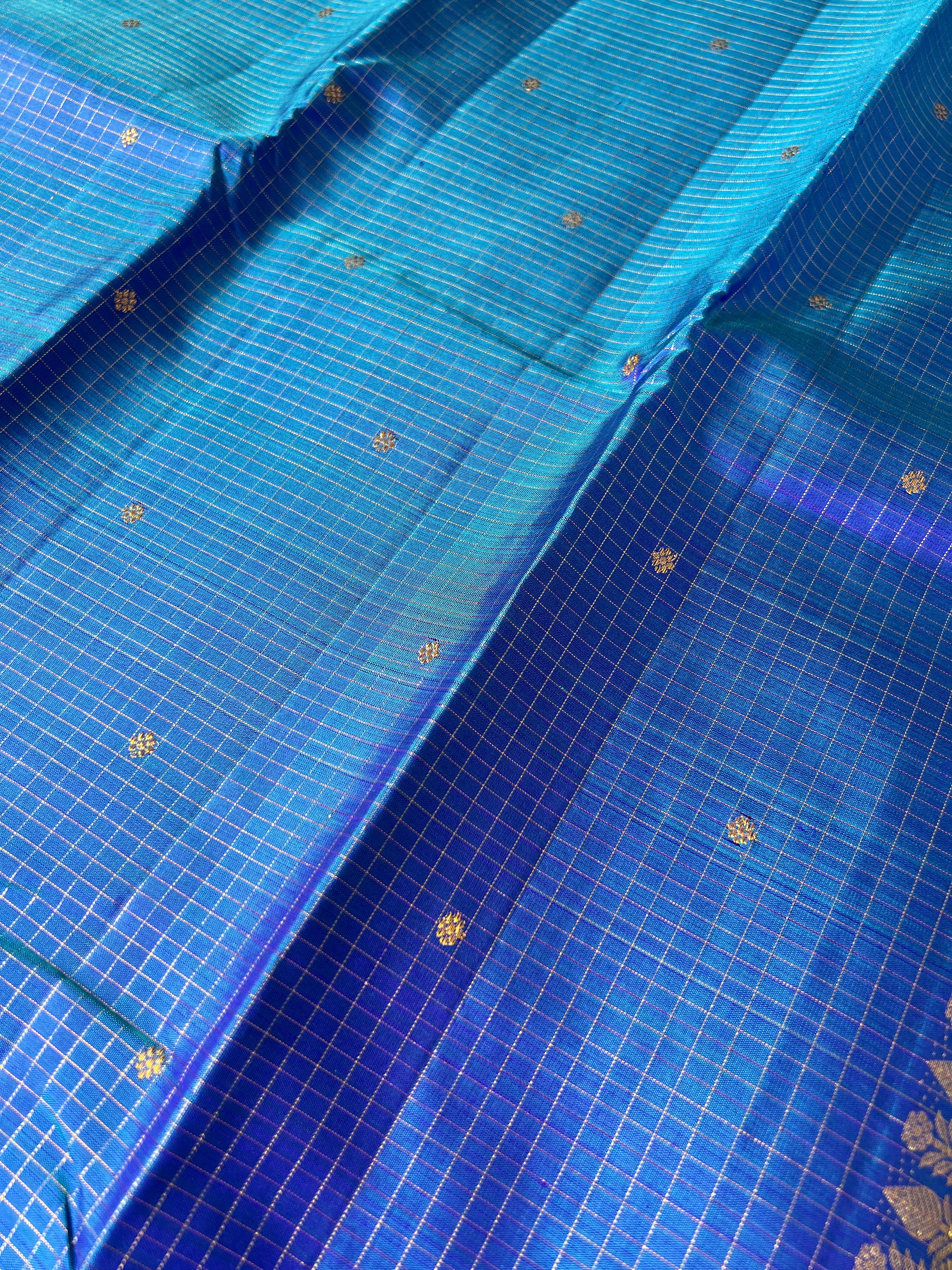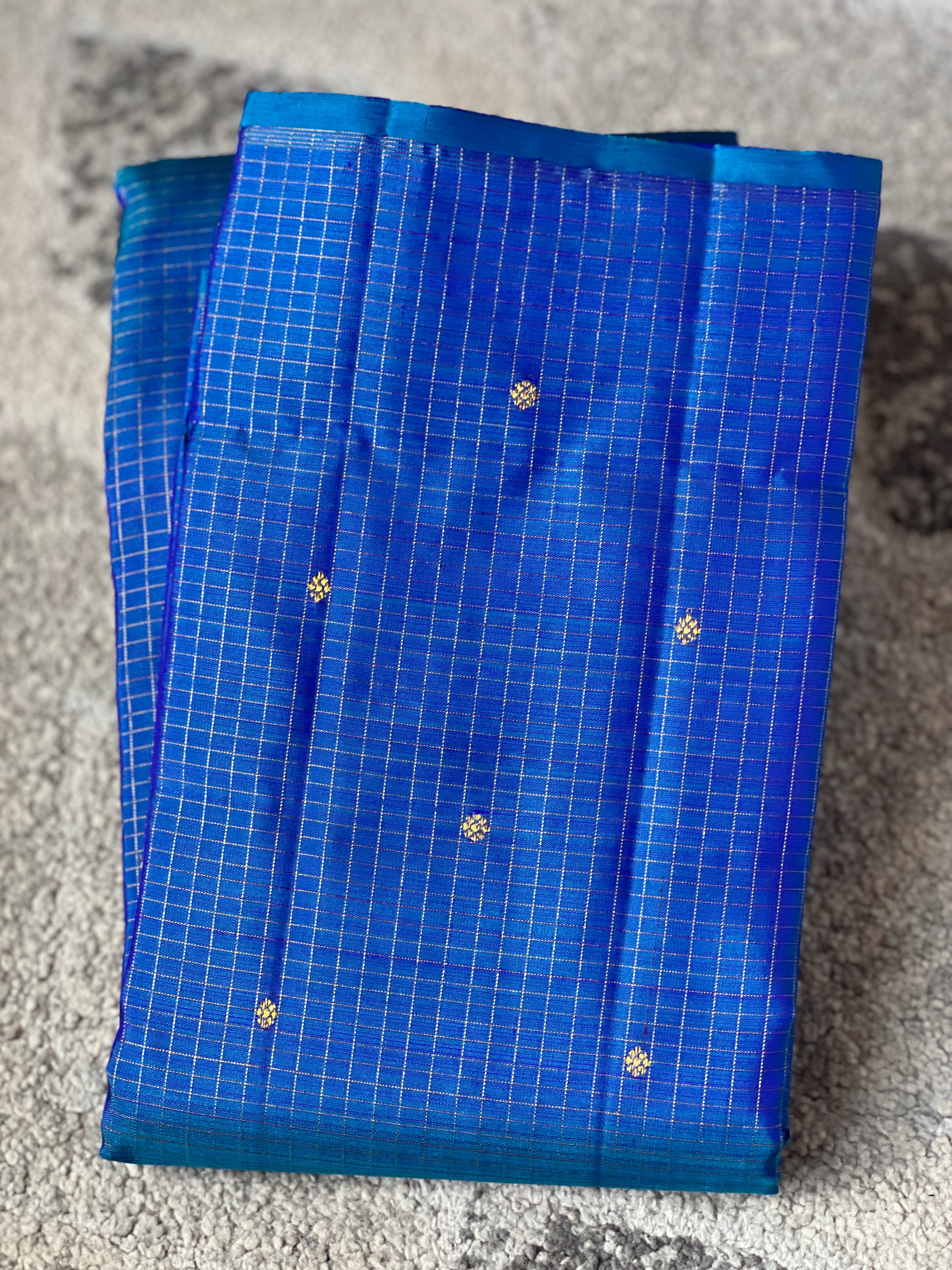 • Style: Zari Woven, Handloom, Check Pattern With Floral Butas, Diamond & Chakra Patterned Pallu