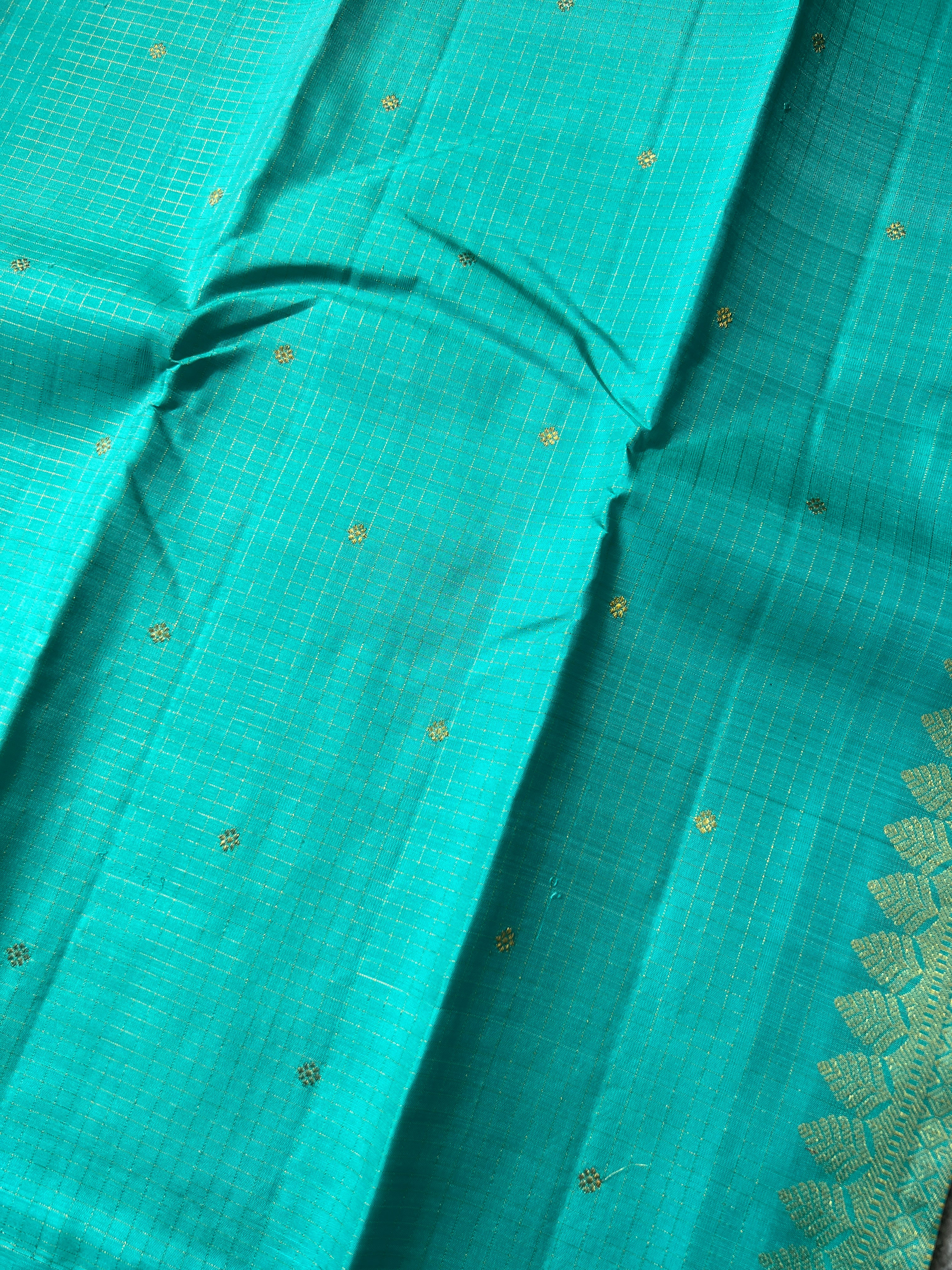 • Style: Zari Woven, Handloom, Check Pattern With Floral Butas, Diamond & Chakra Patterned Pallu