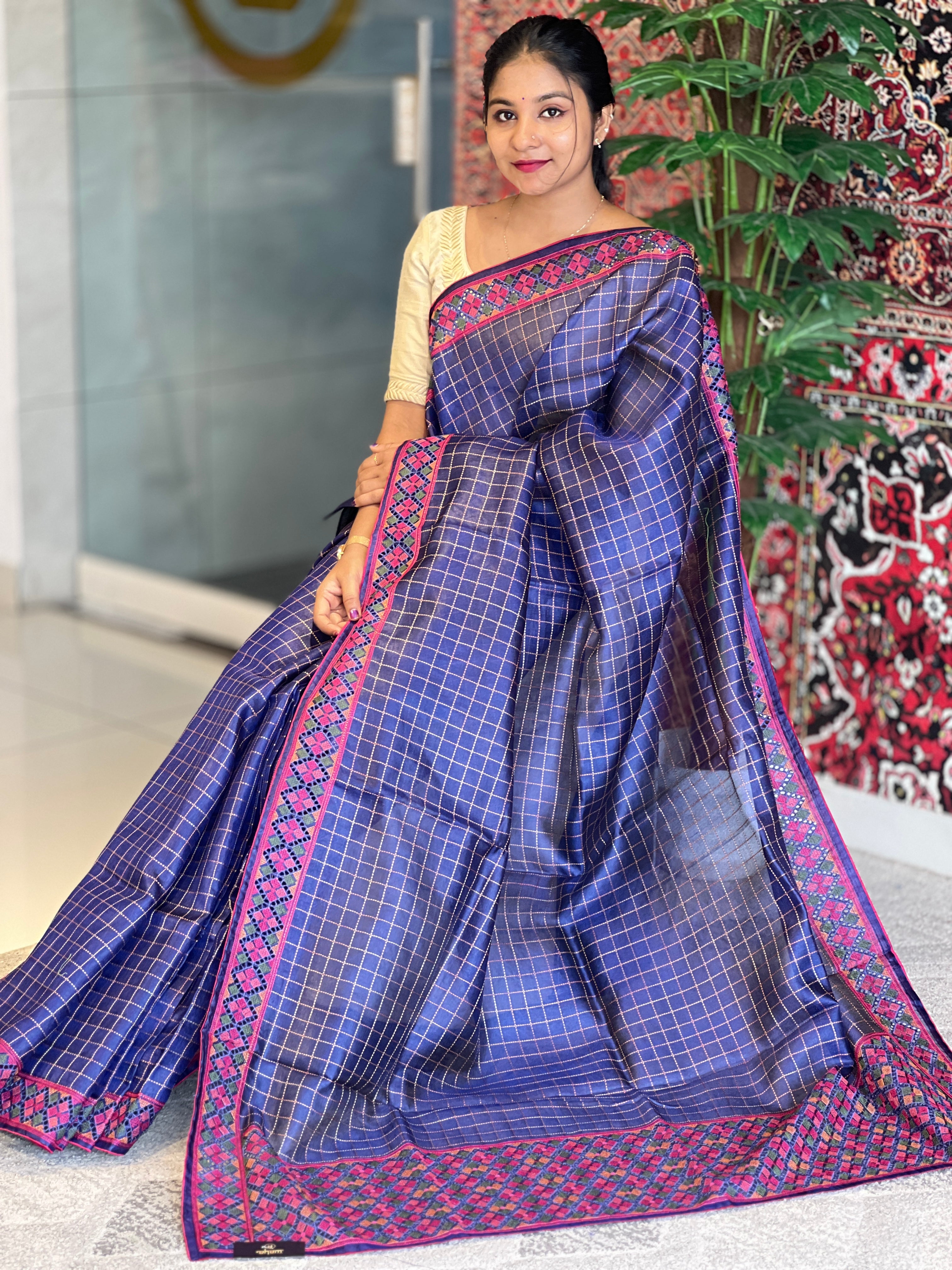 - Style: Check Weaving Pattern, Cut work Embroidery Detailed Border, Floral Embroidery Detailed Pallu