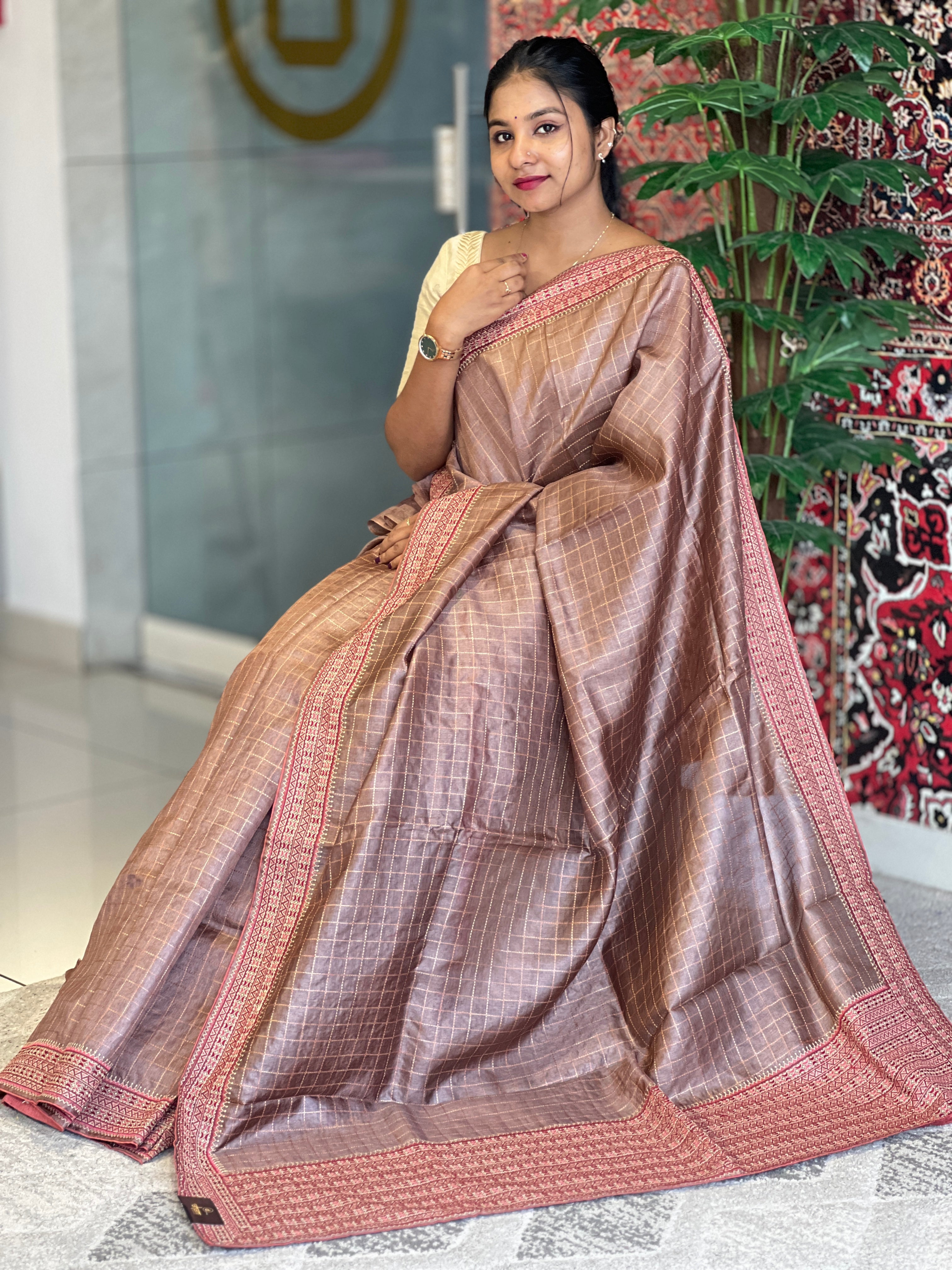 - Style: Machine Embroidery, Check Weaving Pattern, Embroidery Detailed Border, Embroidery Detailed Pallu