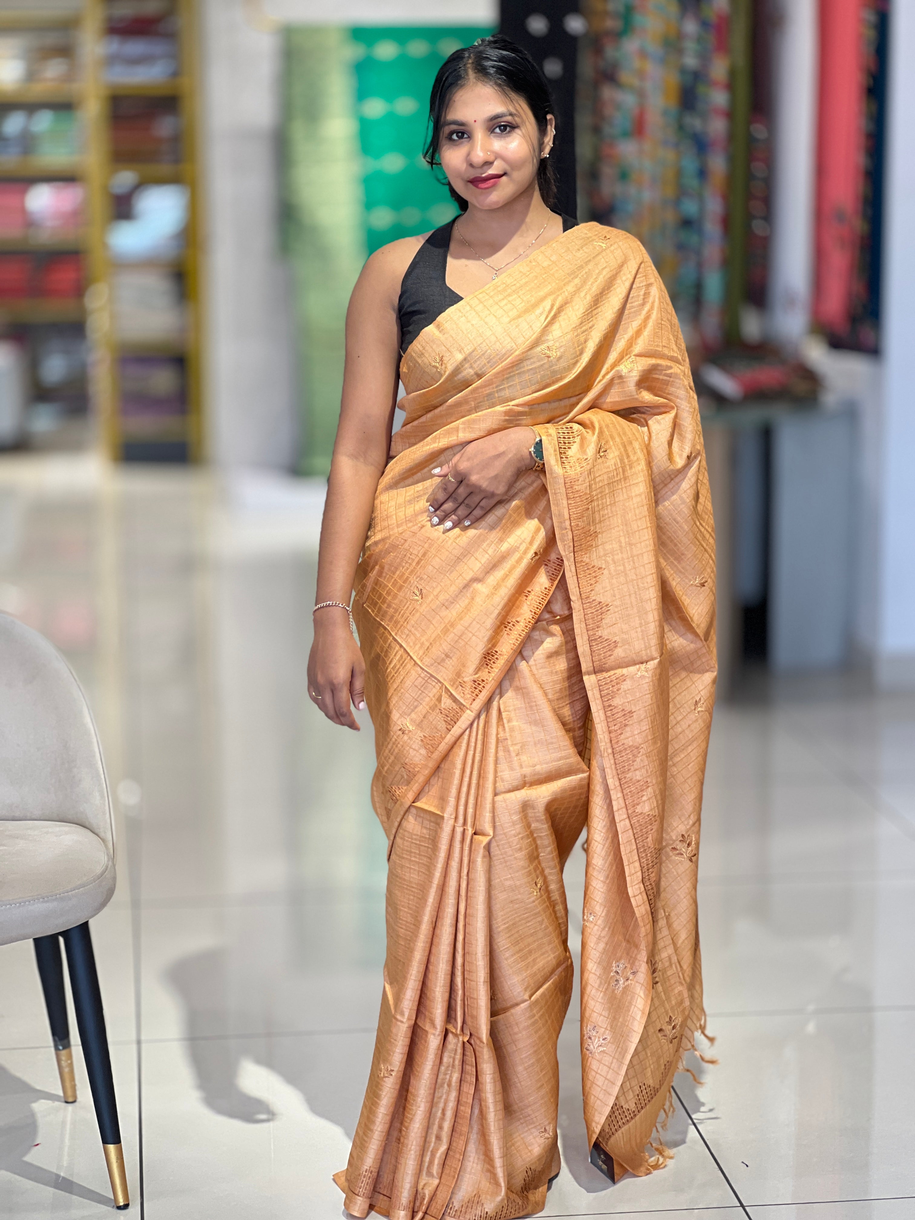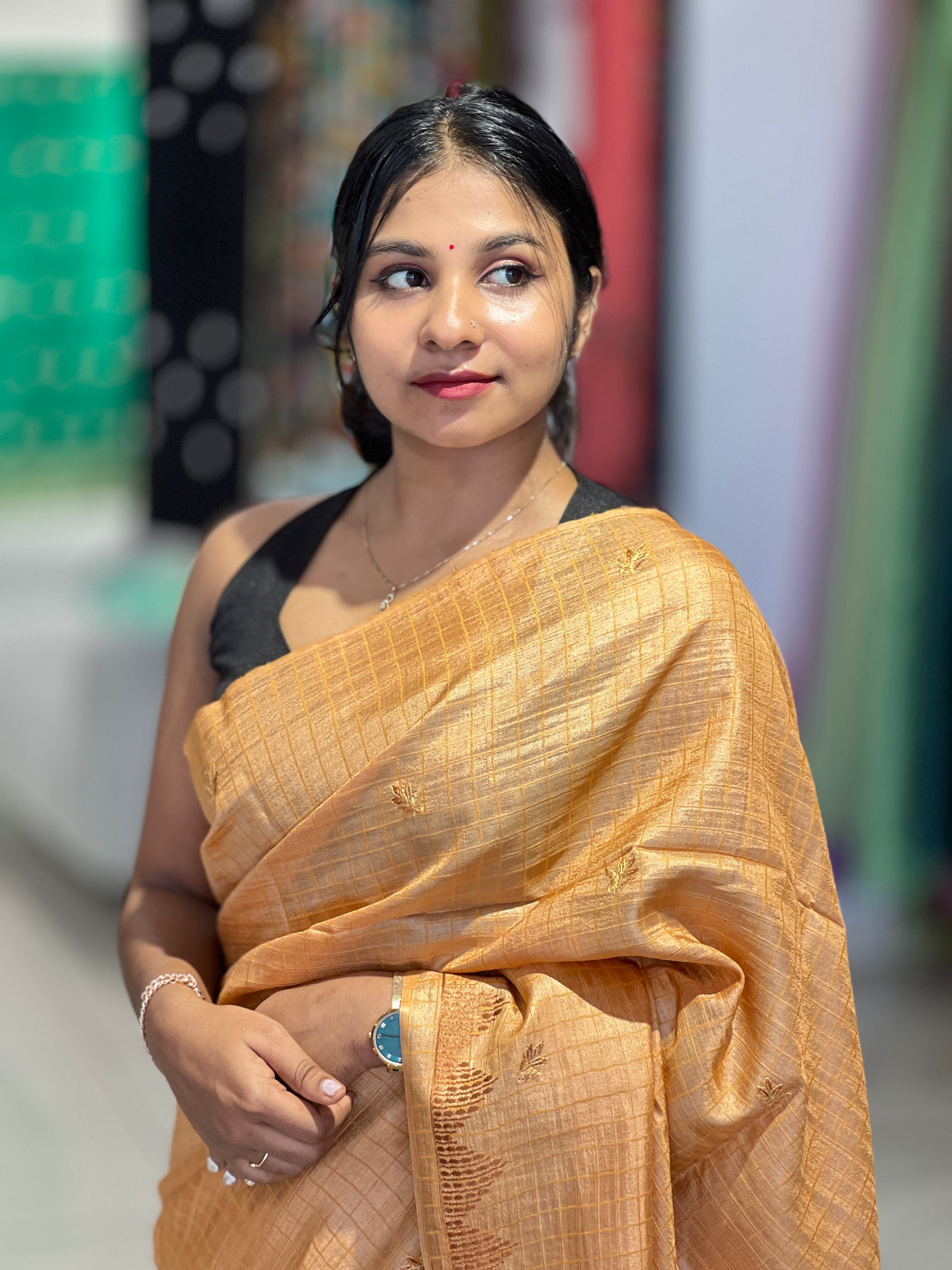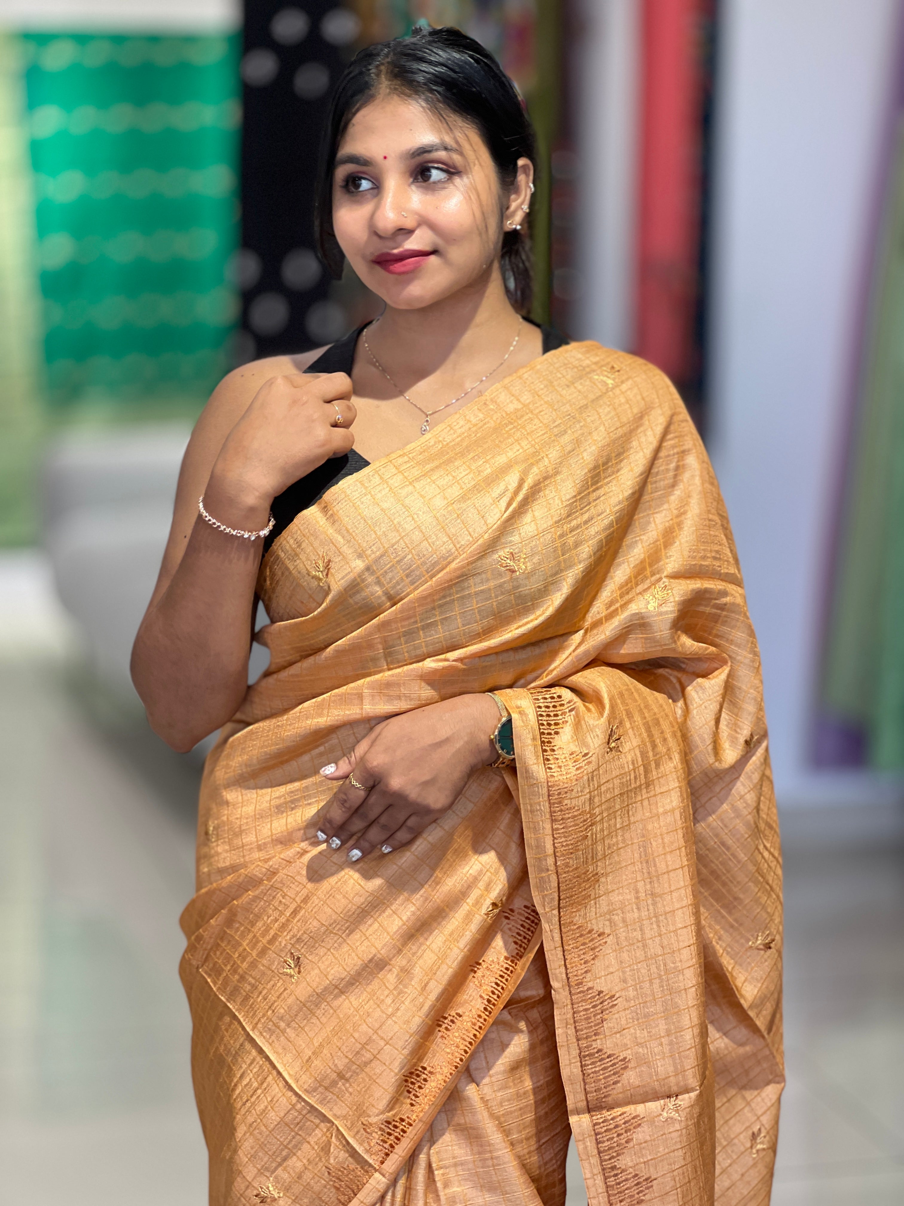 Check Weaving Machine Embroidery Detailed Tussar Saree | MNH473 Check Weaving Machine Embroidery Detailed Tussar Saree | MNH473