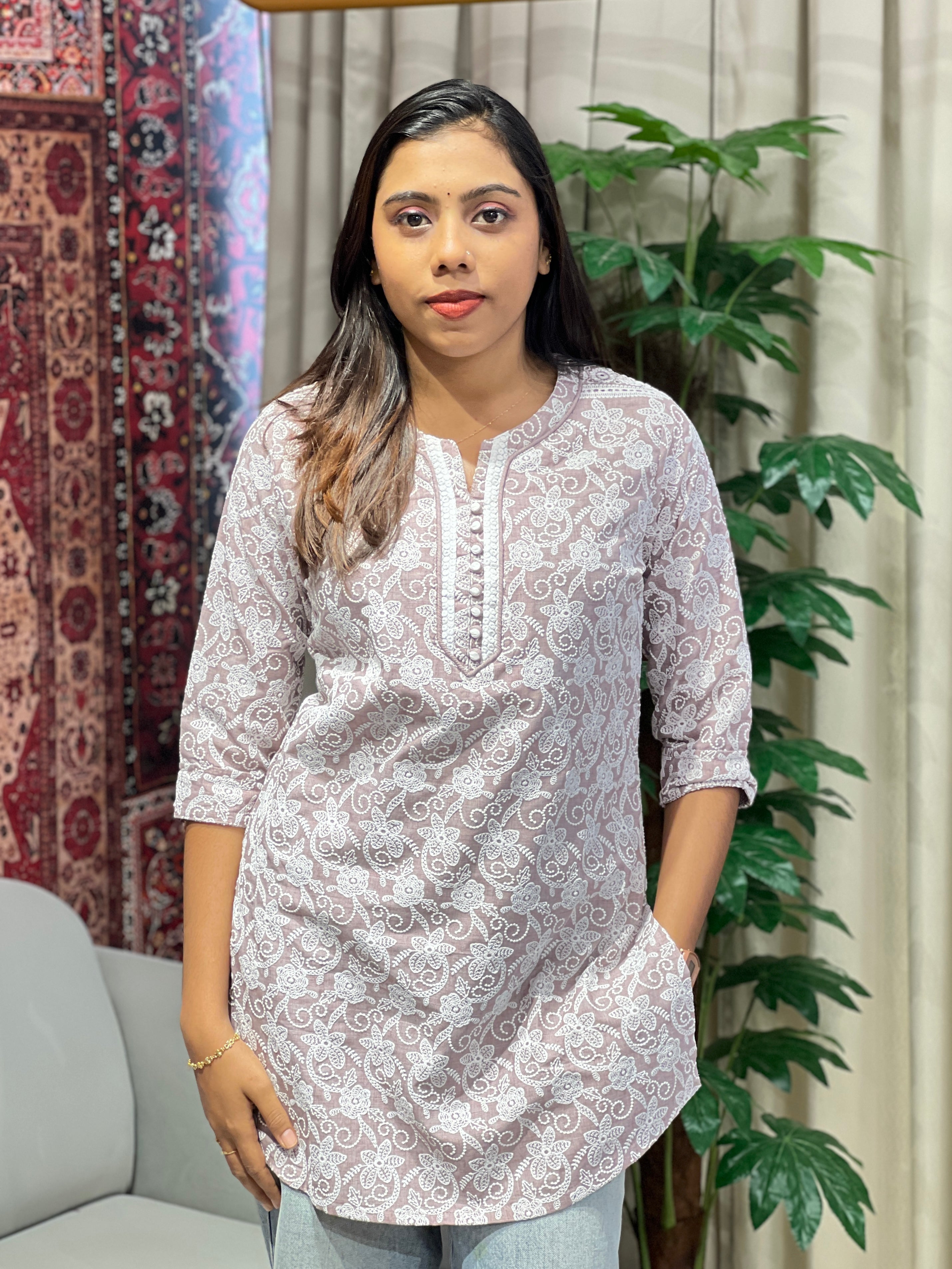 Chikankari Pattern Cotton Short Kurta | AKE105