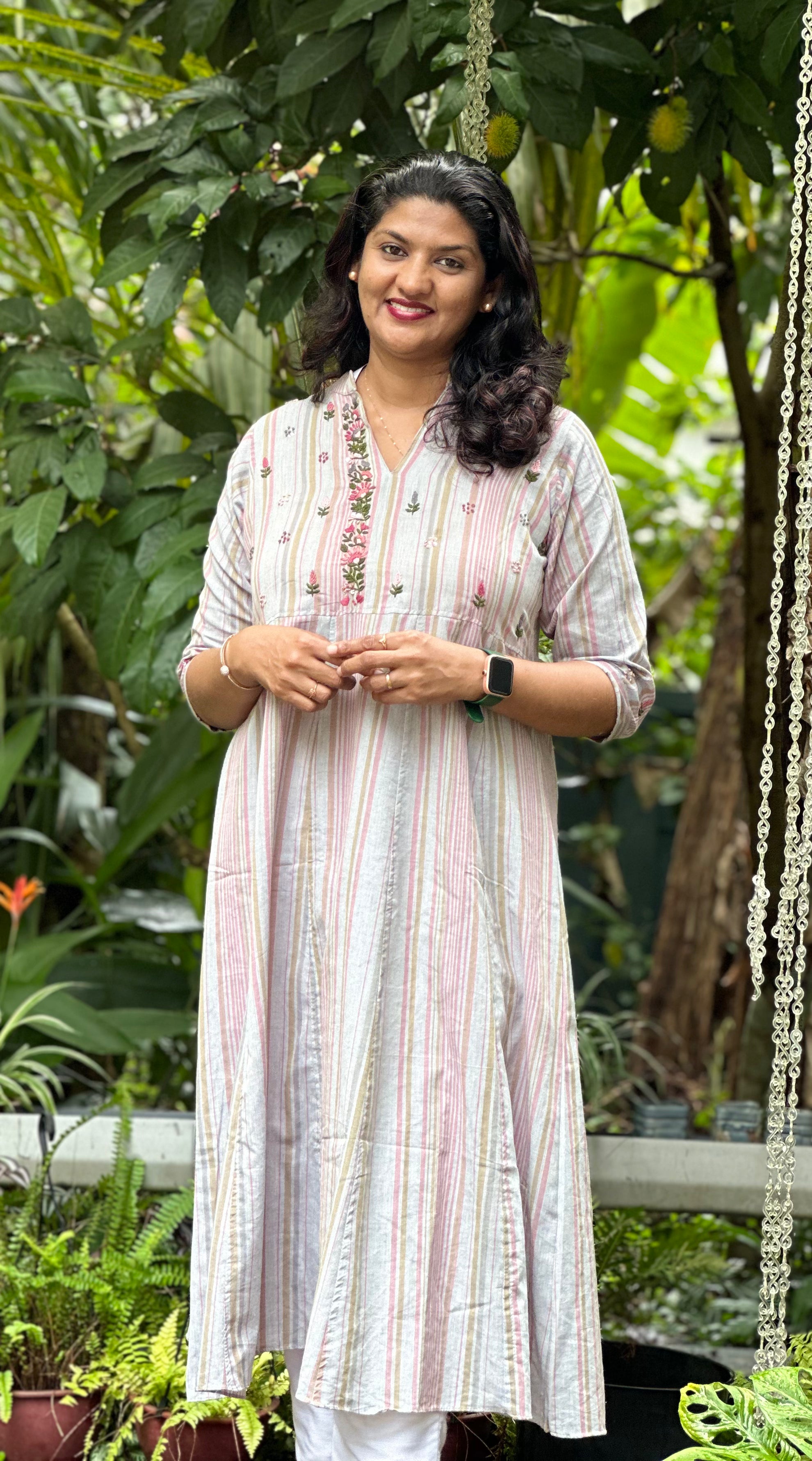 - Style- Computerized Yoke Embroidery, Line Weaving Pattern
