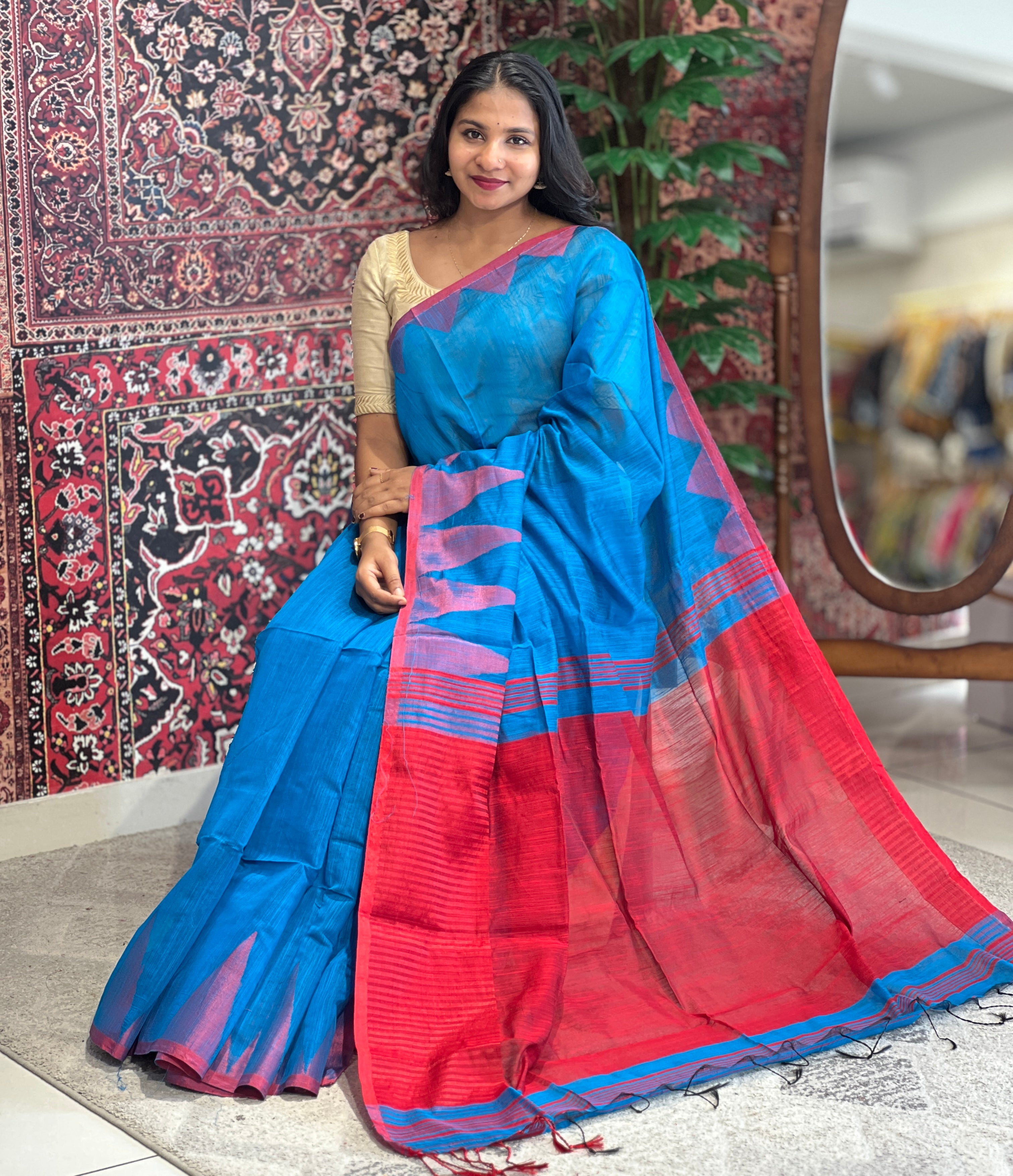 • Contrast Temple Border Detailed Bhagalpuri Linen Saree | RP744