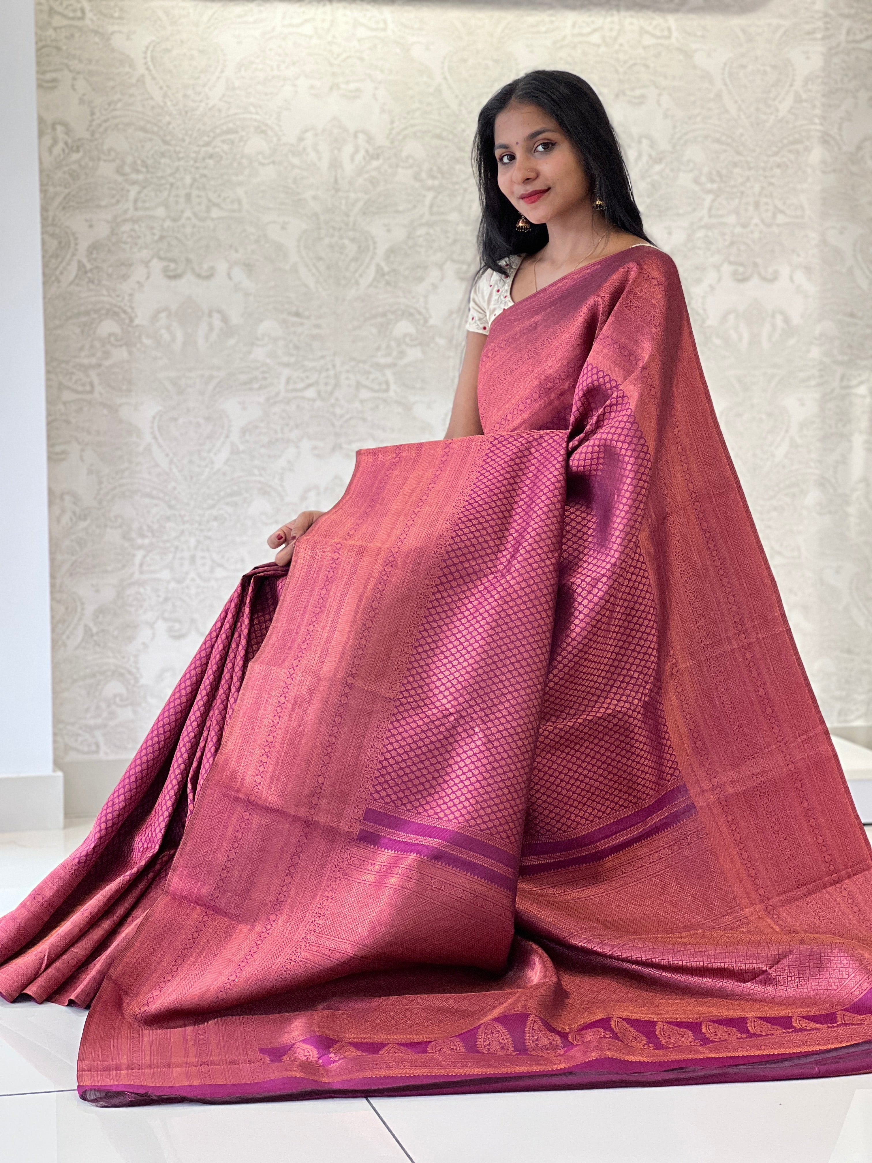 - Style: Copper Zari Weaving Pattern, Hand Woven