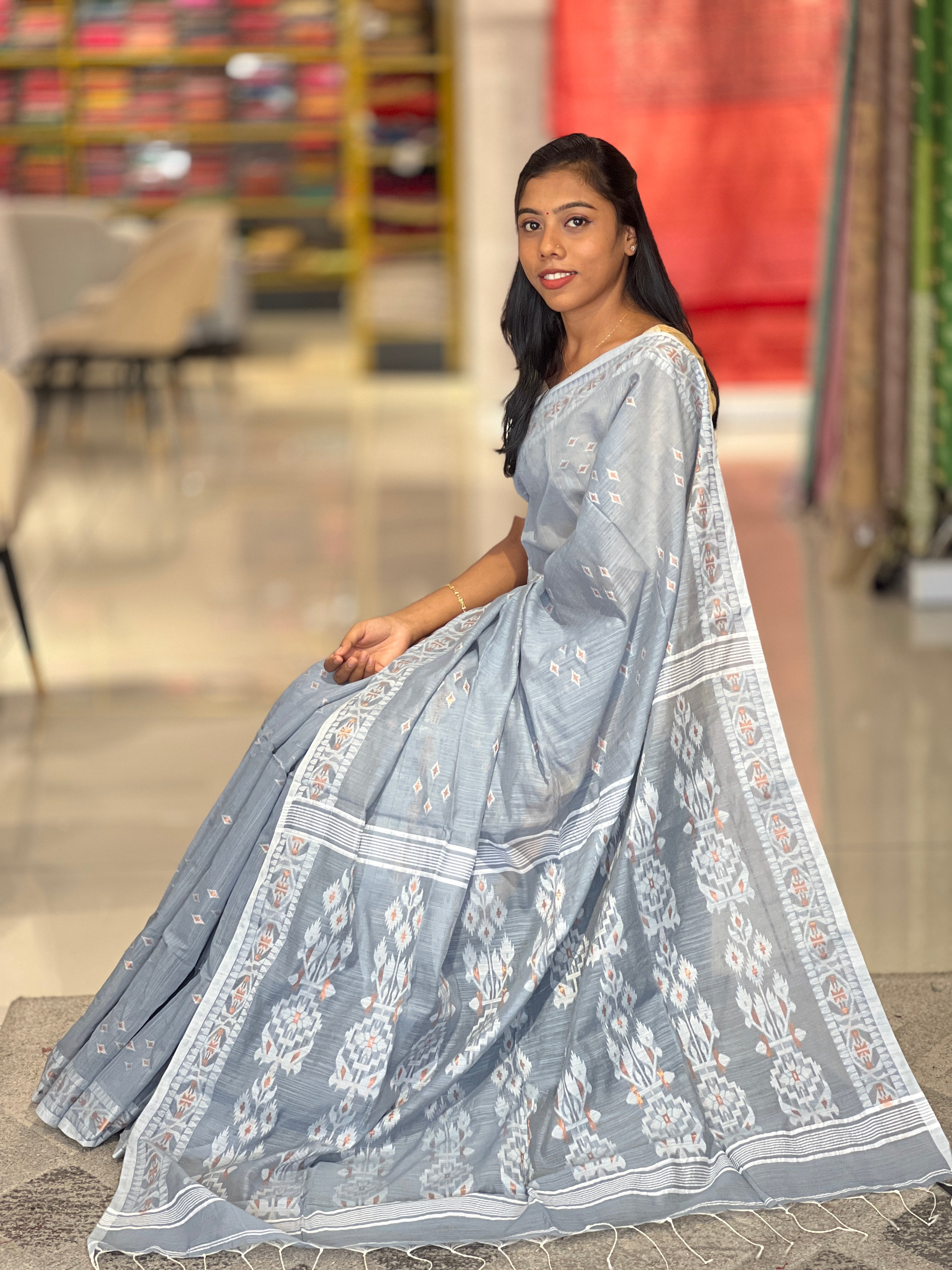 - Style:Thread Copper Zeri Weaving,Pallu Detailing, Self Tassels Attaching,