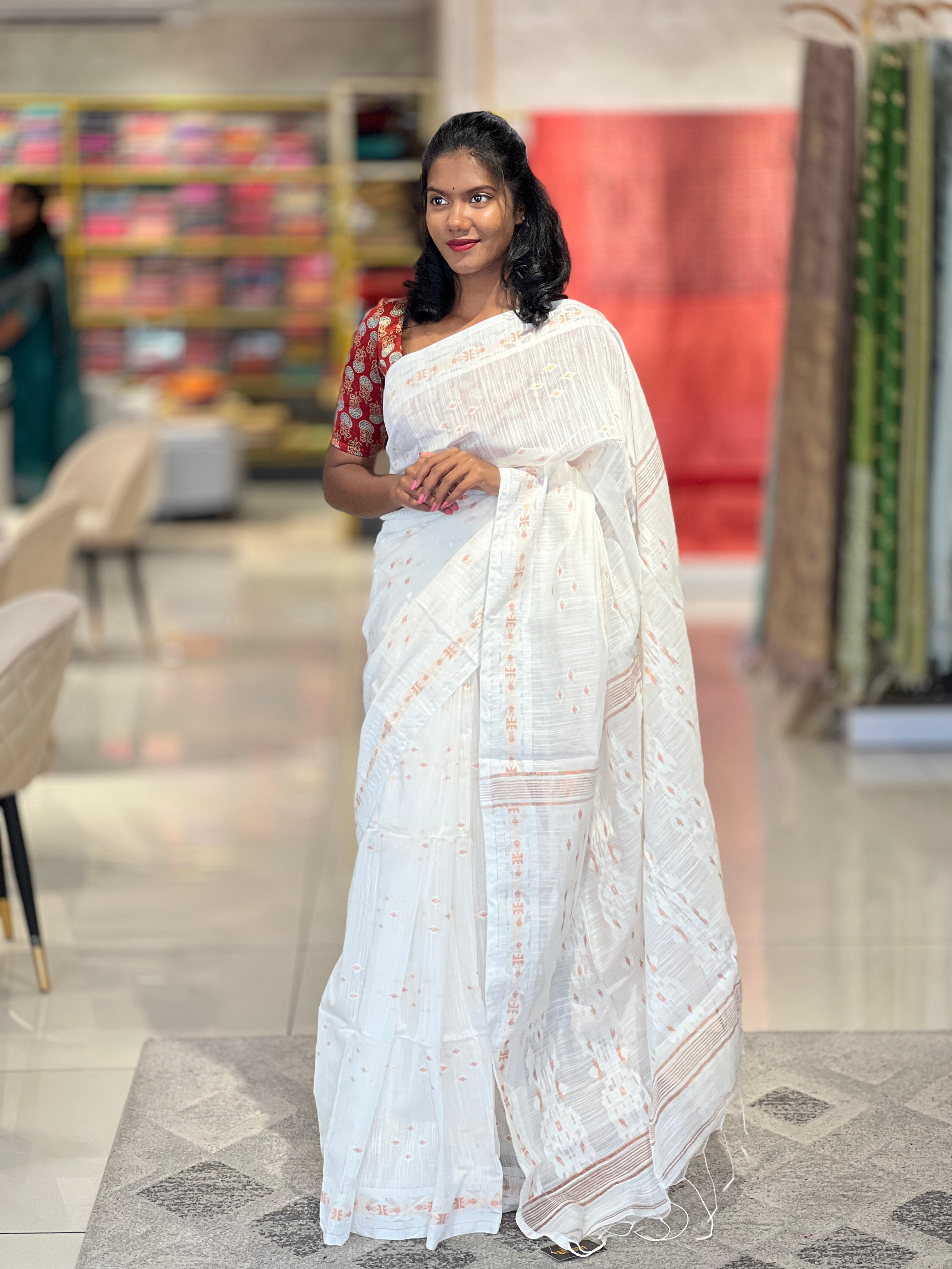 - Style: Copper Zeri Weaving,Pallu Detailing, Self Tassels Attaching,