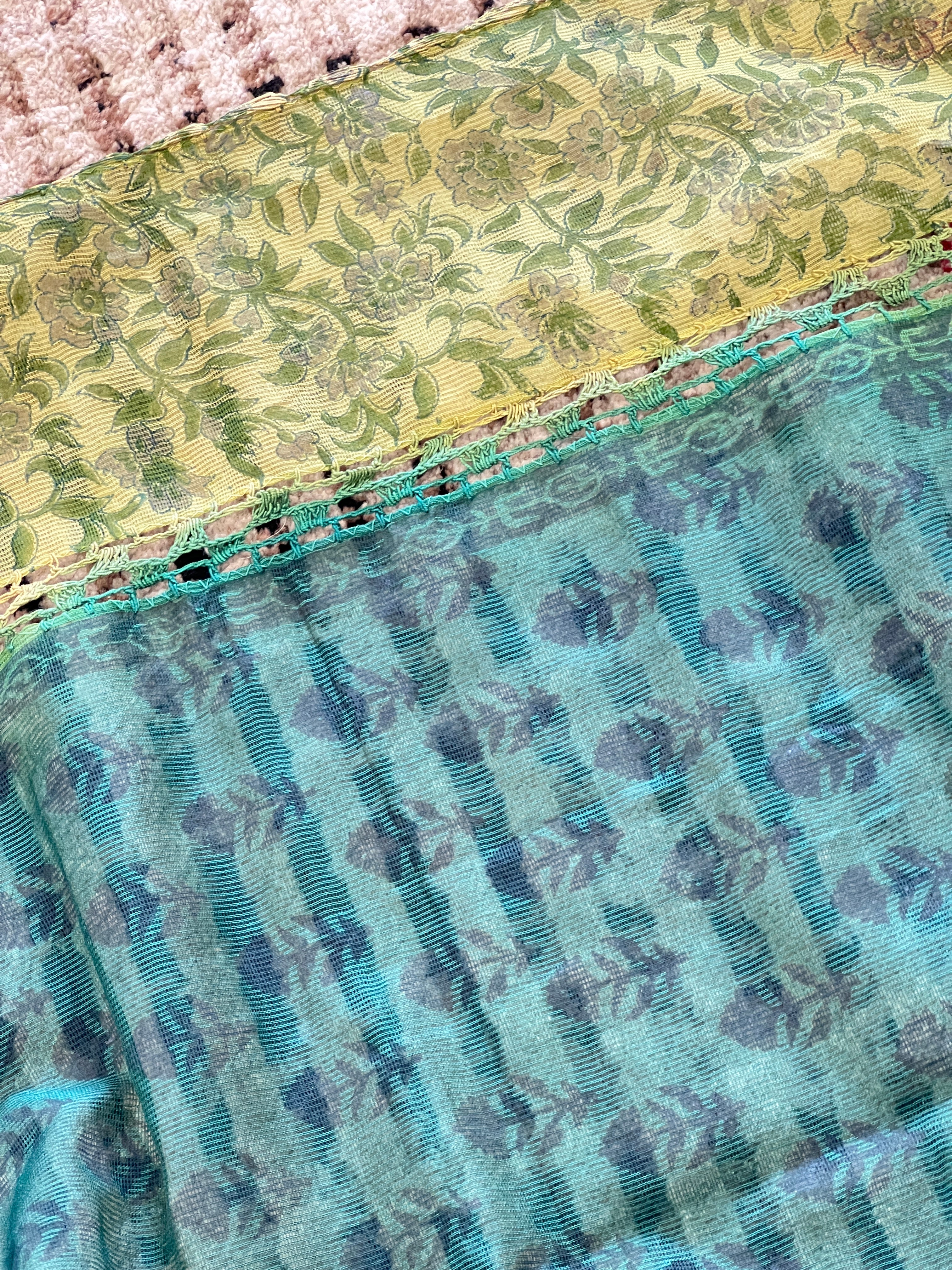 • Style: Block Printed, Crochet Lace Detailing, Contrast Border With Kalamkari Inspired Print, Floral Pattern