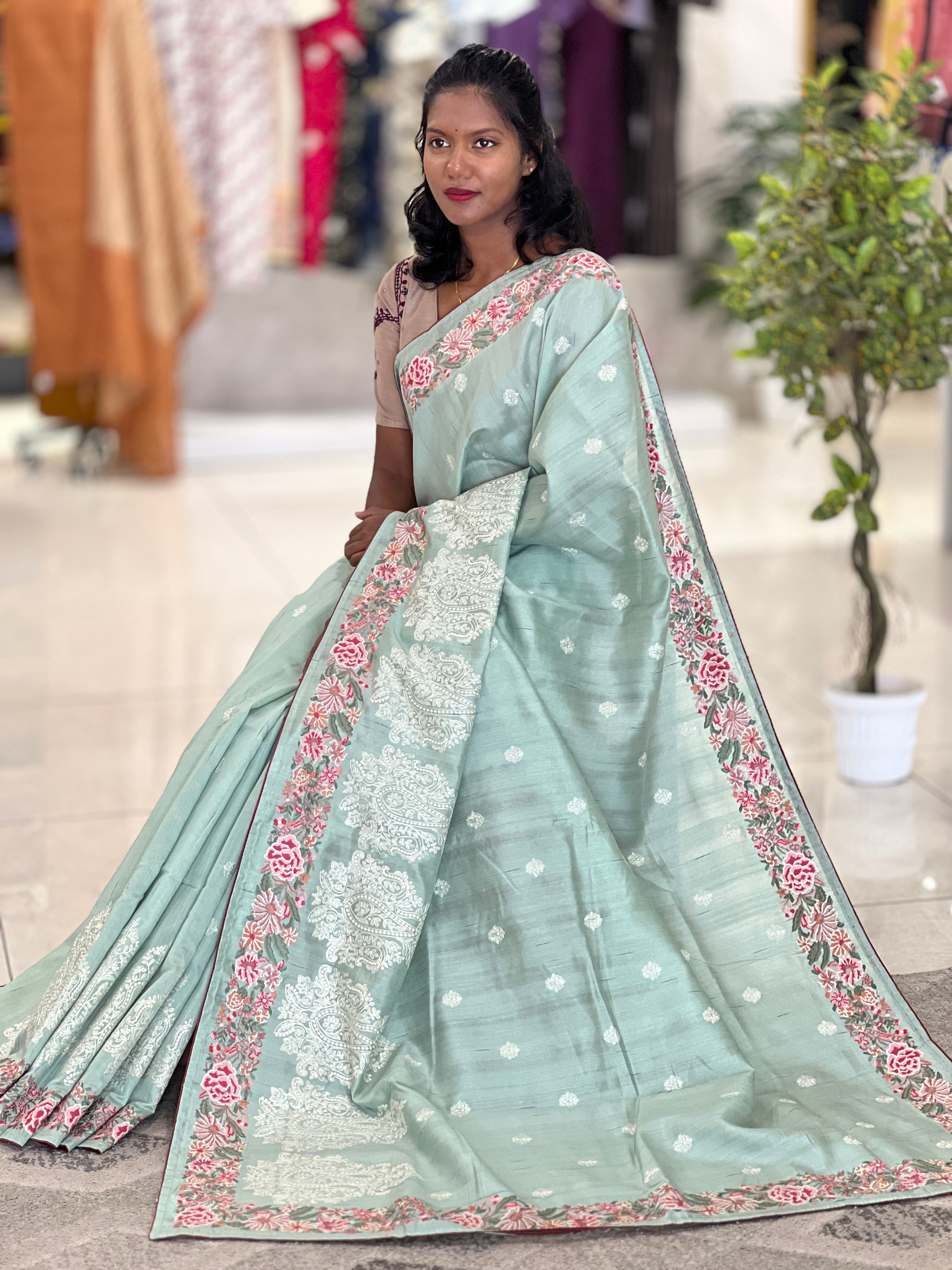 https://aham.store/products/cross-stitch-lucknowi-embroidered-semi-tussar-saree-sun154