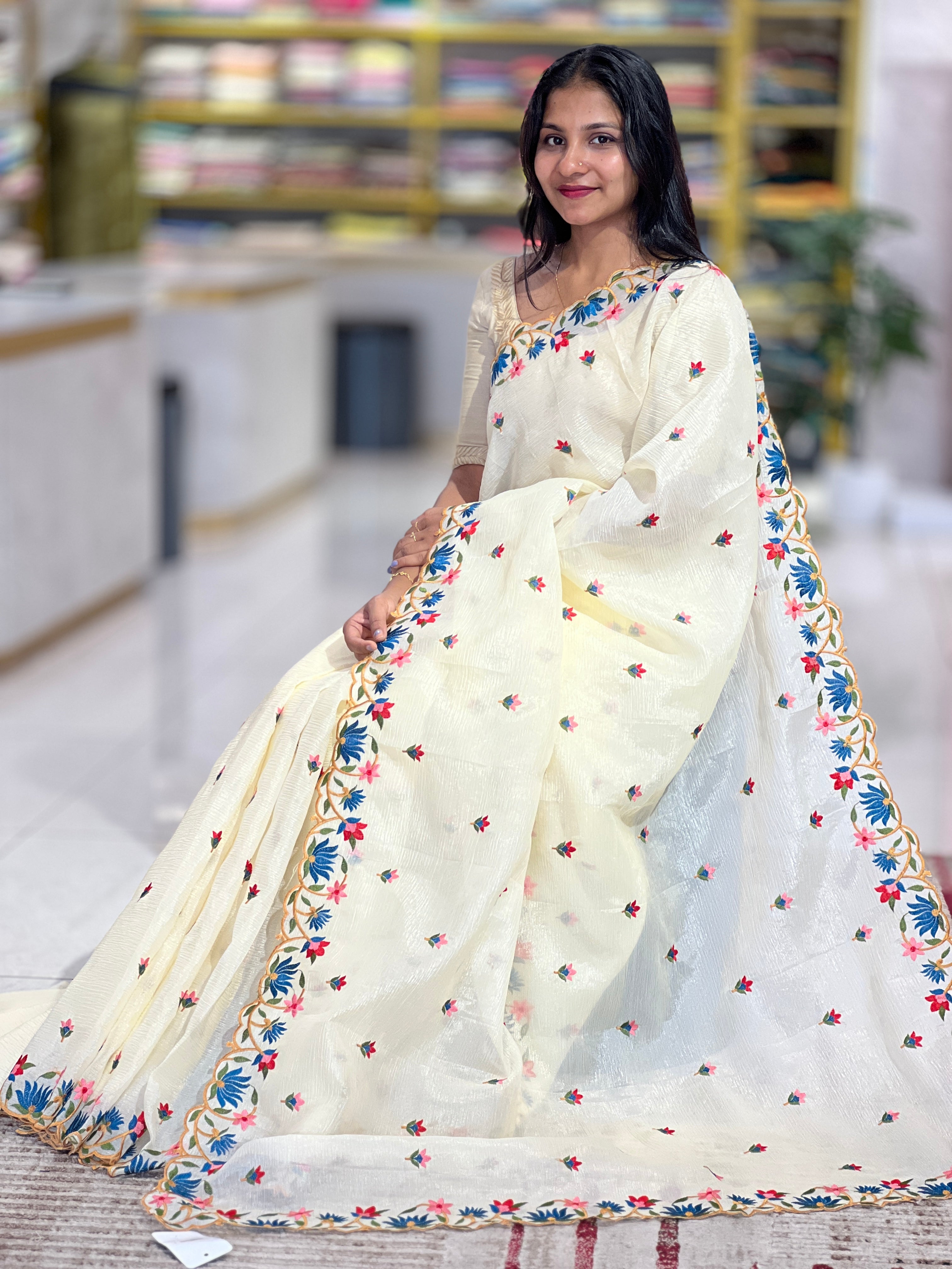• Crushed Tissue Organza Saree With Floral Embroidery Detailing | RP616