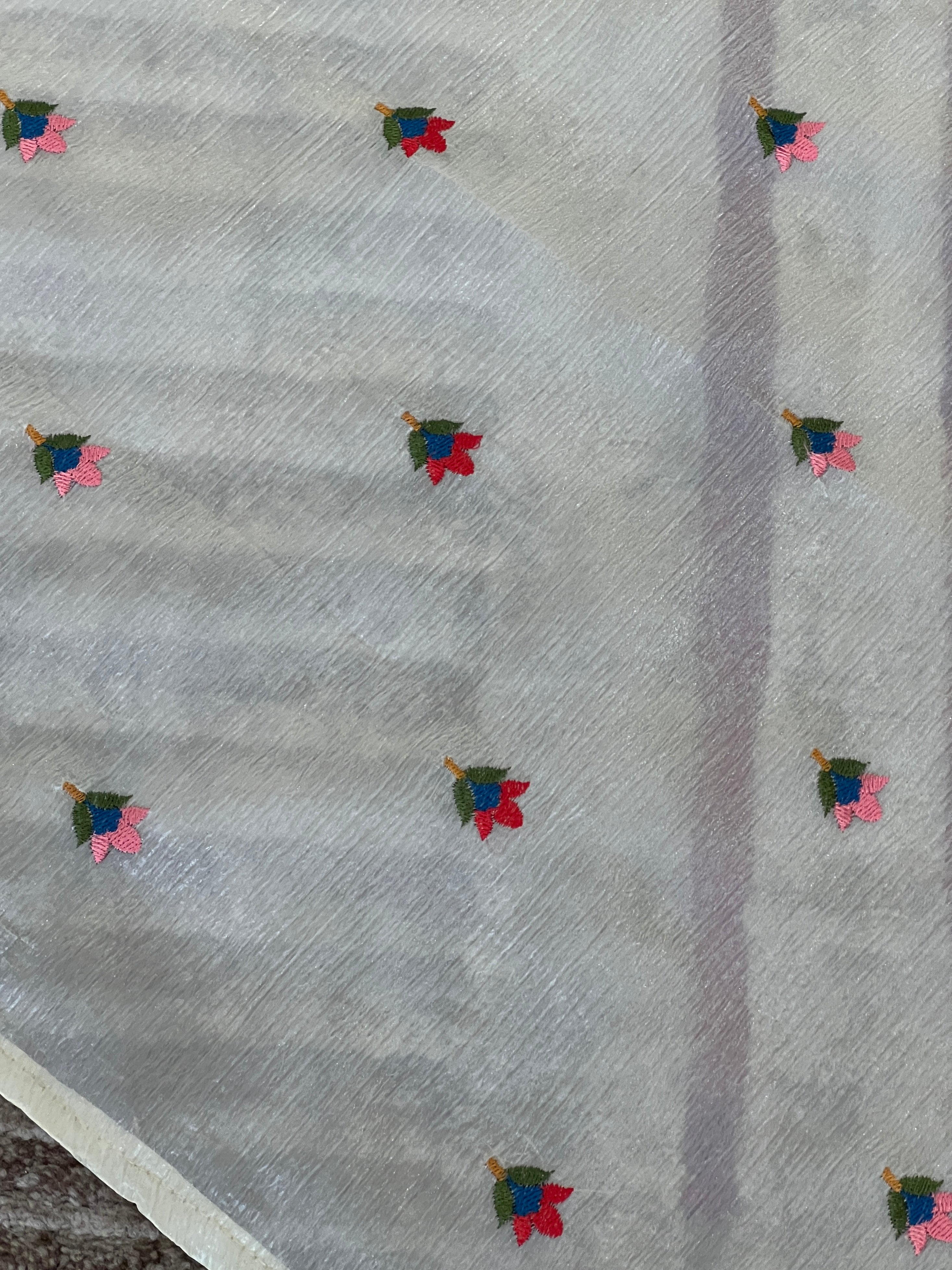 Crushed Tissue Organza Saree With Floral Embroidery Detailing | RP616