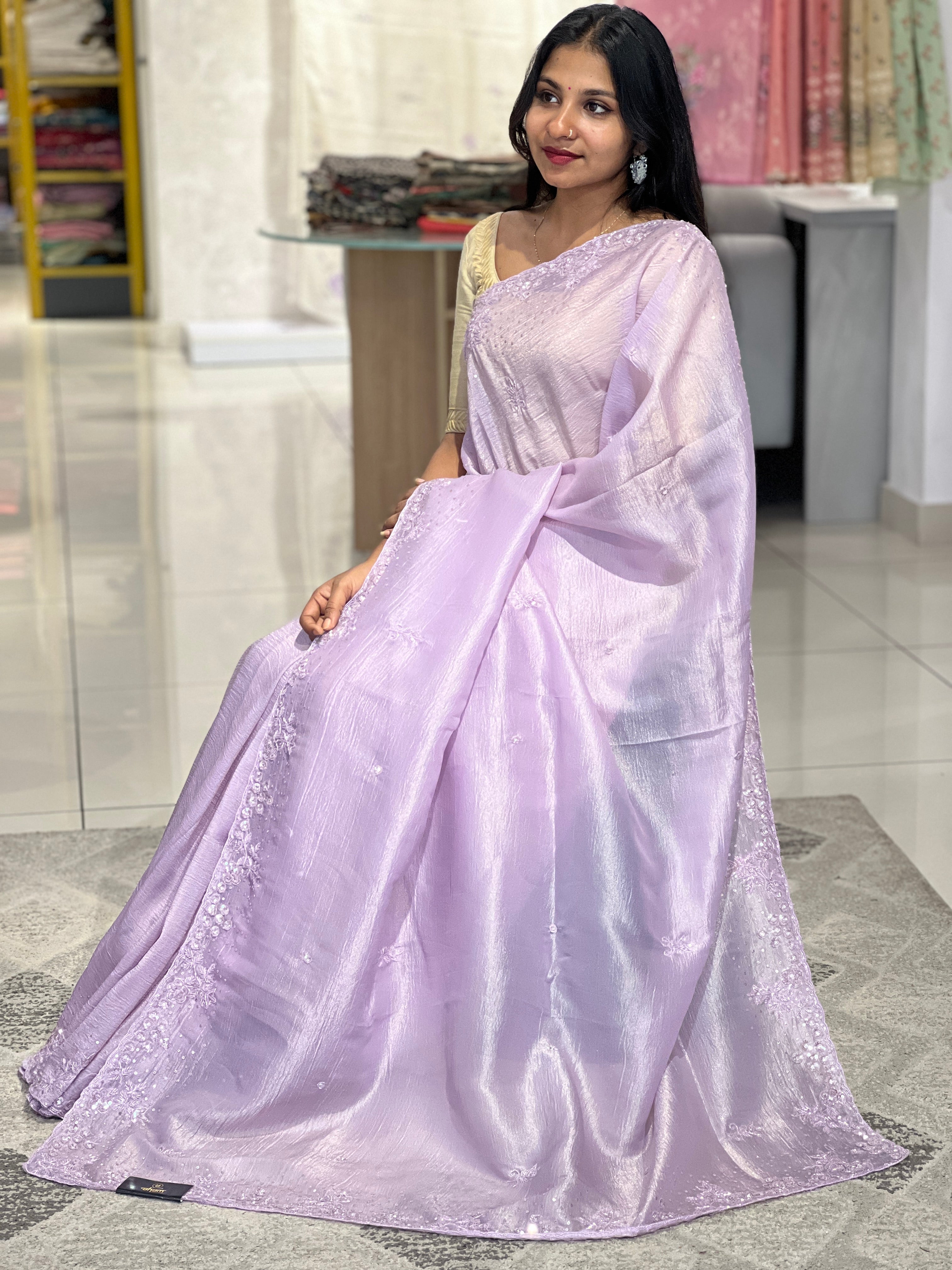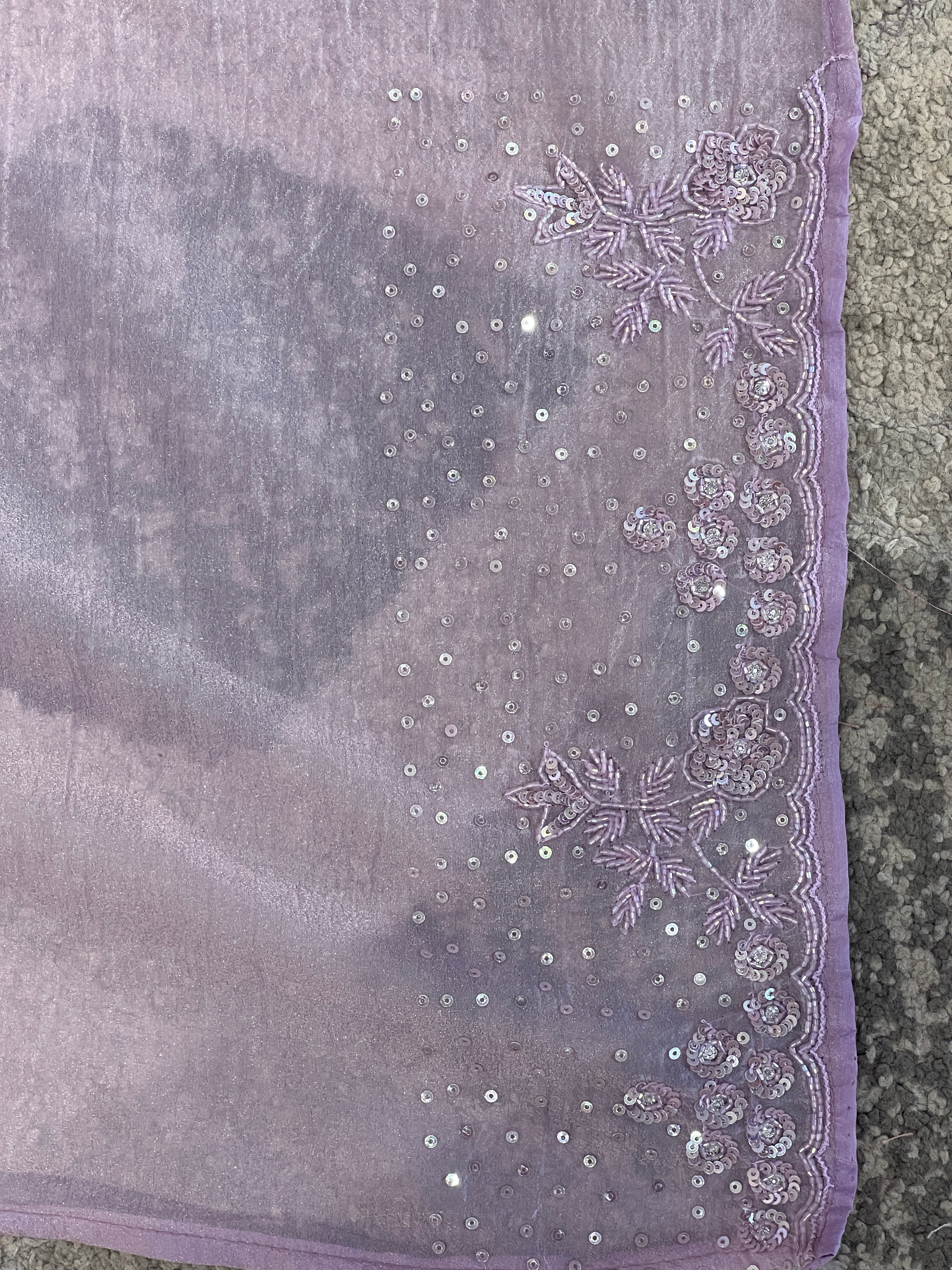 - Style: Cut Beads, Sequence & Stone Detailed Floral Patterned Borders, Scattered Embroidery Detailing, Scallop Edges