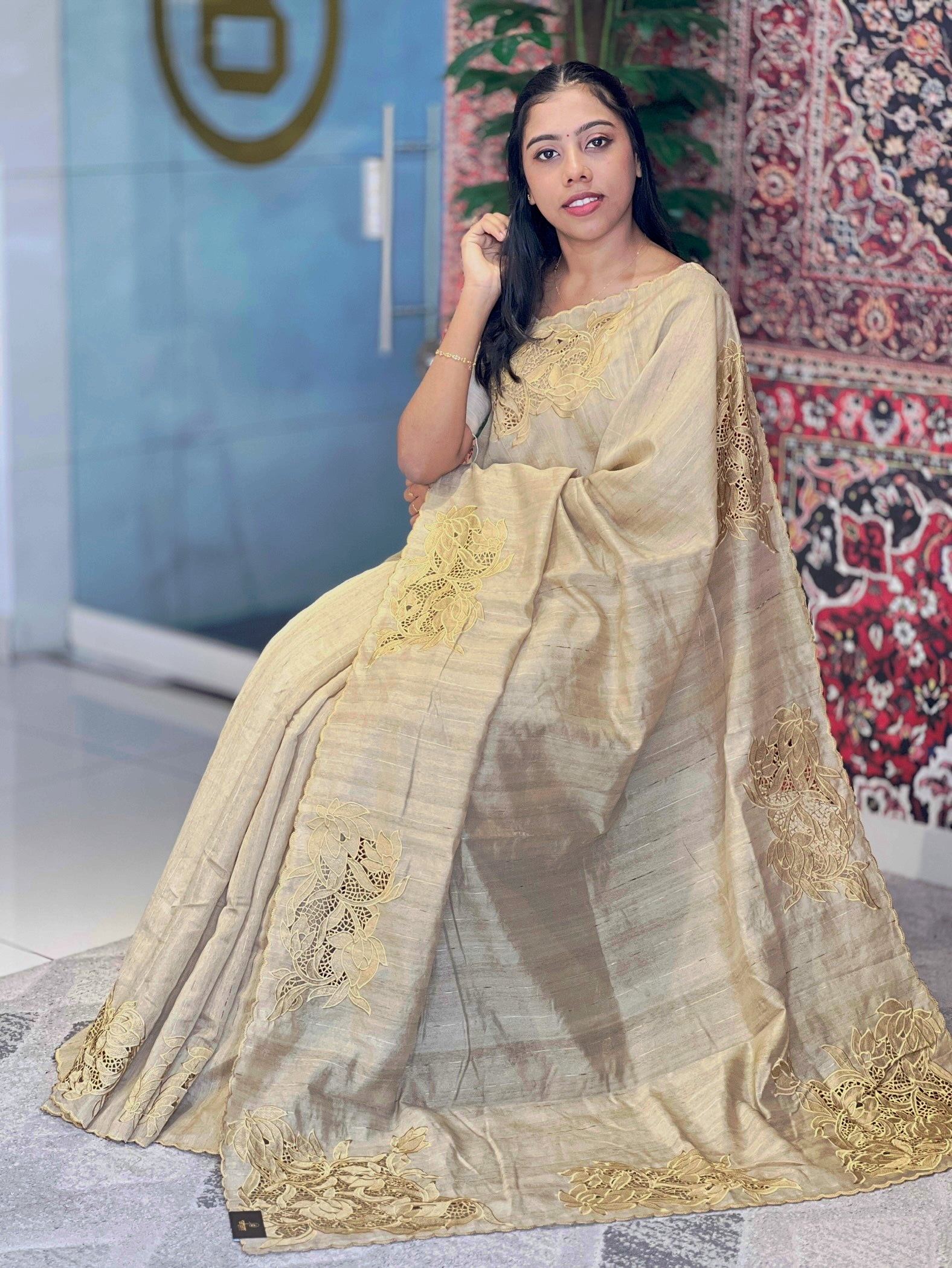 Cut Work With Floral Embroidered Semi Tussar Saree | SUN364
