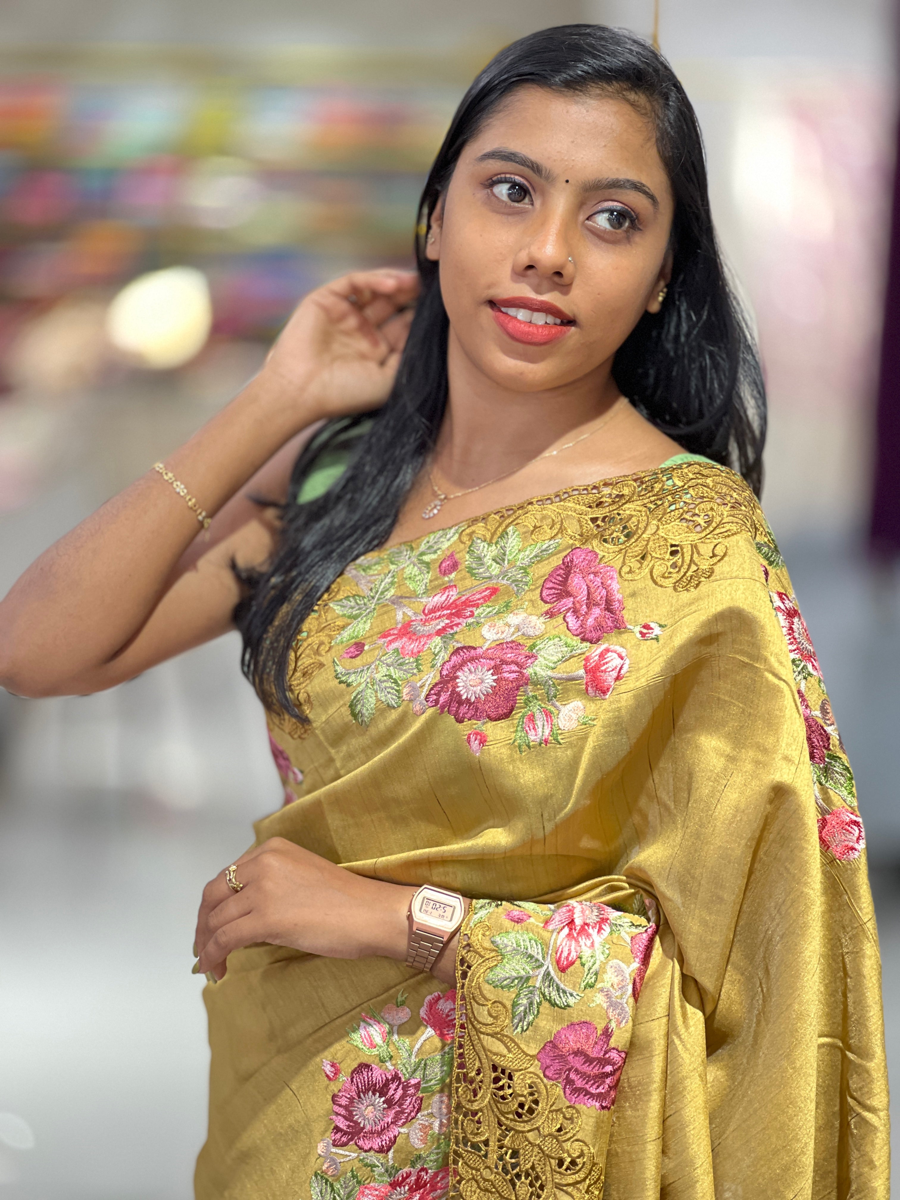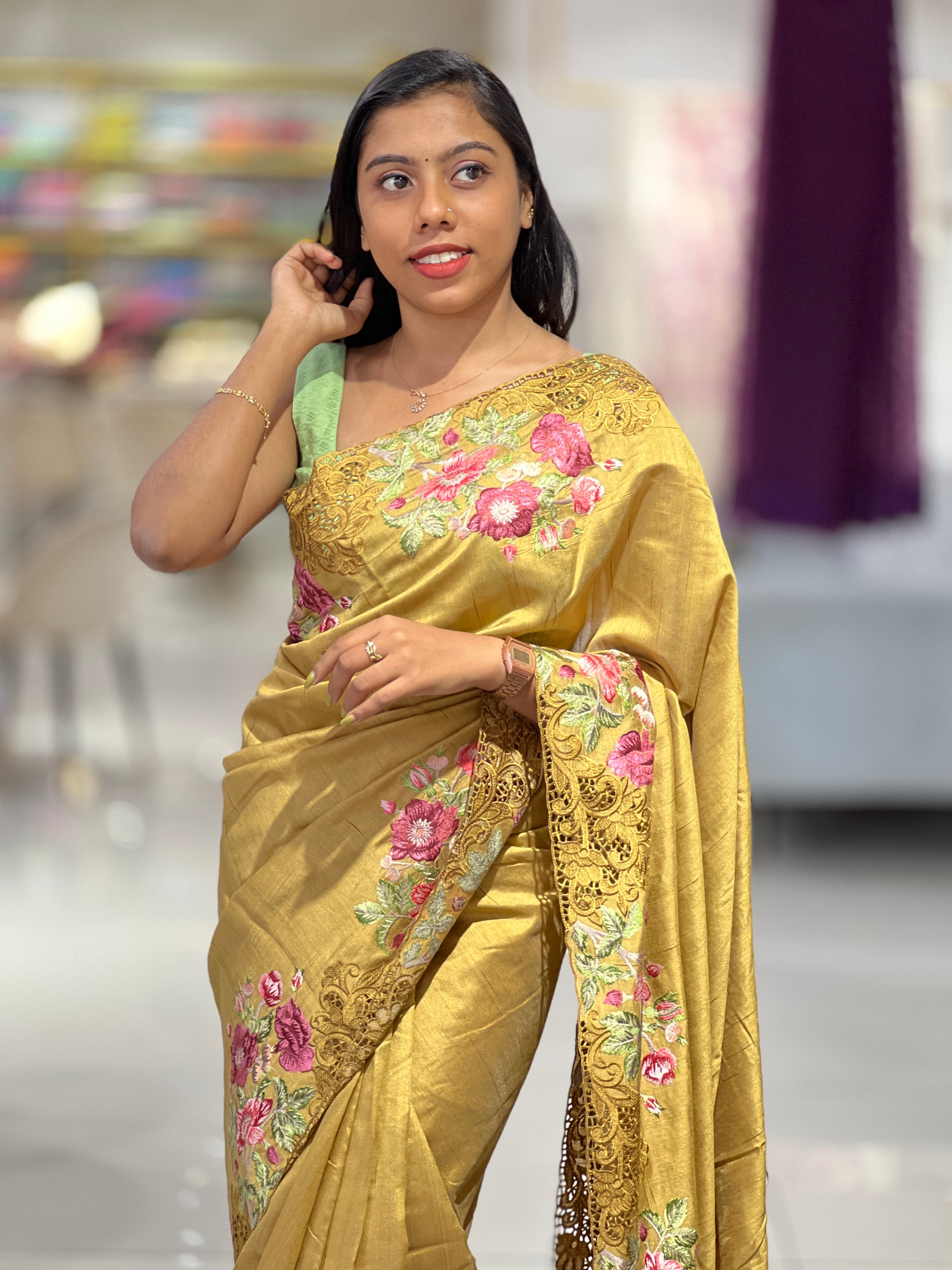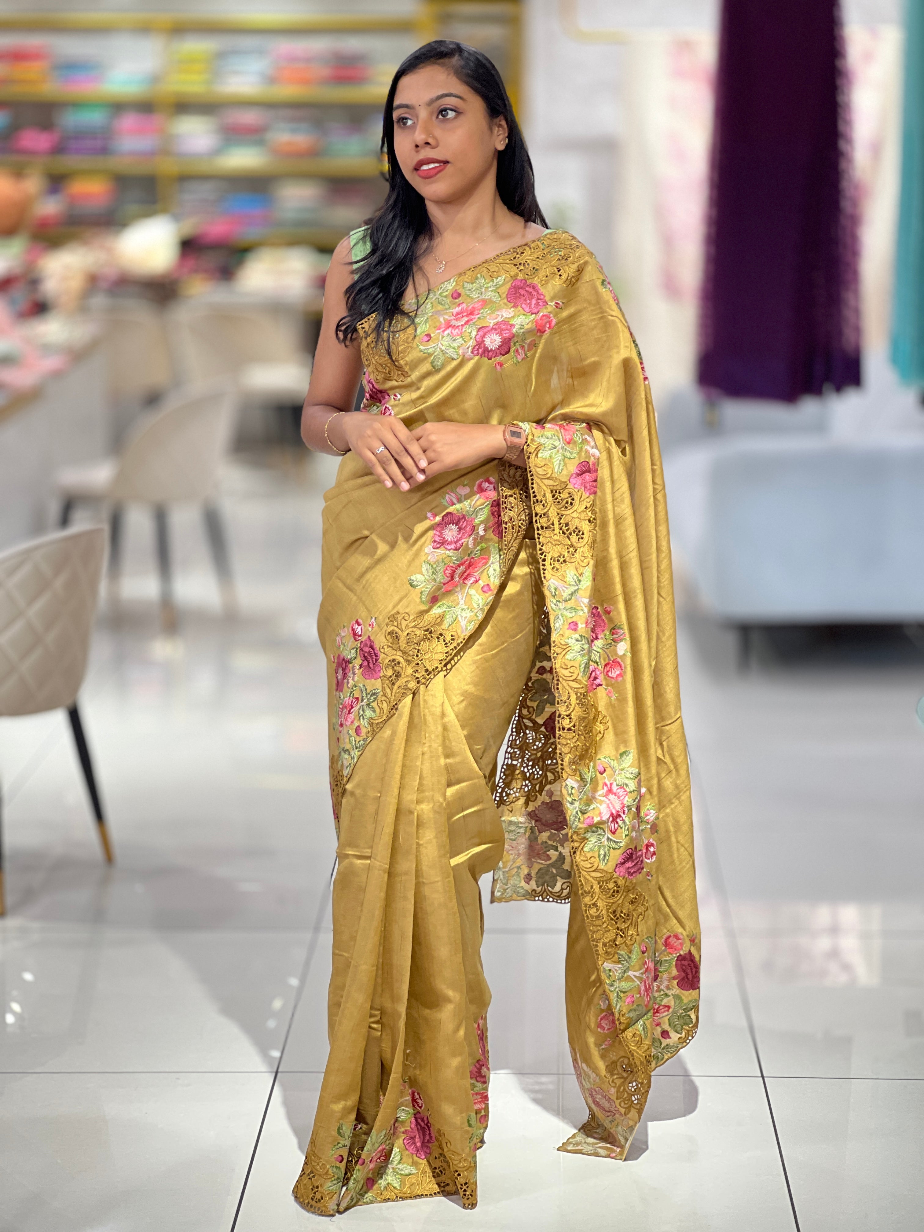 - Style: Multi-Color Floral Machine Embroidery, Cut Work With Floral Embroidery Detailing