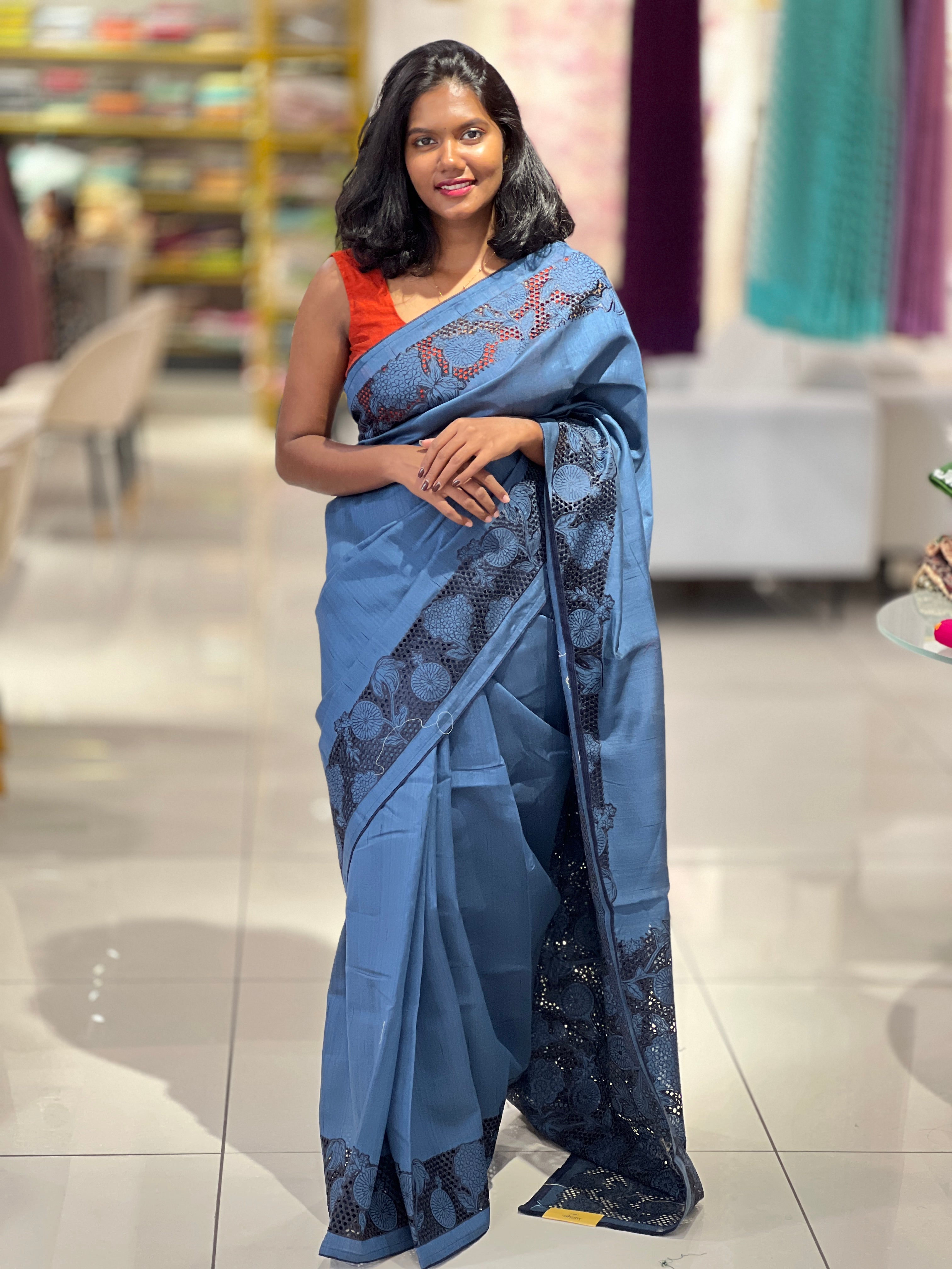 Cutwork Detailed Semi Tussar Saree | SUN411 Cutwork Detailed Semi Tussar Saree | SUN411