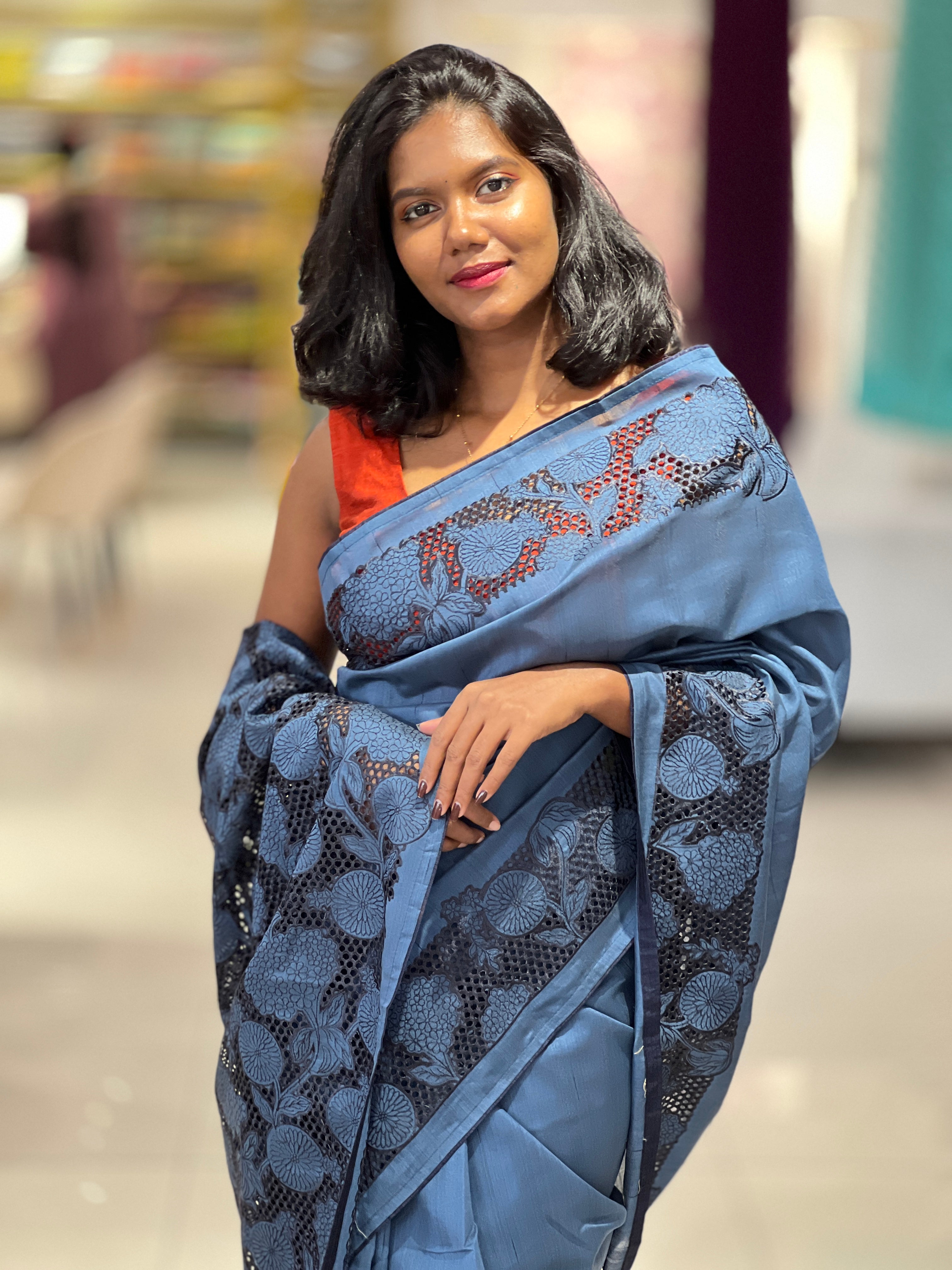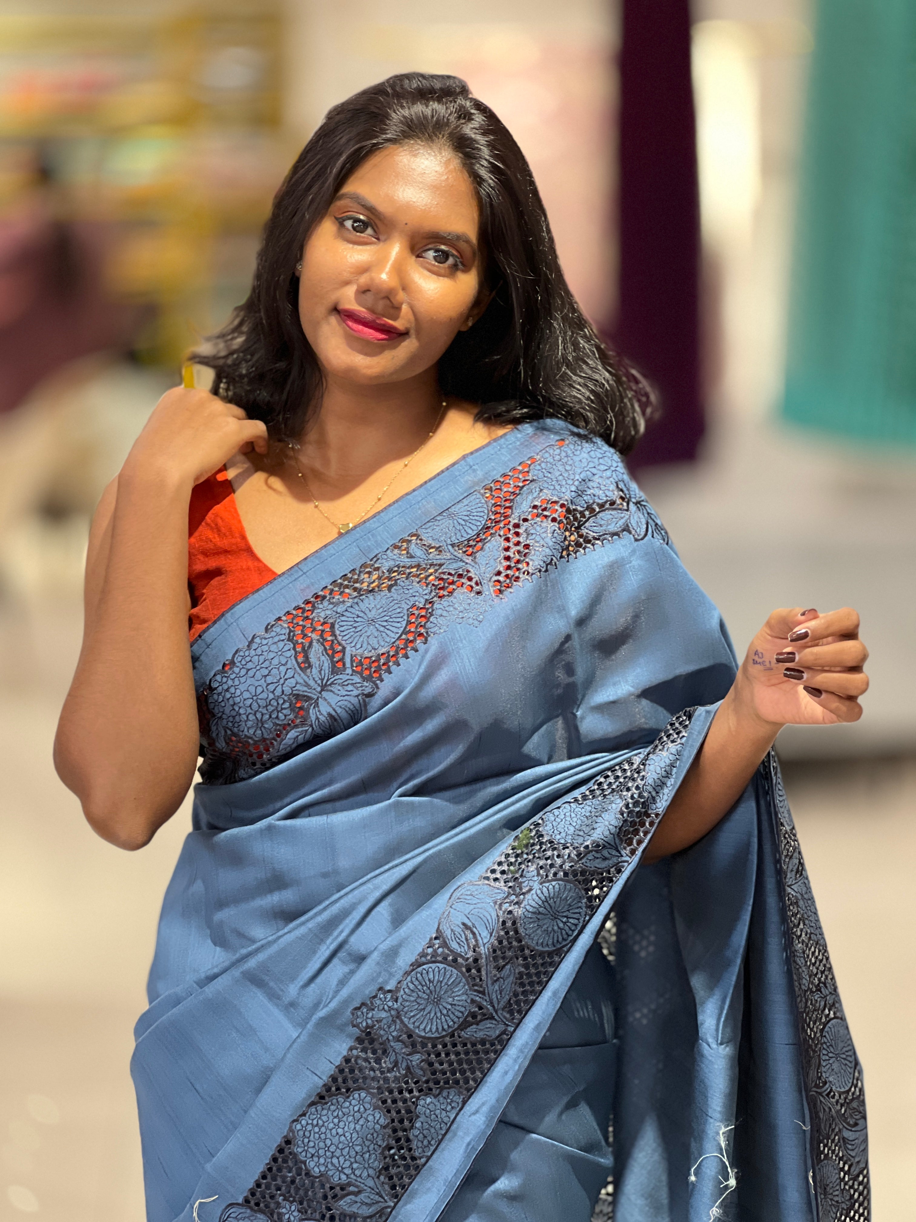 • Cutwork Detailed Semi Tussar Saree | SUN411