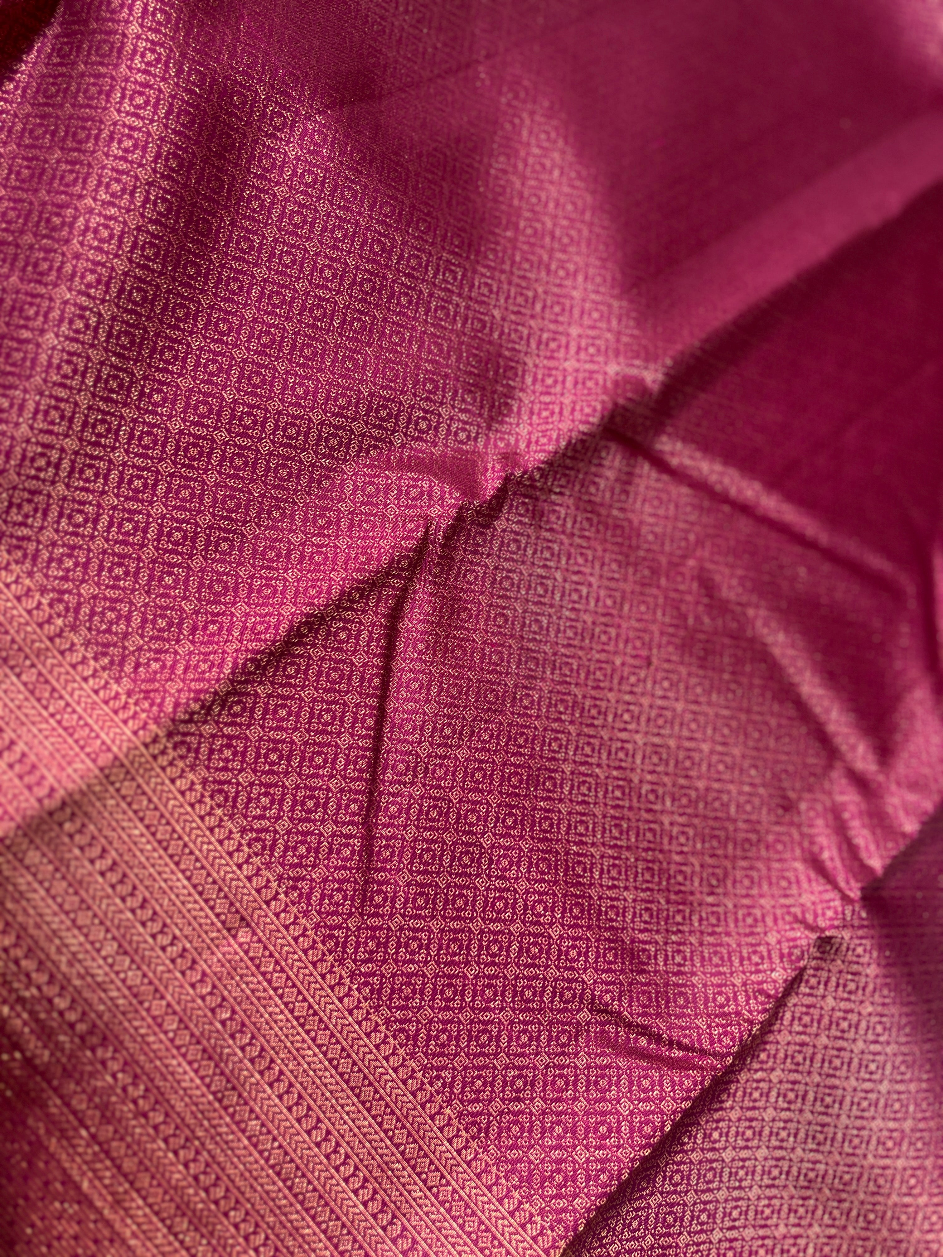 - Style: Antique Zari Woven, Diamond Pattern, Handloom, Traditional Borders, Diamond With Chakra Patterned Pallu