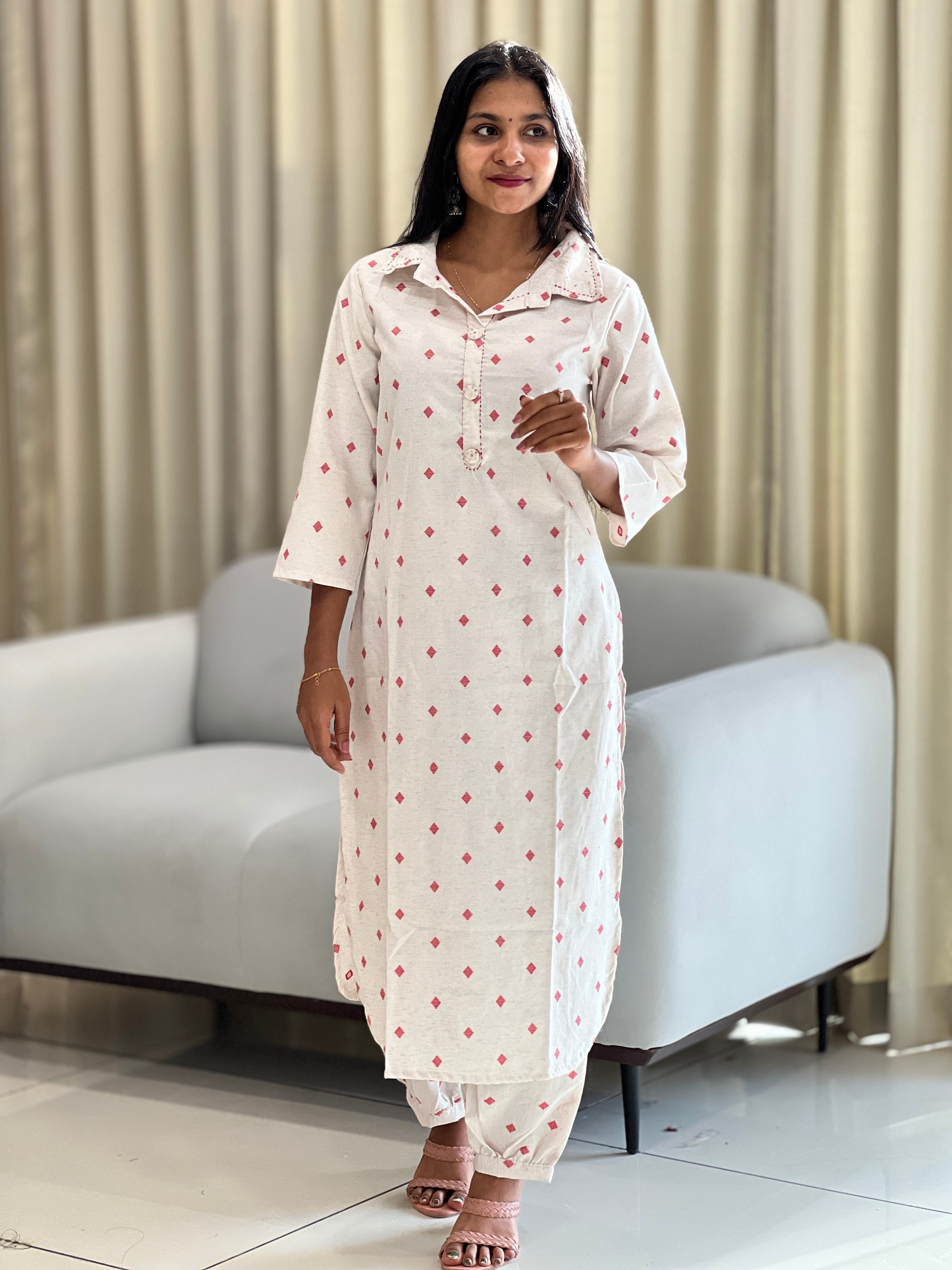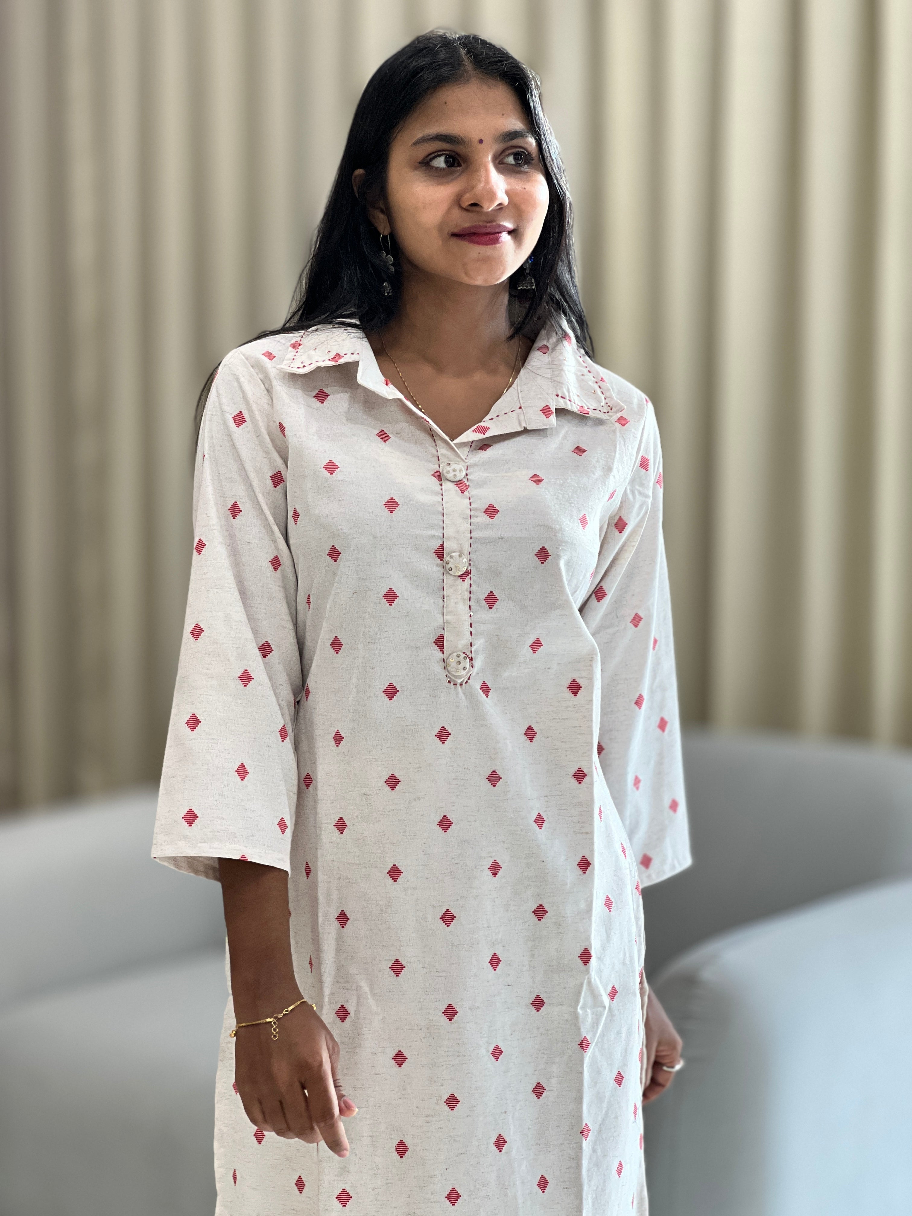 - Style: Diamond Weaving Pattern, Side Slitted, Collar Embroidery Highlight