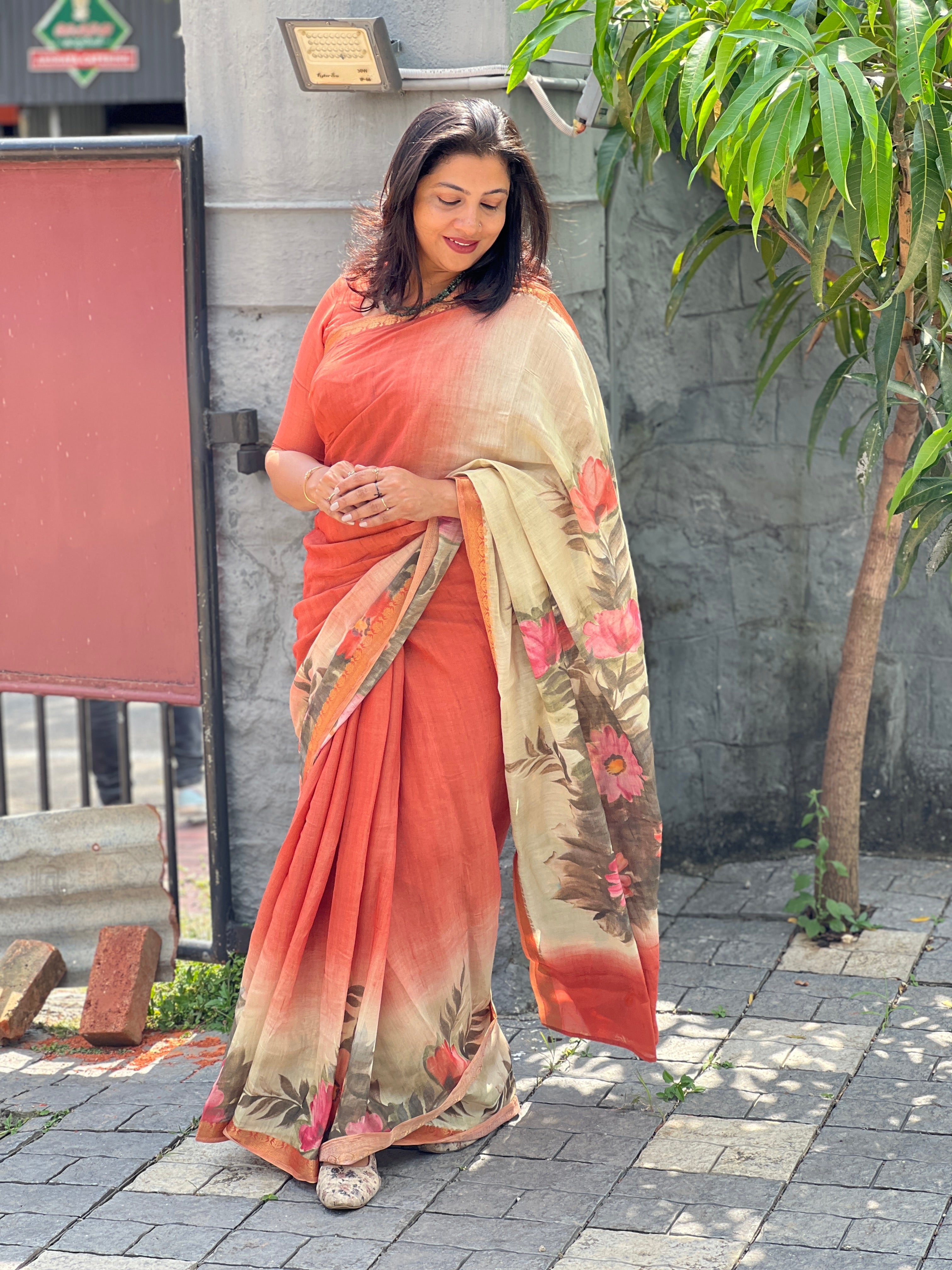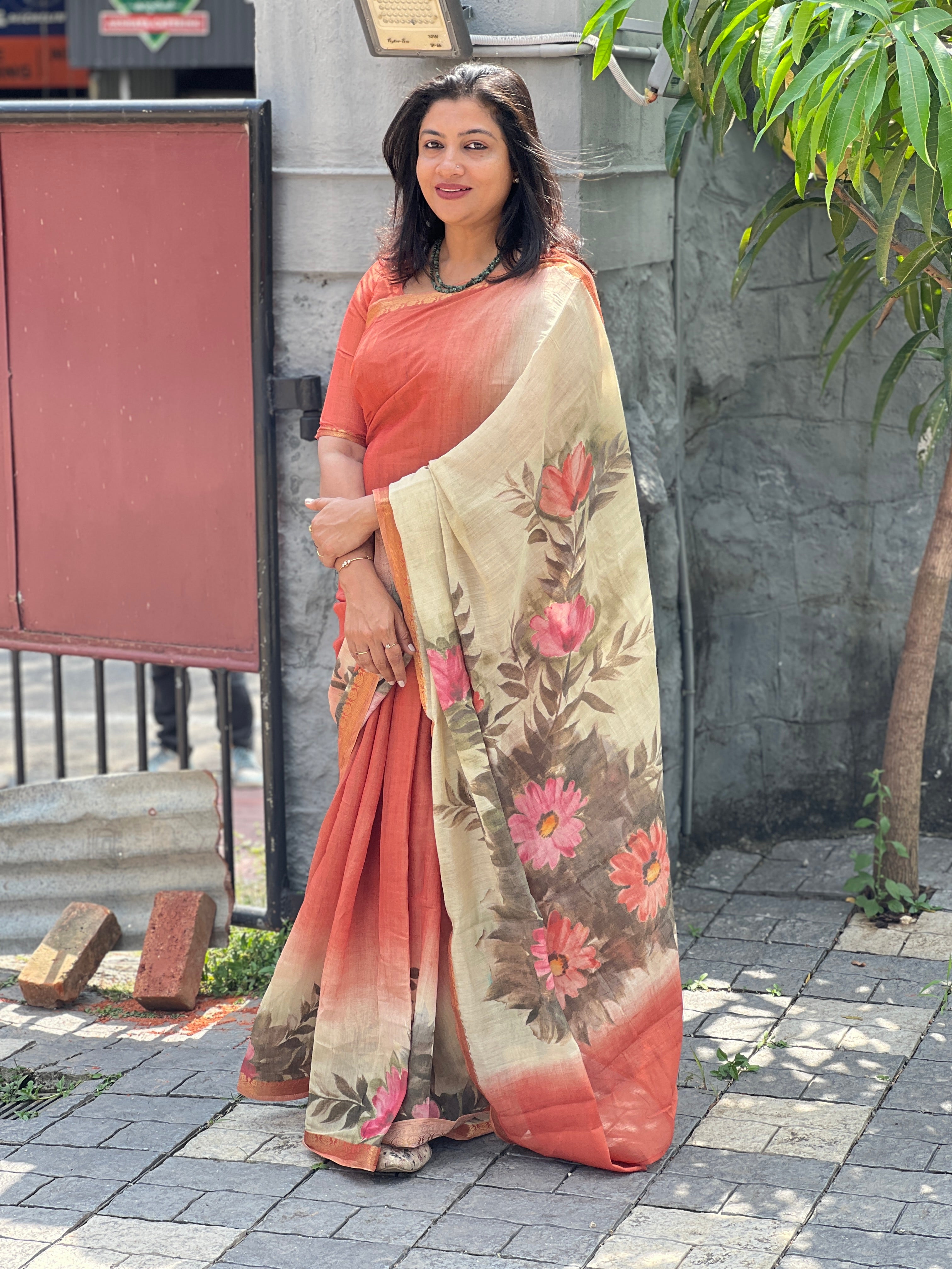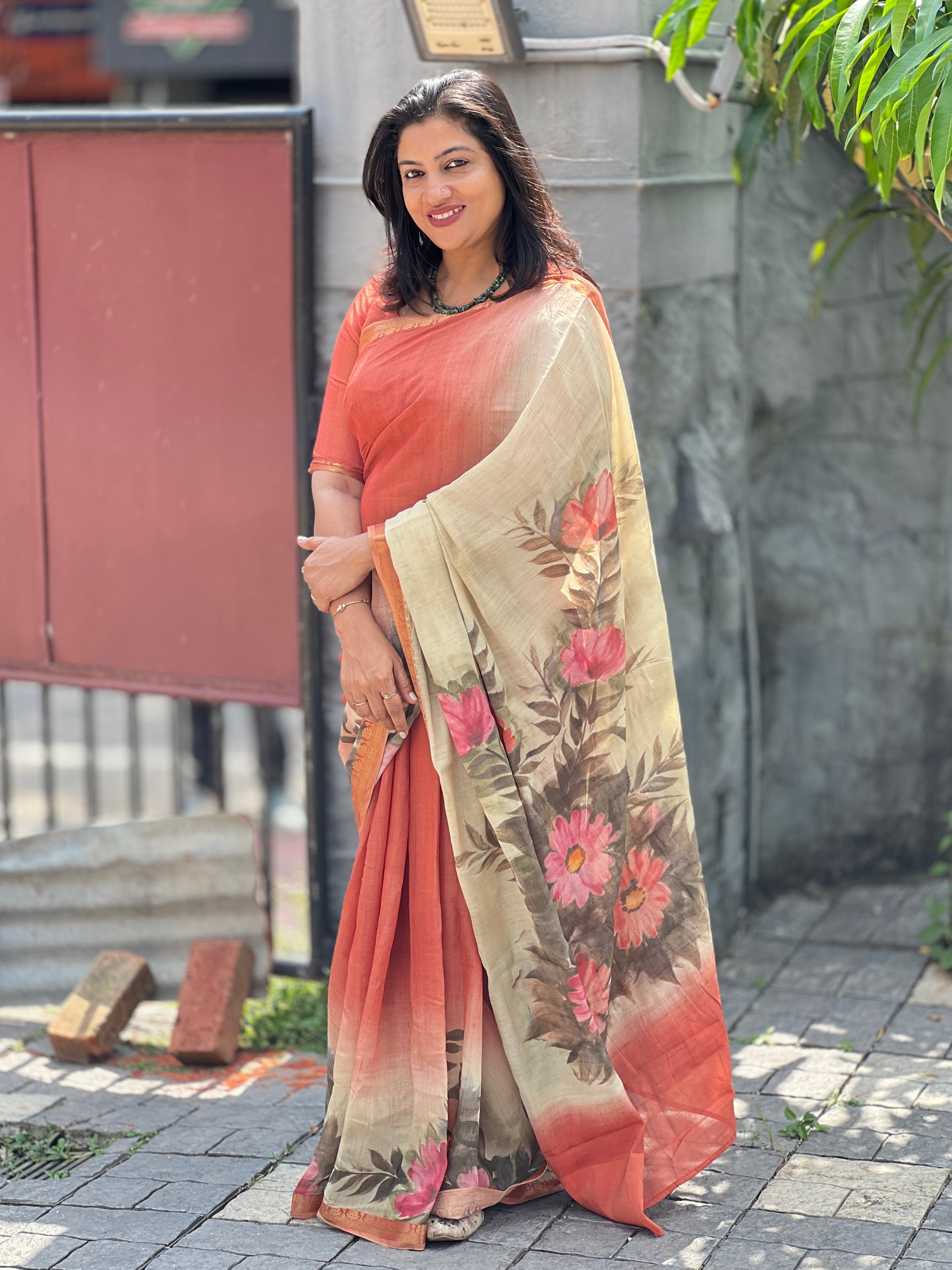 - Style: Digital Floral Printed, Hand Paint Inspired Pattern, Border Detailing