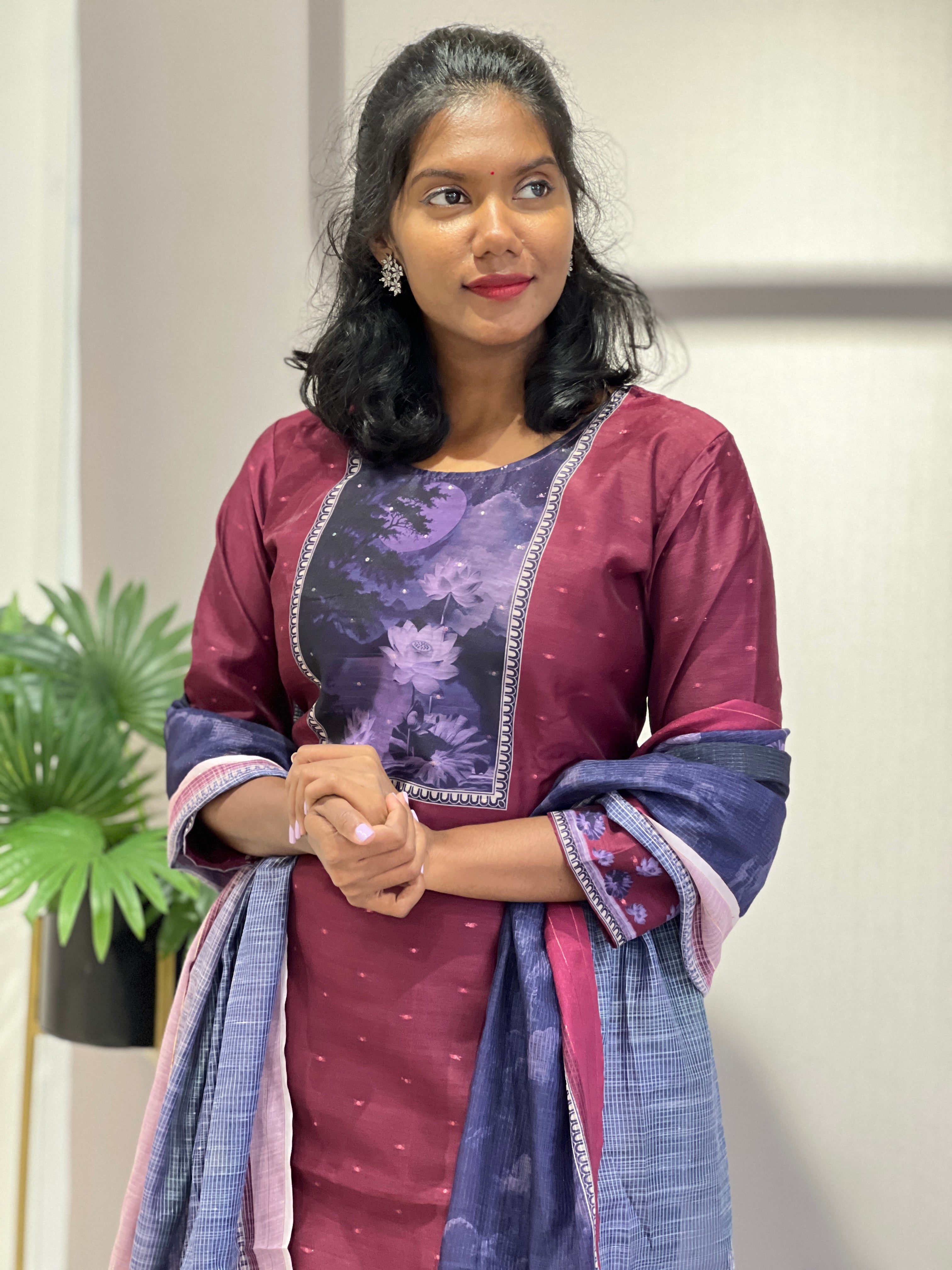 • Digital Print With Banarasi Detailed Chanderi Finish Kurta Set | VFD124