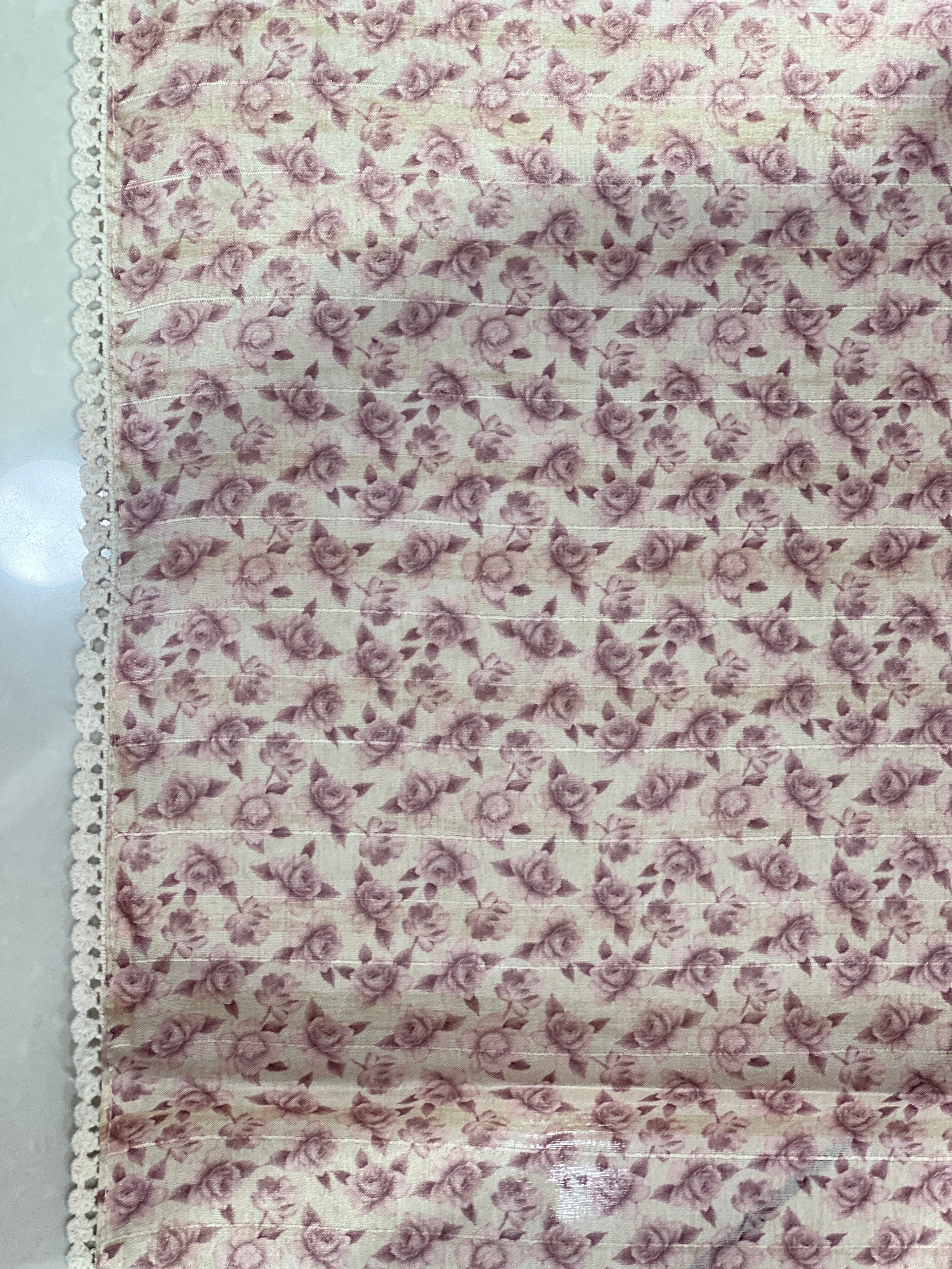 • Style: Digital Print, Floral & Polka Dot Pattern, Lucknowi Style Embroidery Detailed Borders, Lace Edges