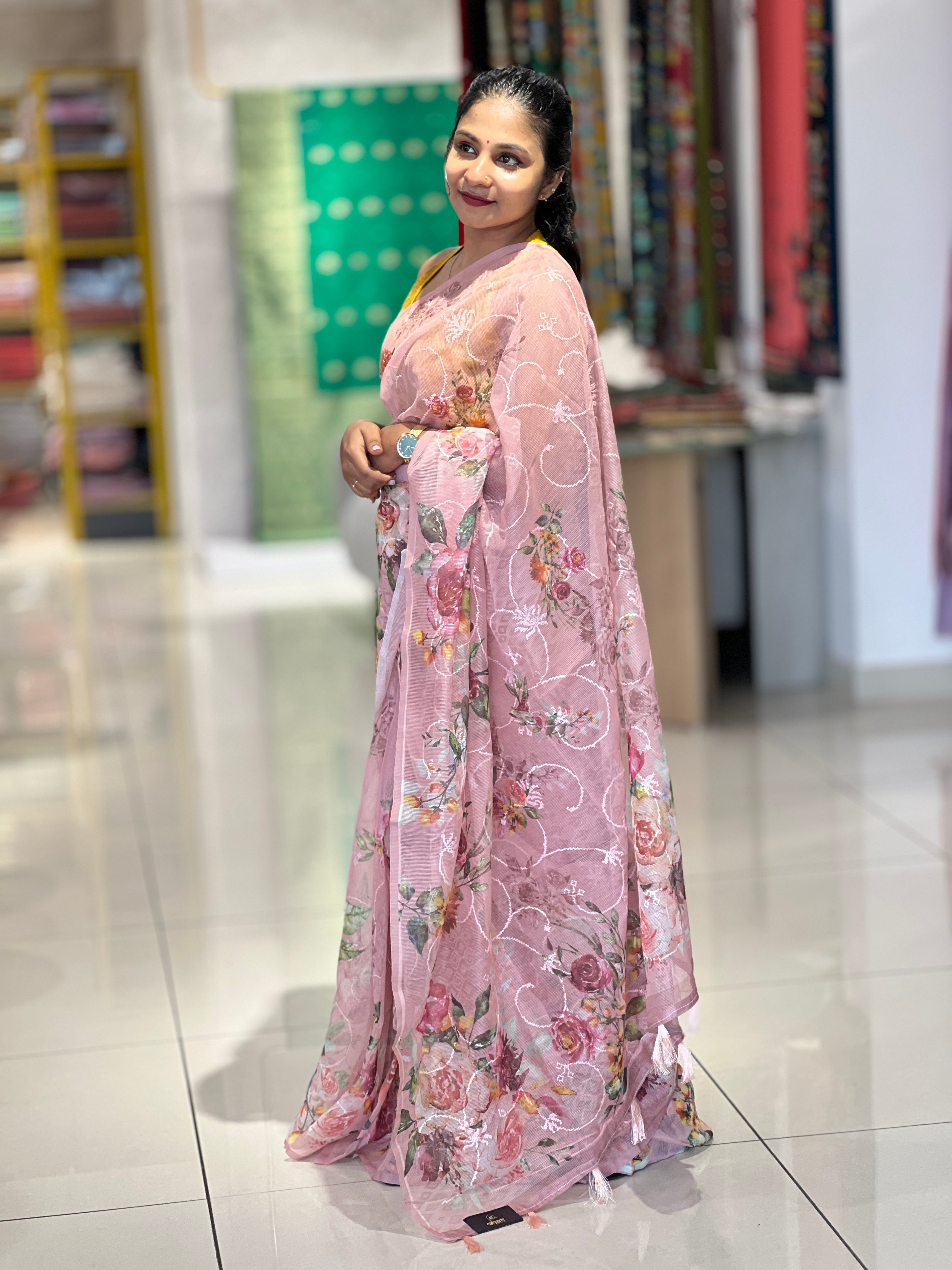 Digital Print With Embroidery Detailed Supernet Kota Saree | BLD1316