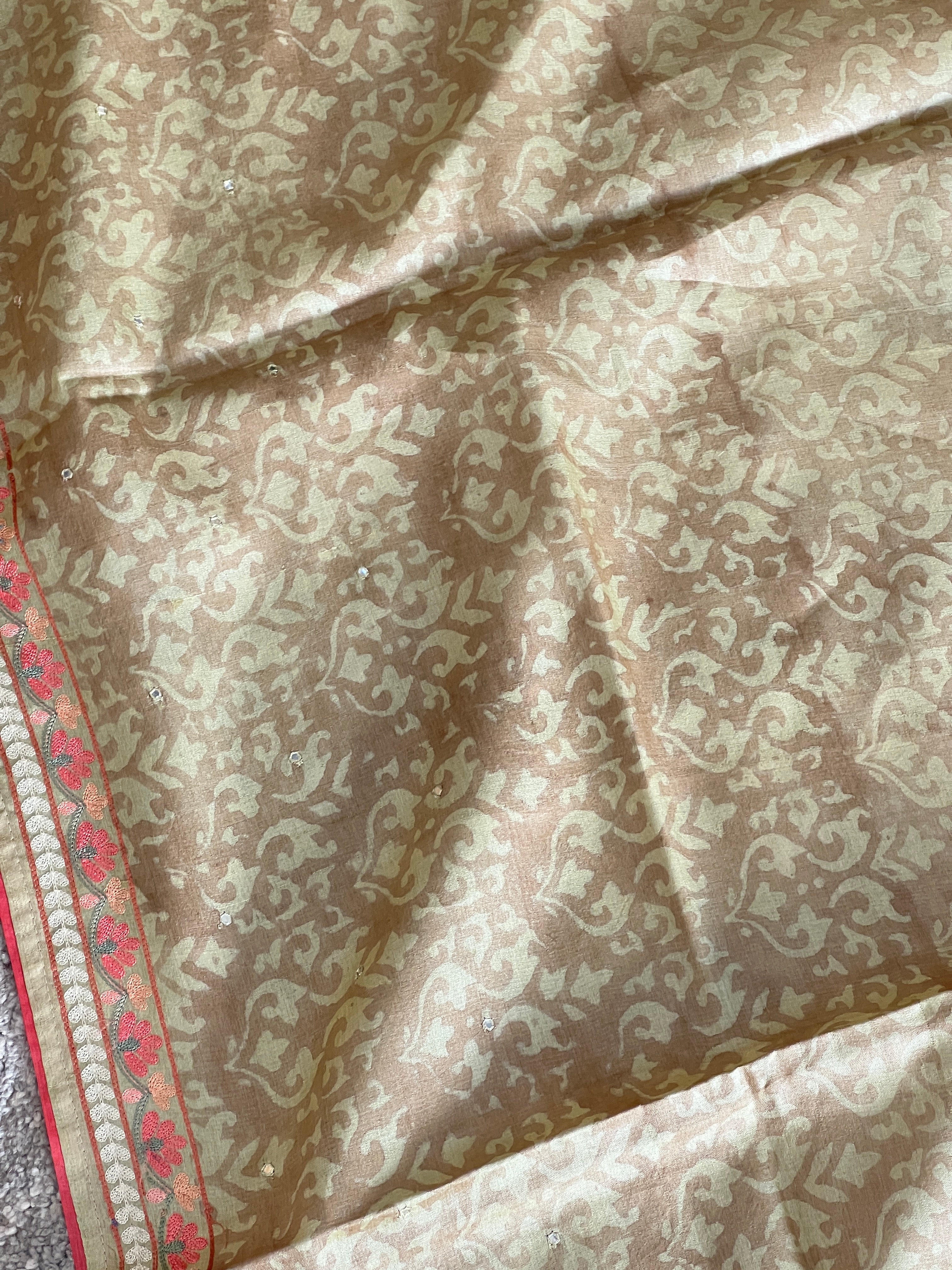 - Style: Digital Printed, Scattered Mirror Work Detailing, Kashida Worked Aari Embroidery Look, Machine Embroidery Placements