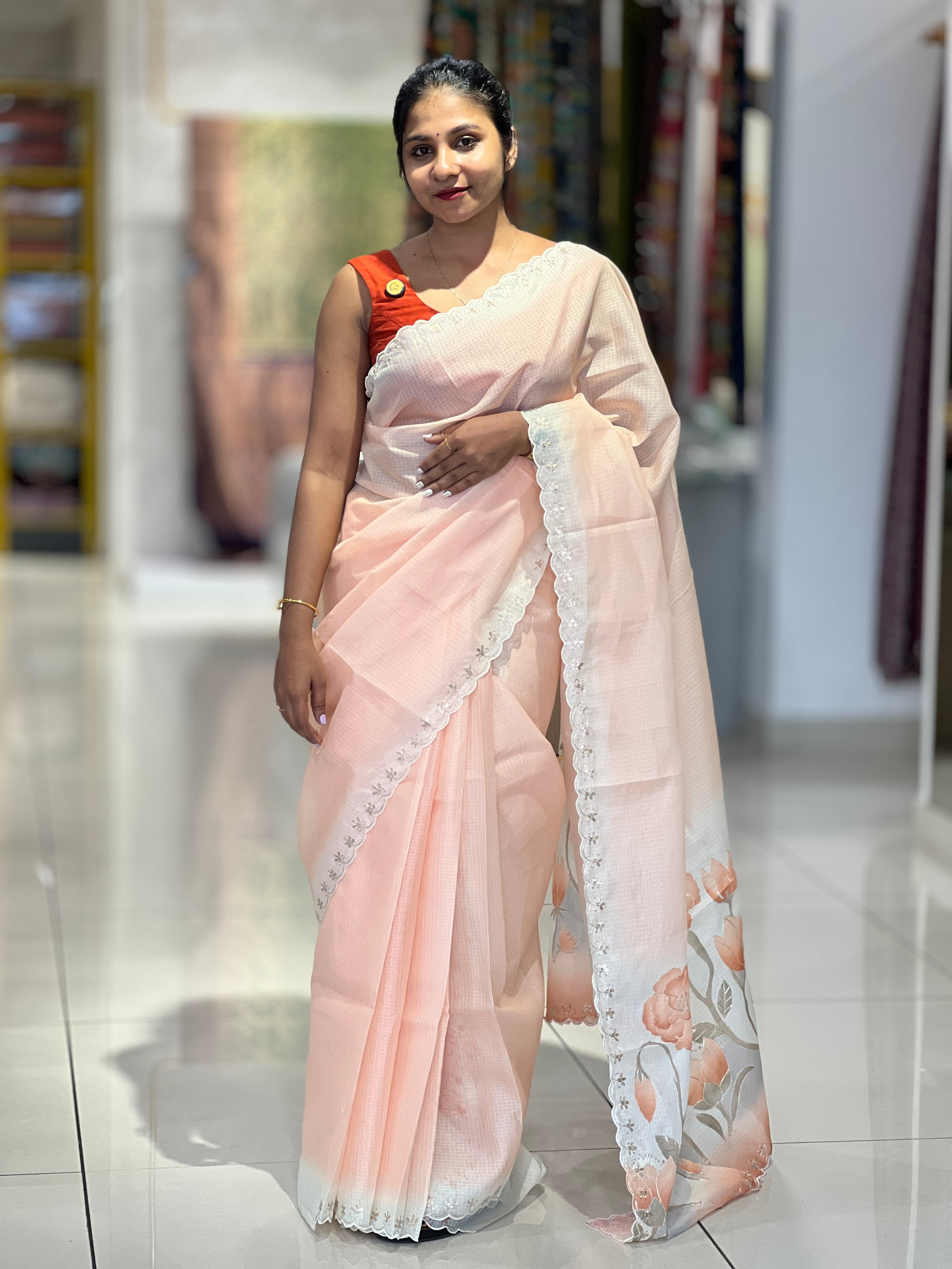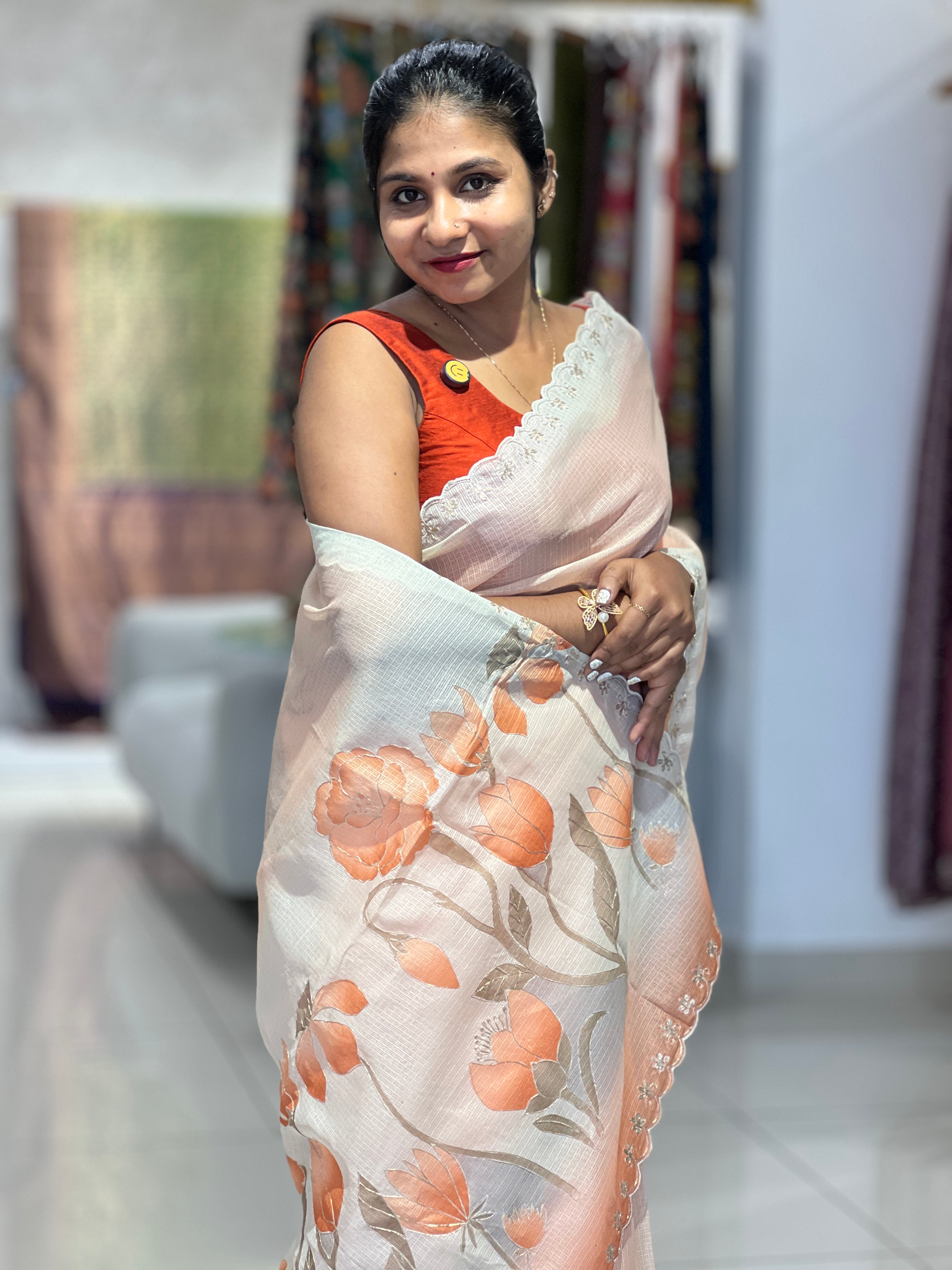 • Style: Floral Digital Printed Pallu With Pitta Work Highlight,  Scallop Edges With Pitta Work Highlight,Shaded effect